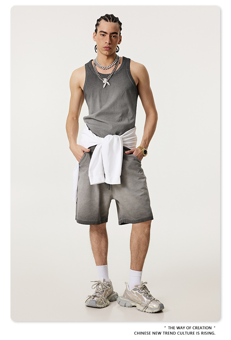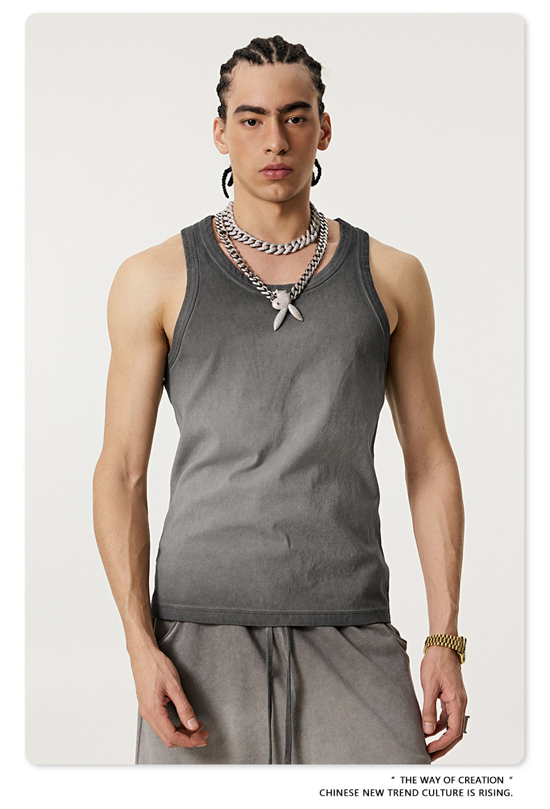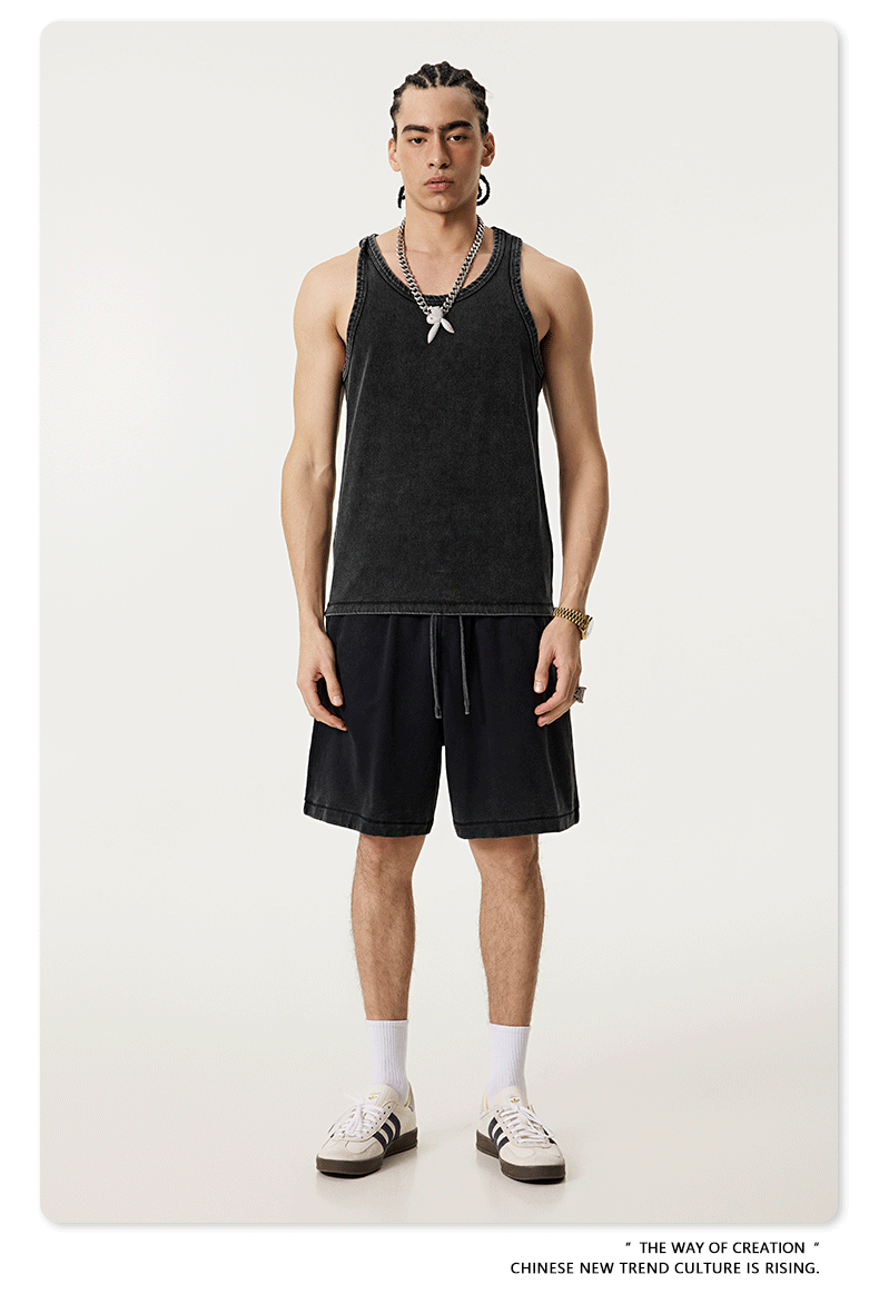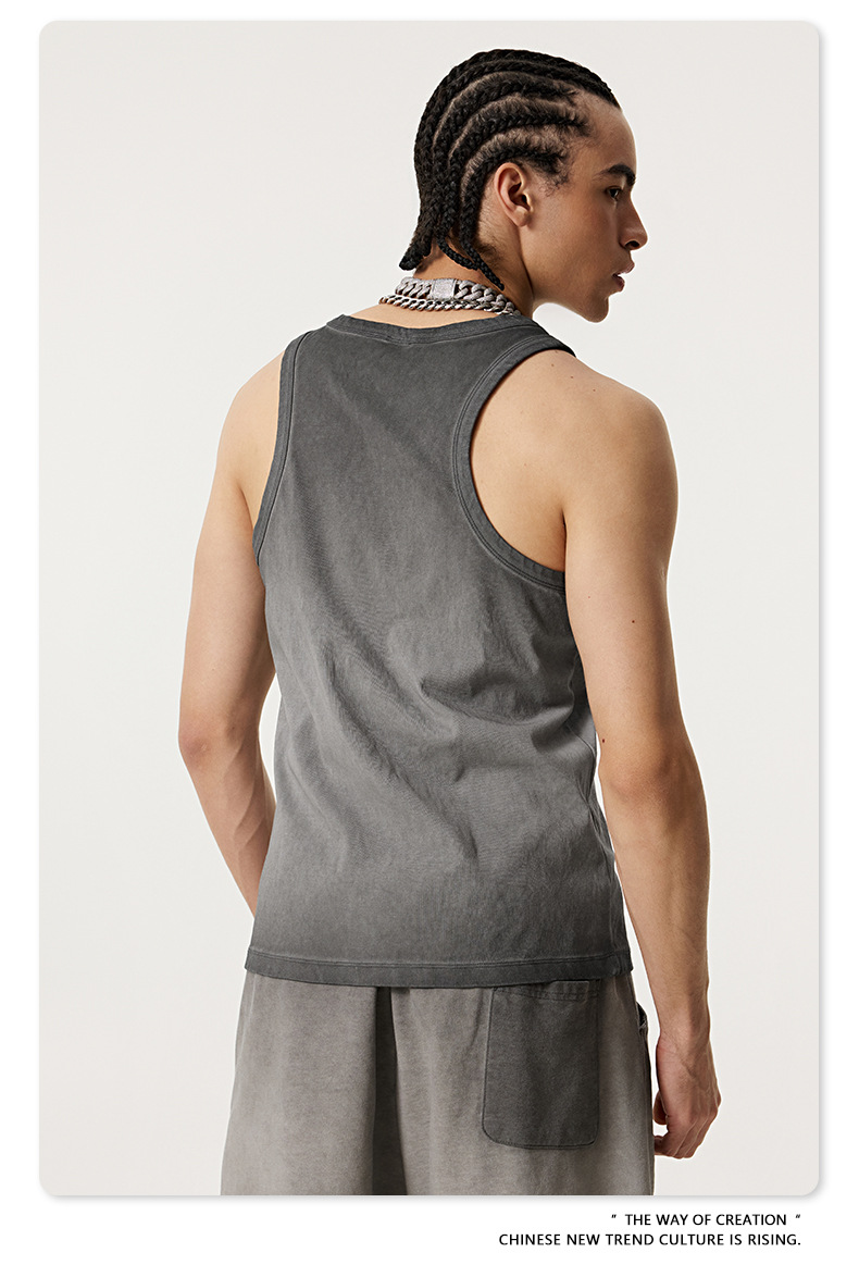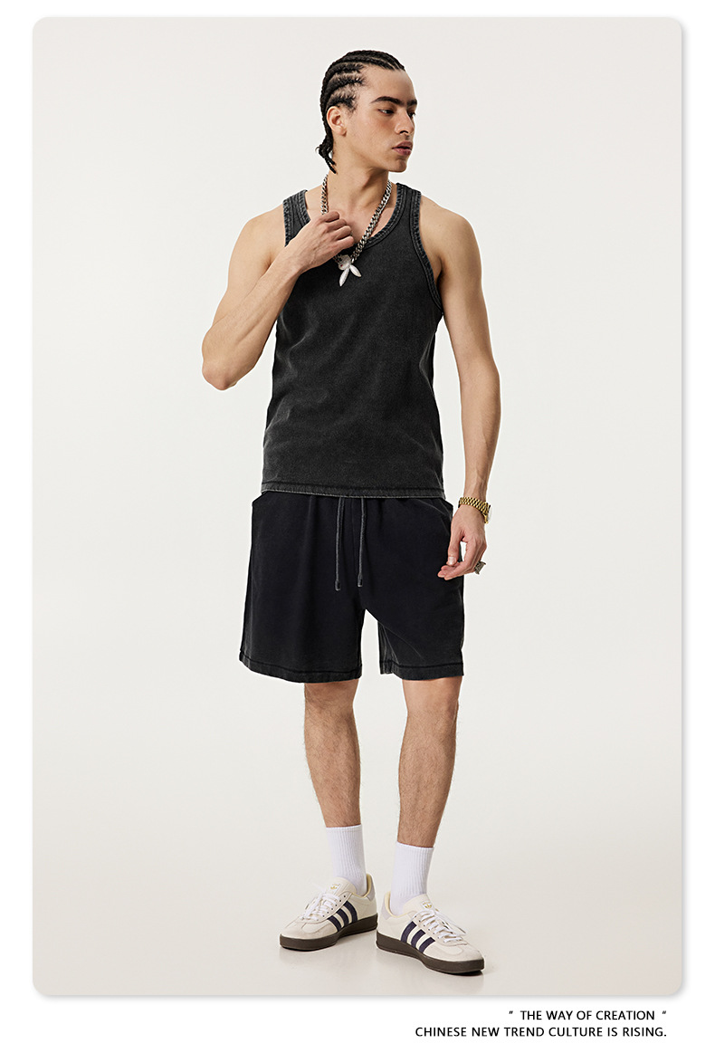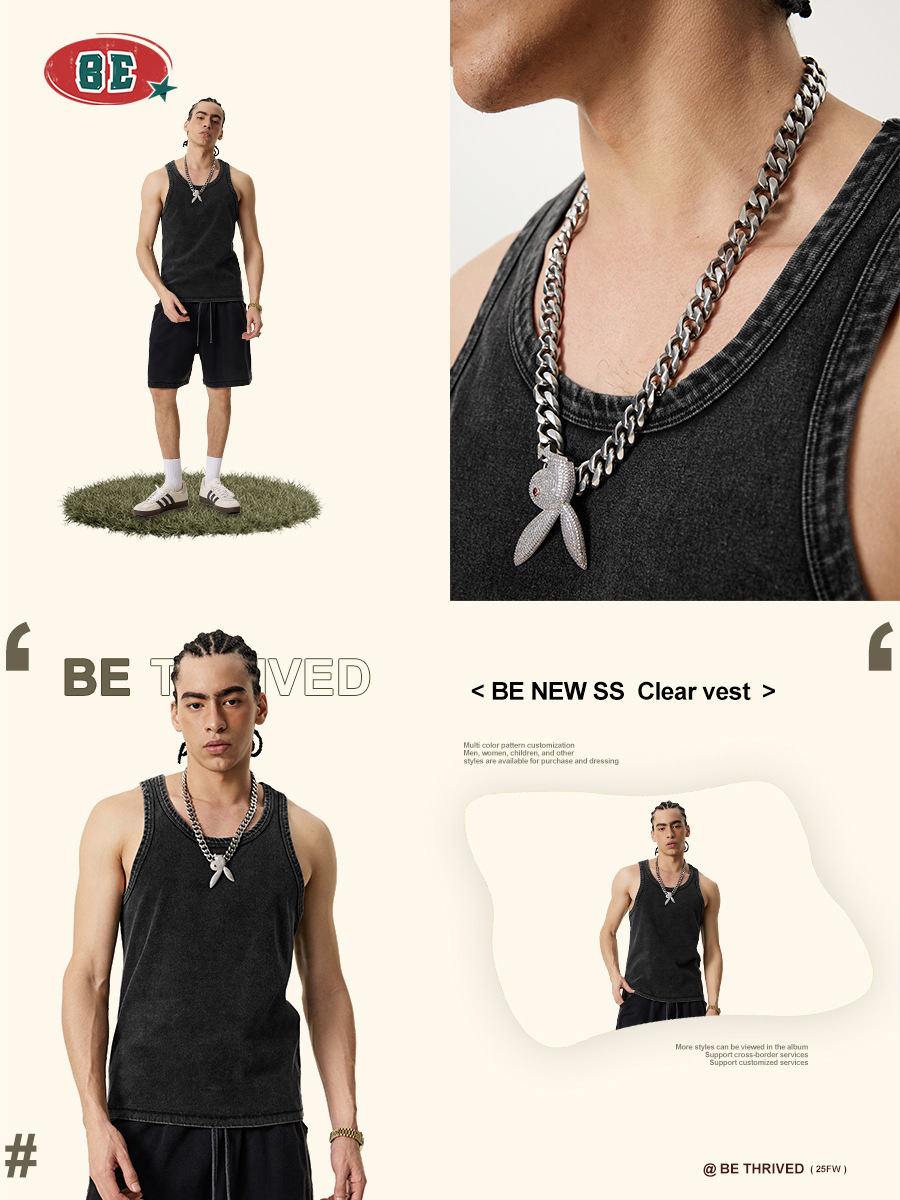 BE Men's | 2025 여름 레트로 헤비 프라이드 컬러 세탁 스포츠 민소매 탑 루즈 I 자형 조끼 남자 타이드