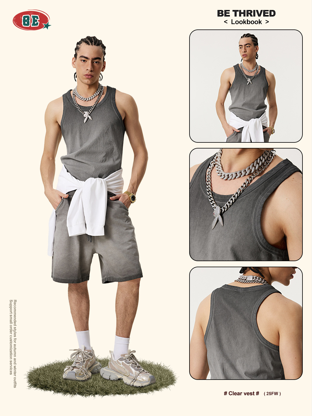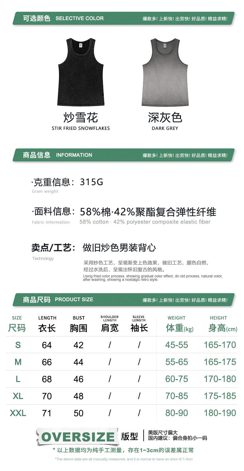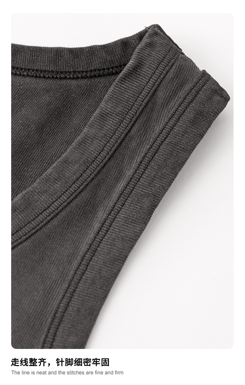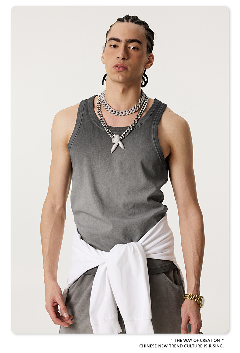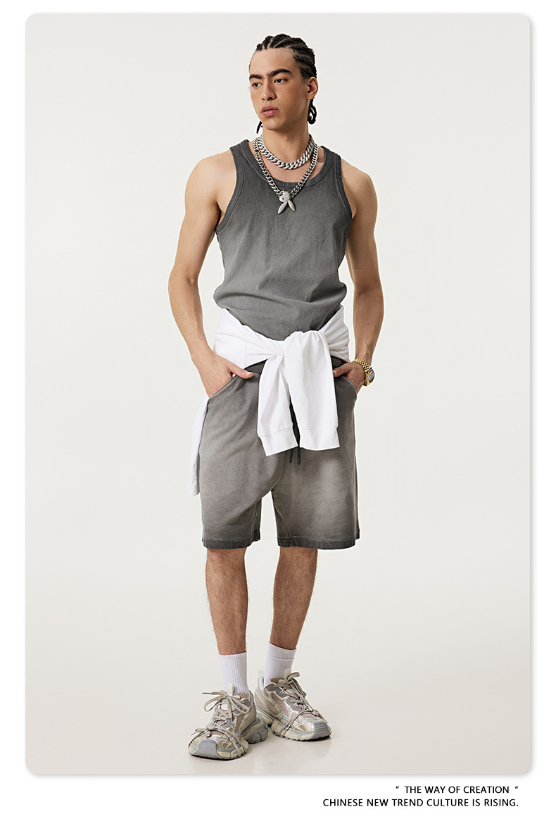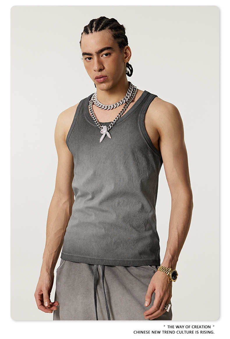 BE Men's | 2025 여름 레트로 헤비 프라이드 컬러 세탁 스포츠 민소매 탑 루즈 I 자형 조끼 남자 타이드