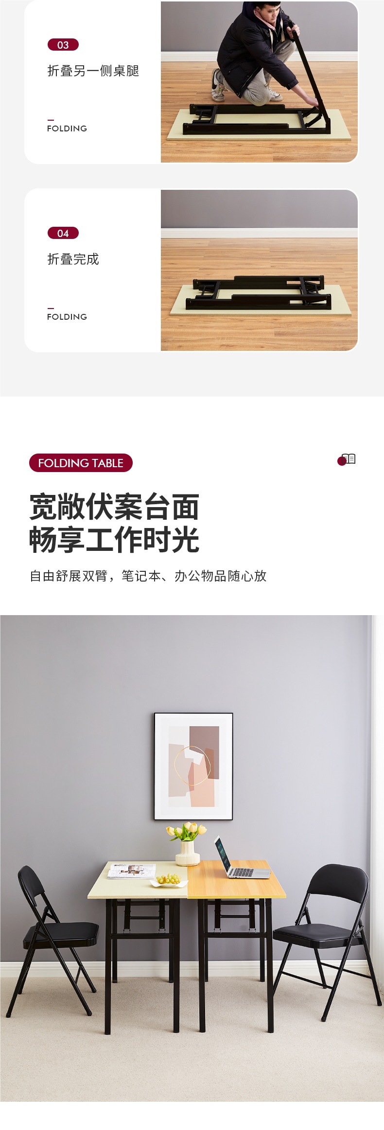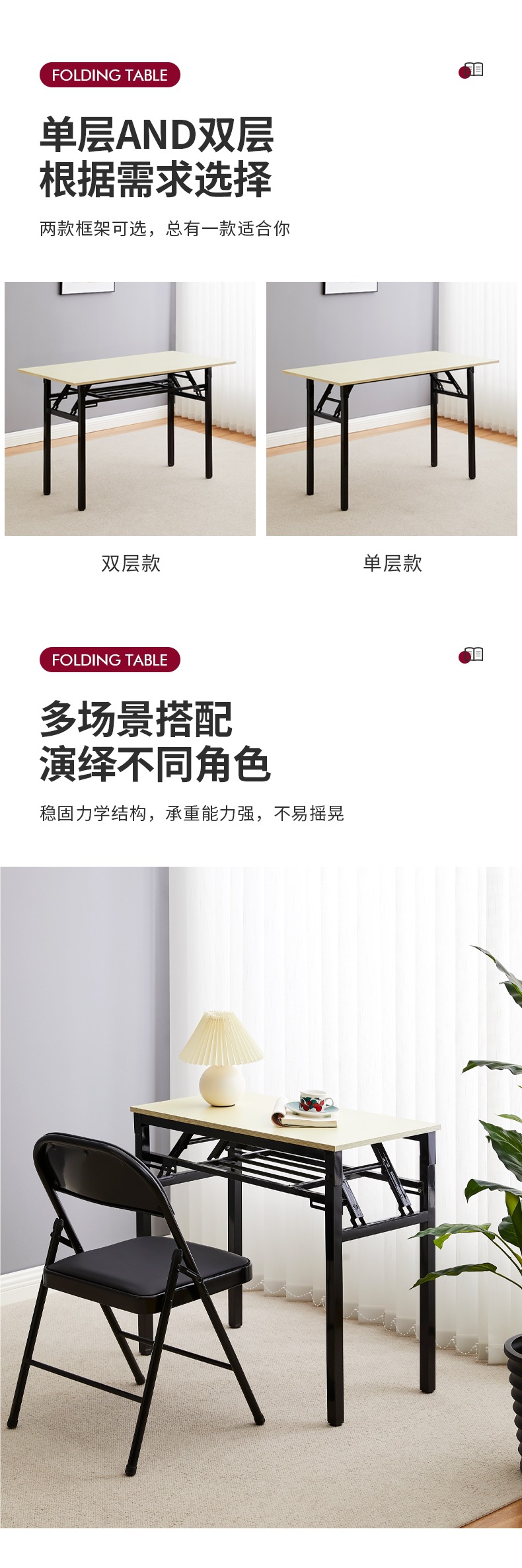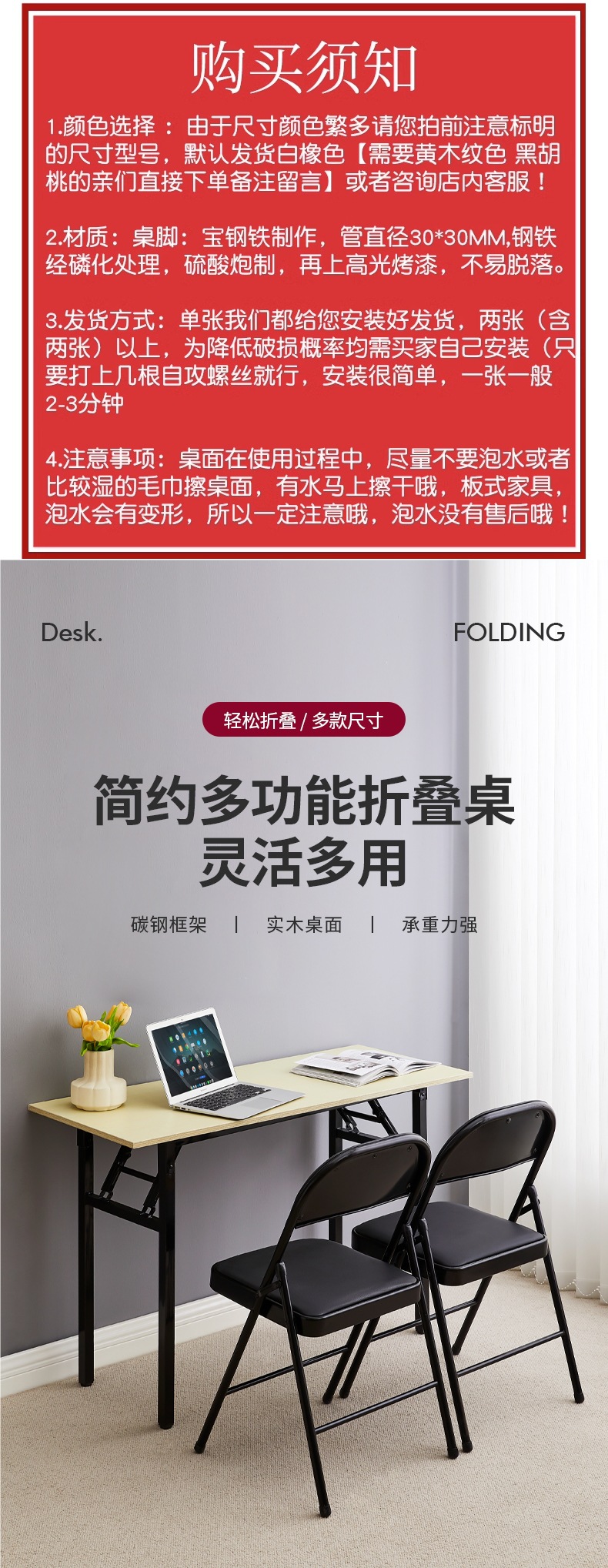 간단한 접이식 테이블 훈련 테이블 직사각형 야외 휴대용 스터디 데스크 회의 긴 테이블 식탁 접이식
