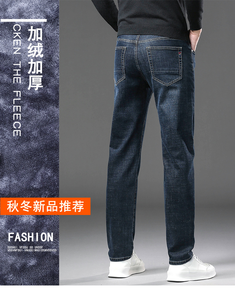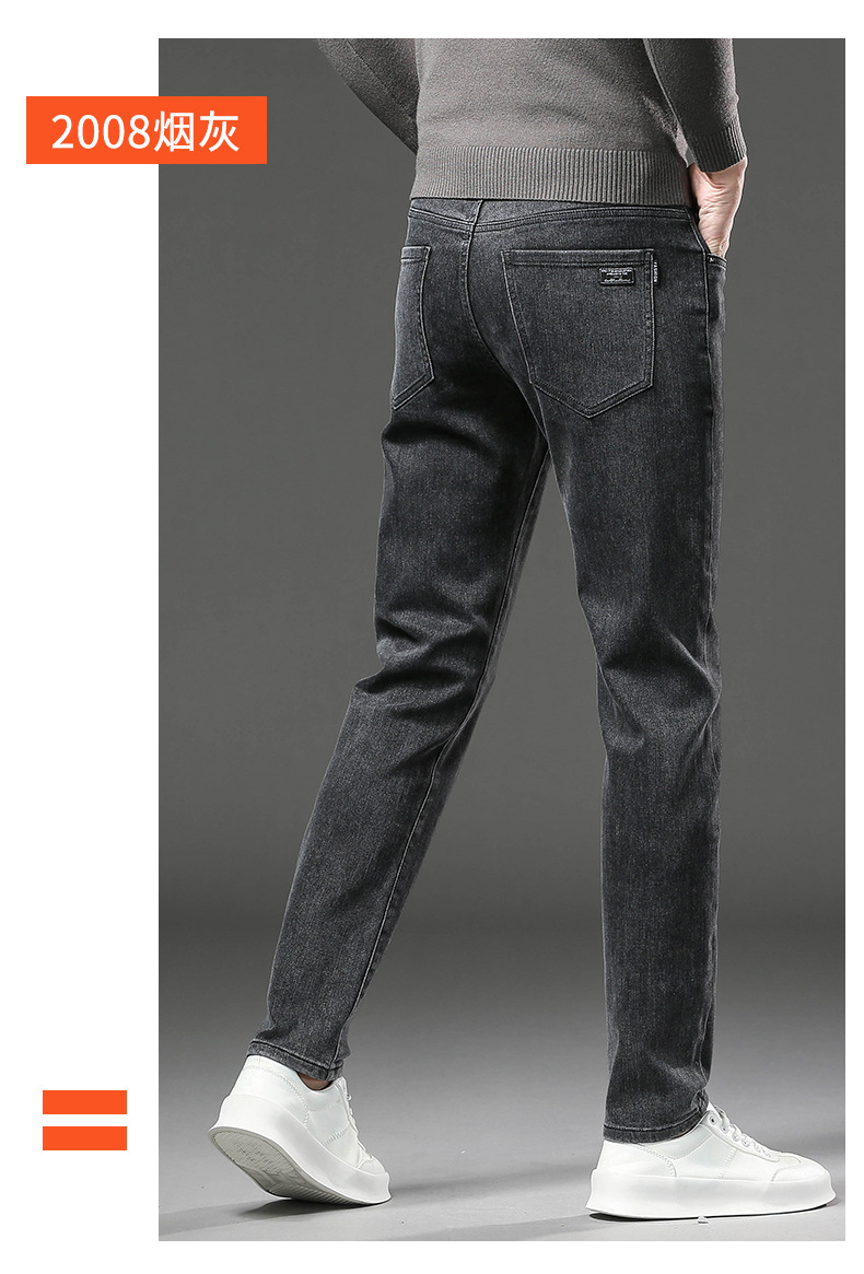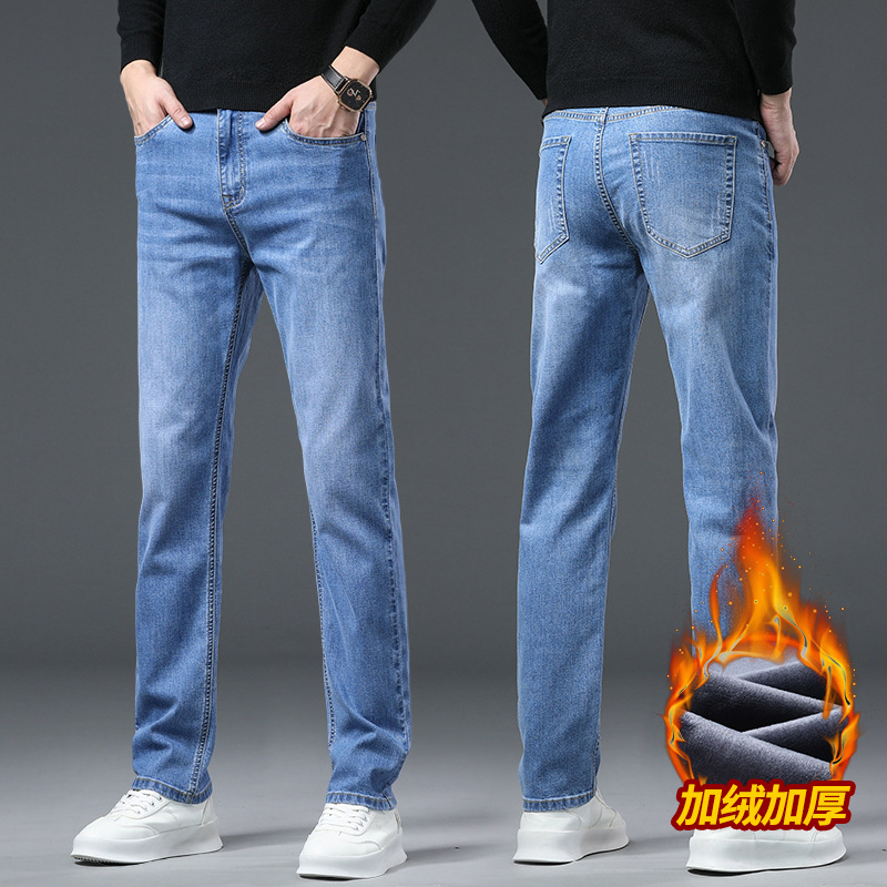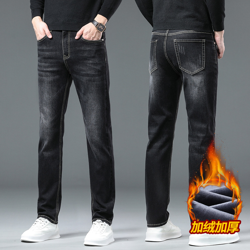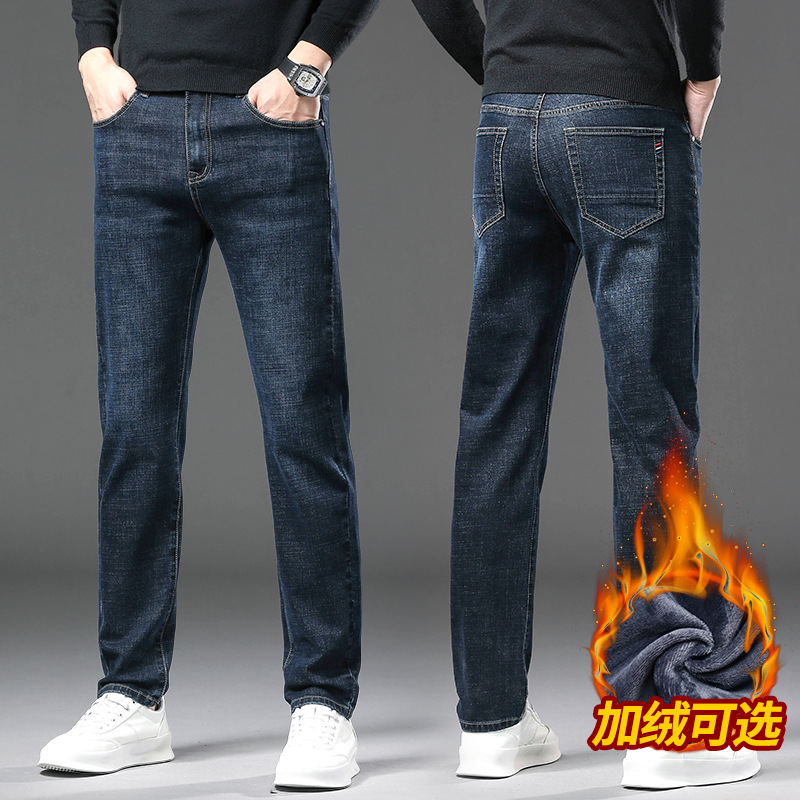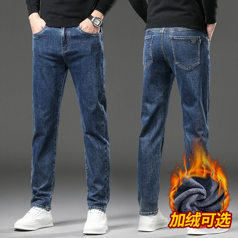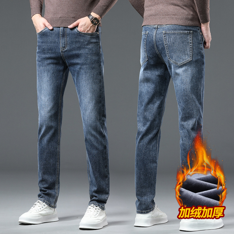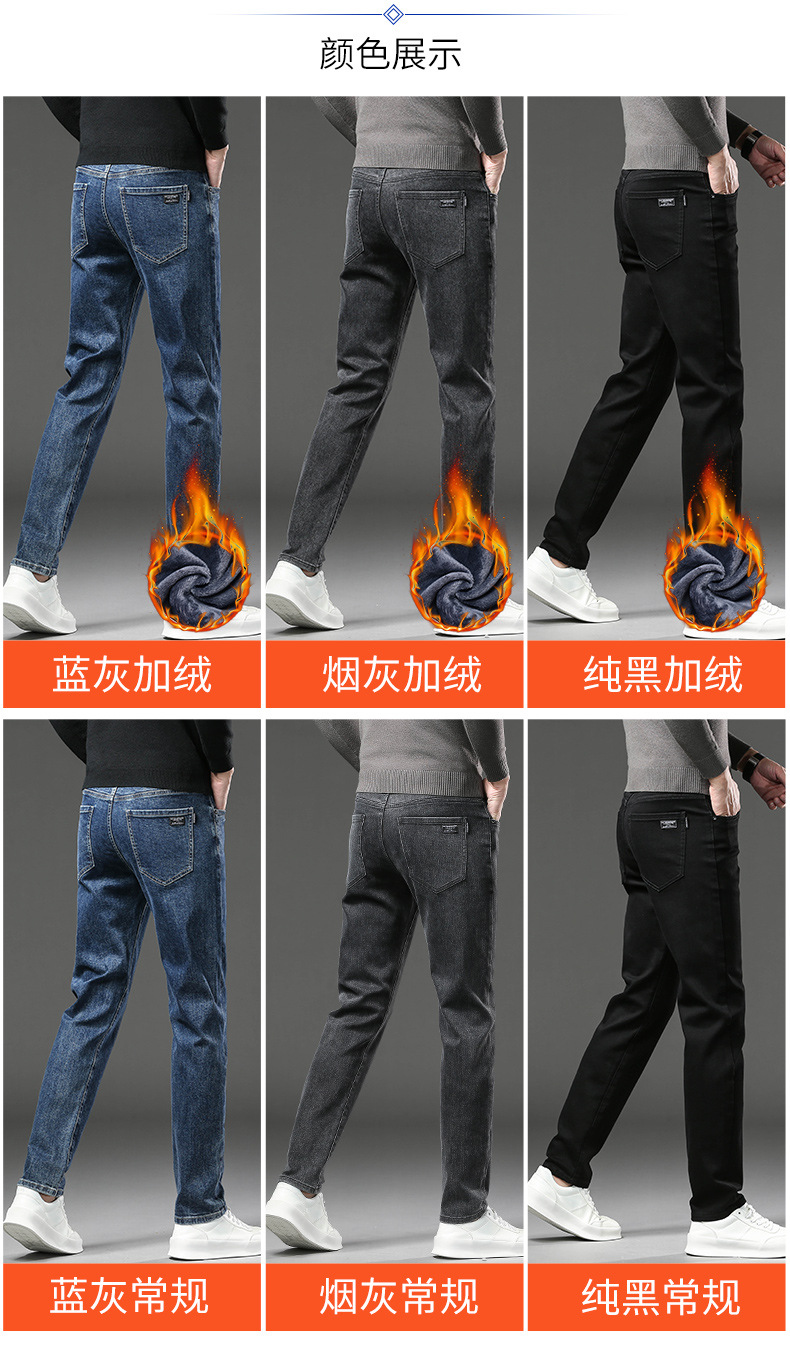 청바지 남자 가을과 겨울 한국 스타일 캐주얼 바지 젊은 남자 슬림 핏 기모 두꺼운 스트레치 올 매치 롱 바지스토어 가기