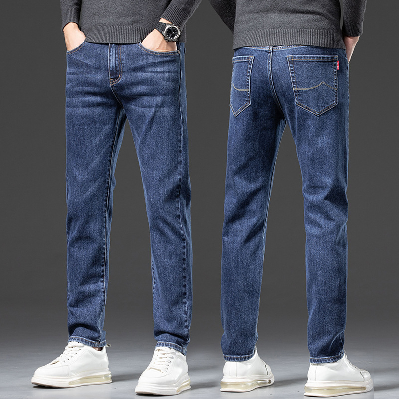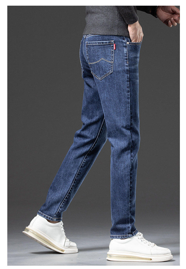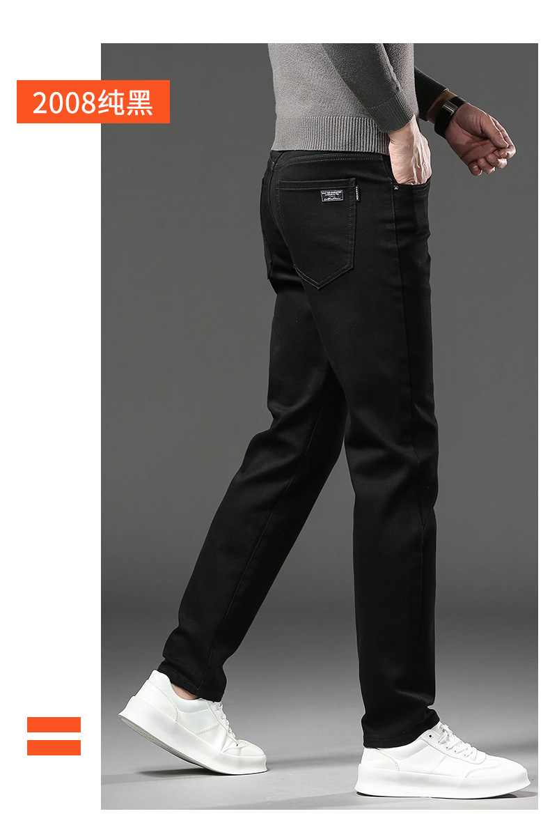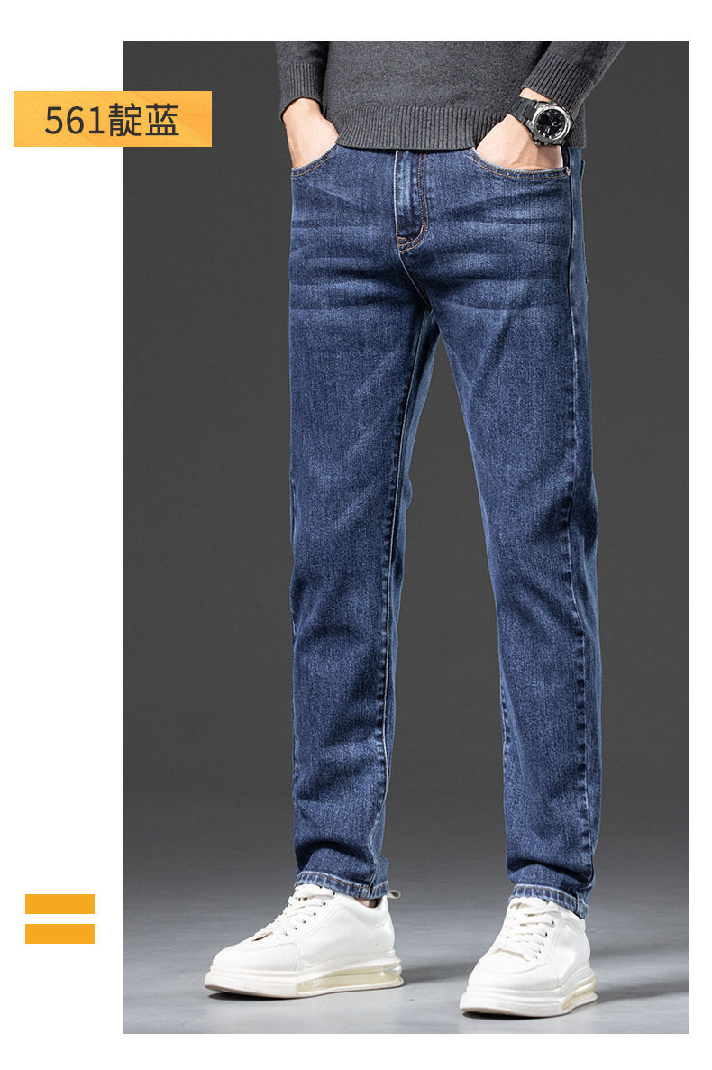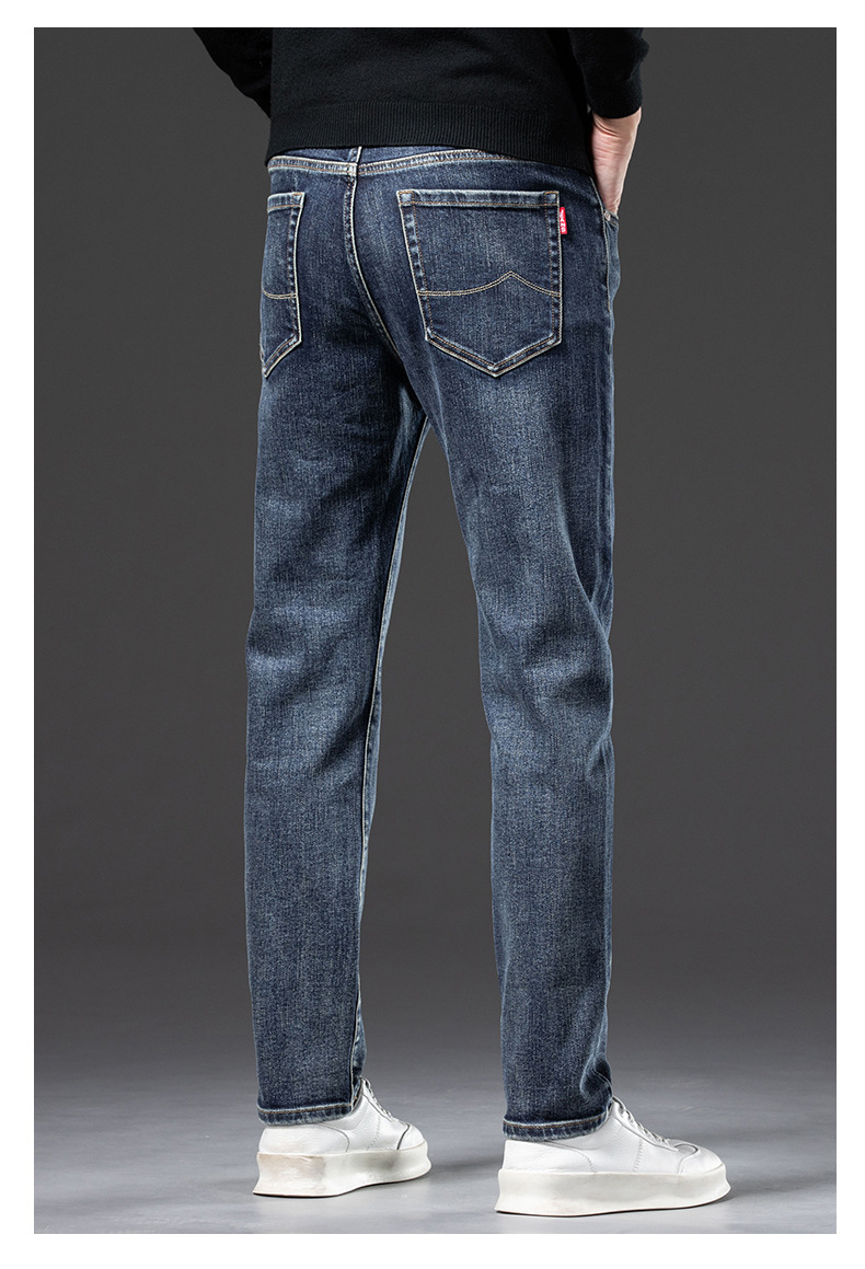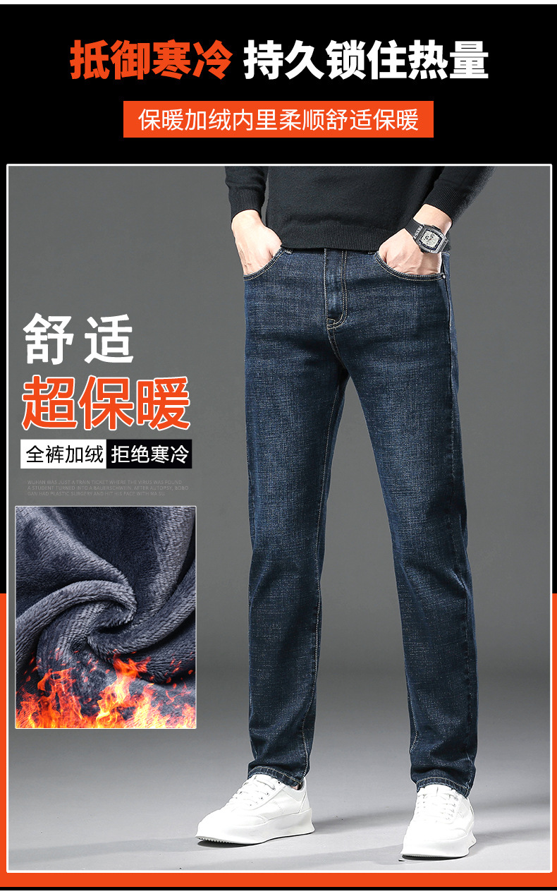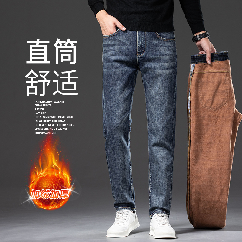 청바지 남자 가을과 겨울 한국 스타일 캐주얼 바지 젊은 남자 슬림 핏 기모 두꺼운 스트레치 올 매치 롱 바지스토어 가기