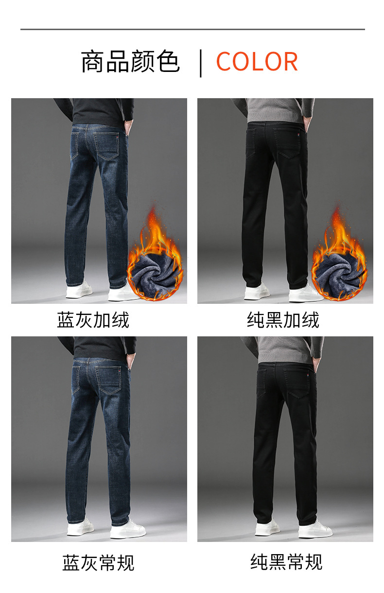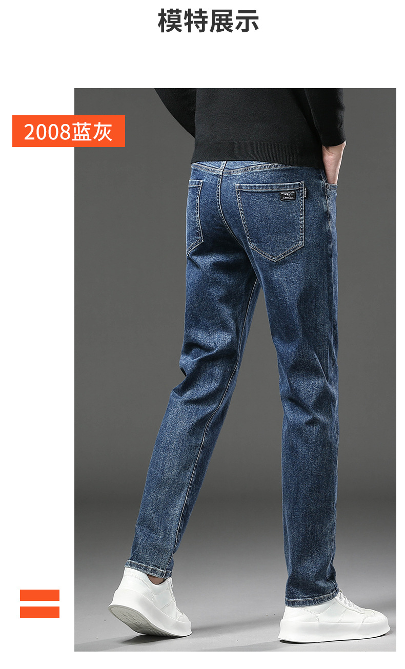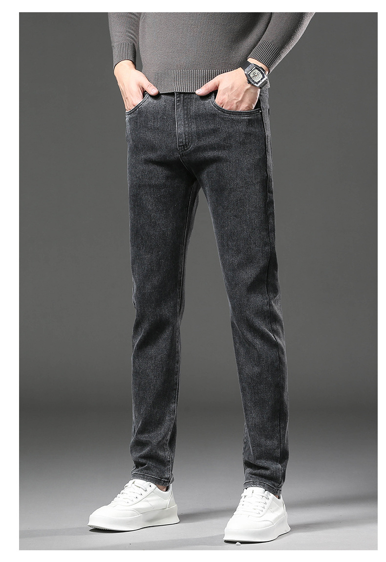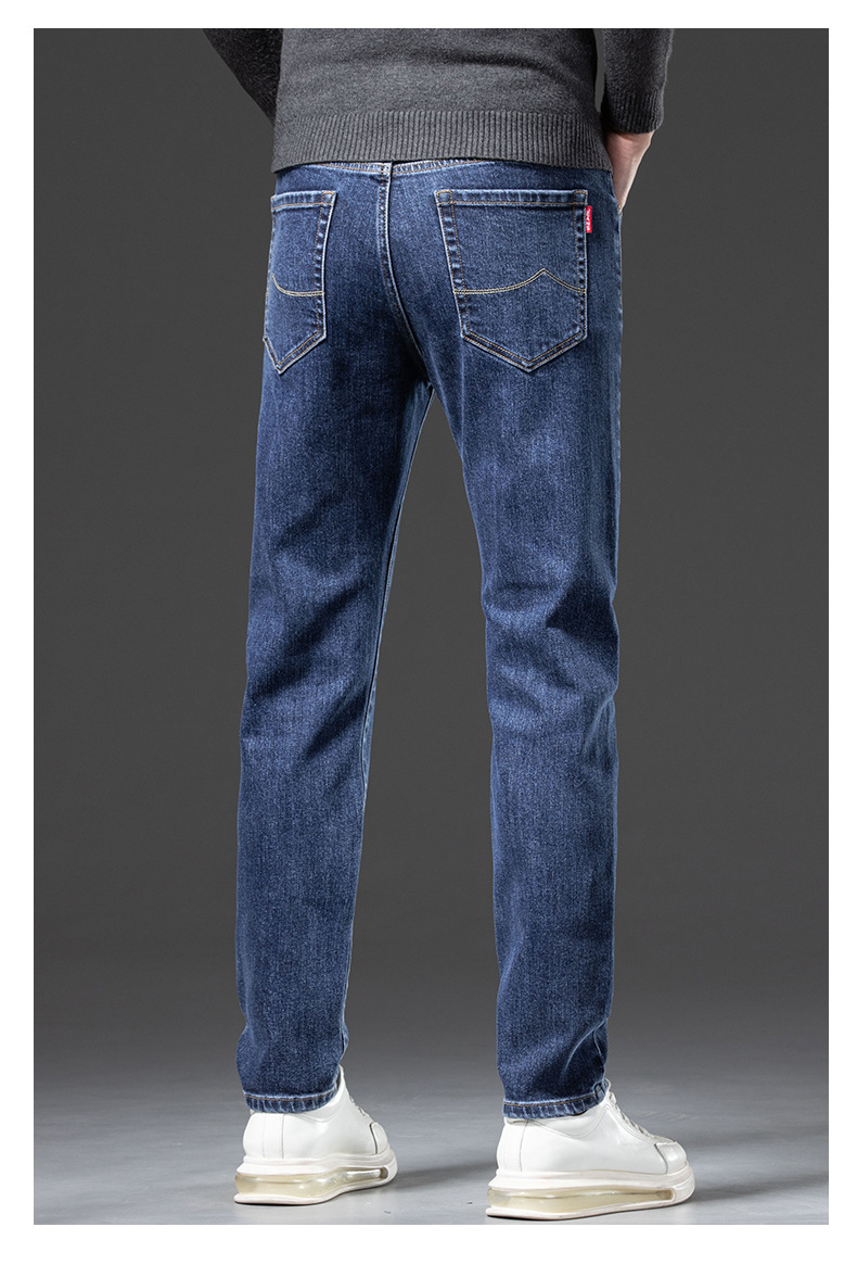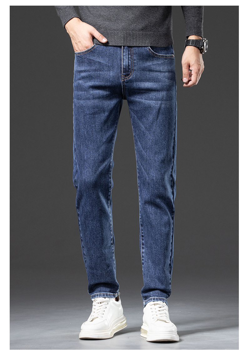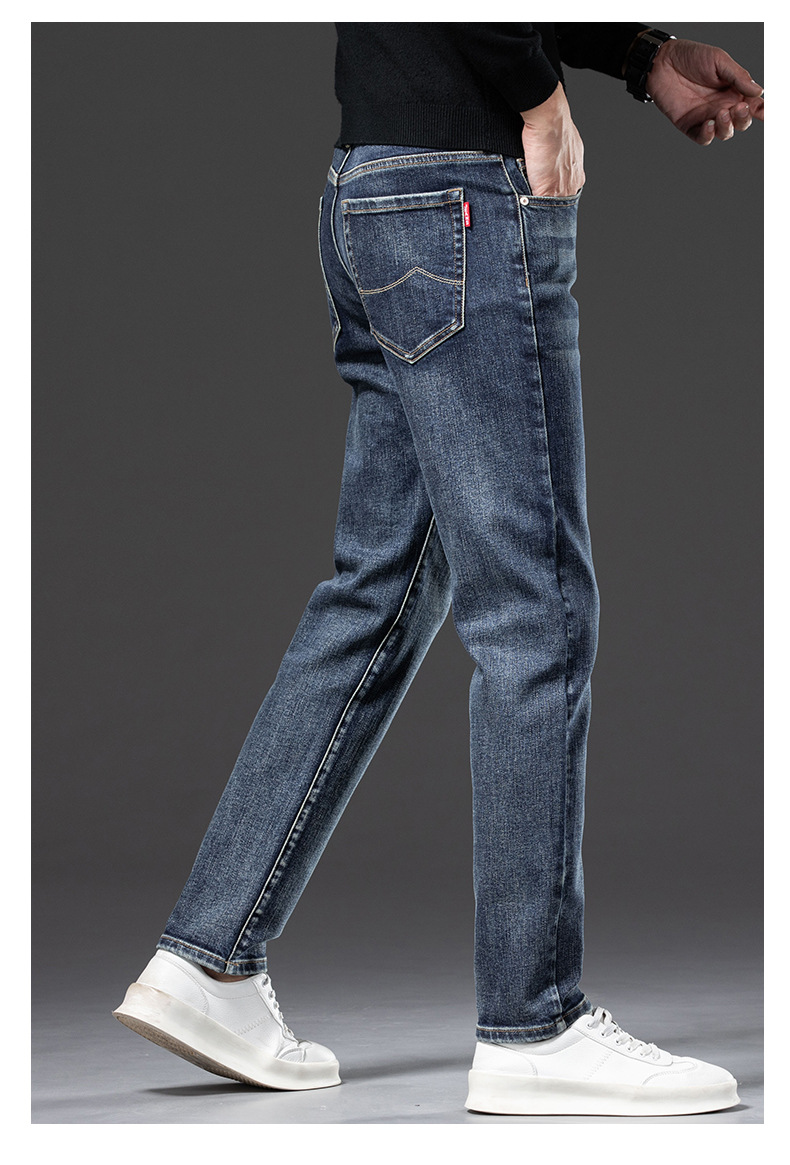 청바지 남자 가을과 겨울 한국 스타일 캐주얼 바지 젊은 남자 슬림 핏 기모 두꺼운 스트레치 올 매치 롱 바지스토어 가기
