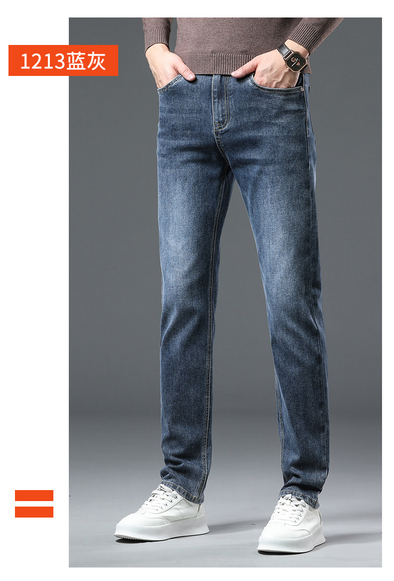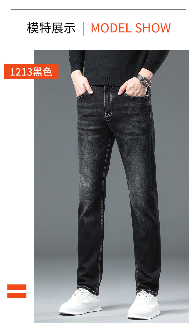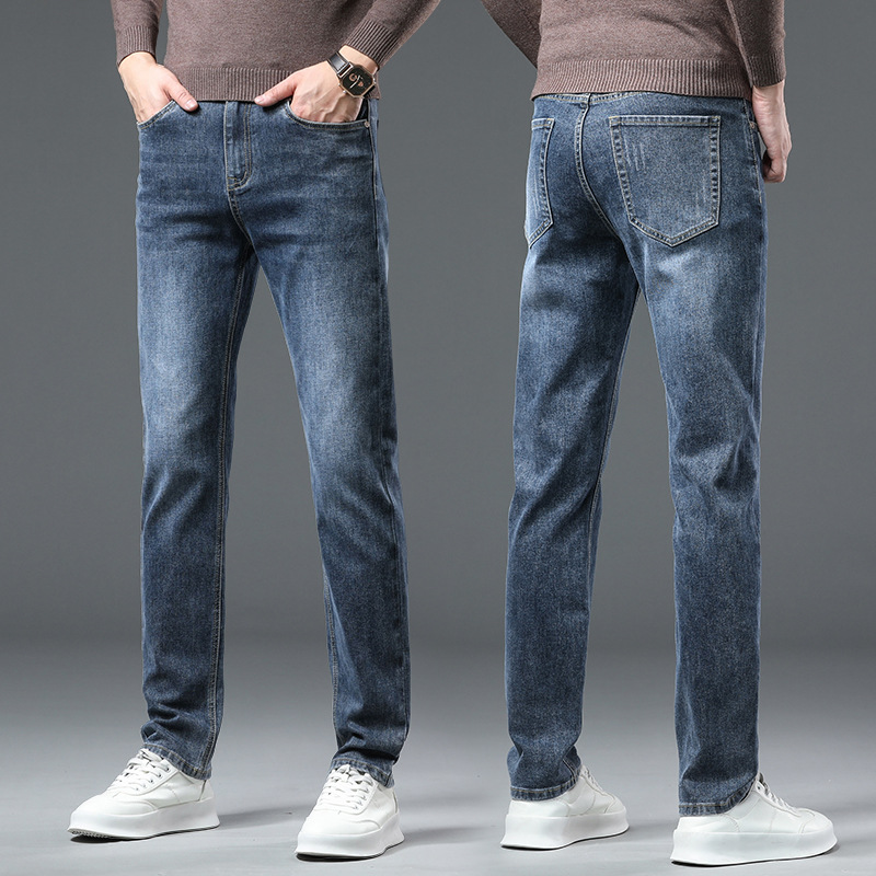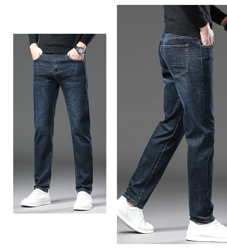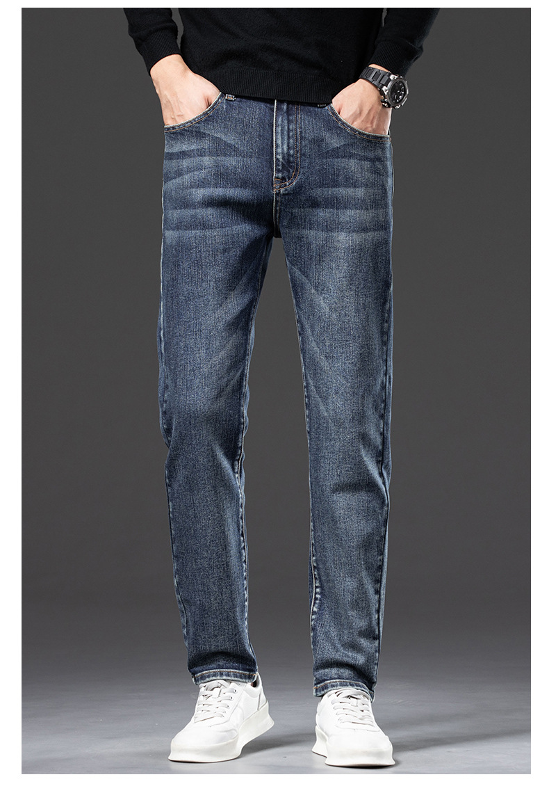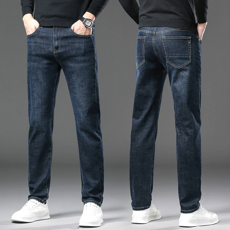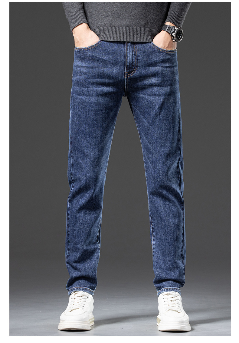 청바지 남자 가을과 겨울 한국 스타일 캐주얼 바지 젊은 남자 슬림 핏 기모 두꺼운 스트레치 올 매치 롱 바지스토어 가기