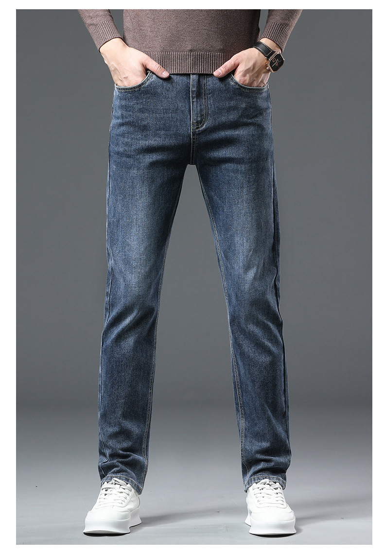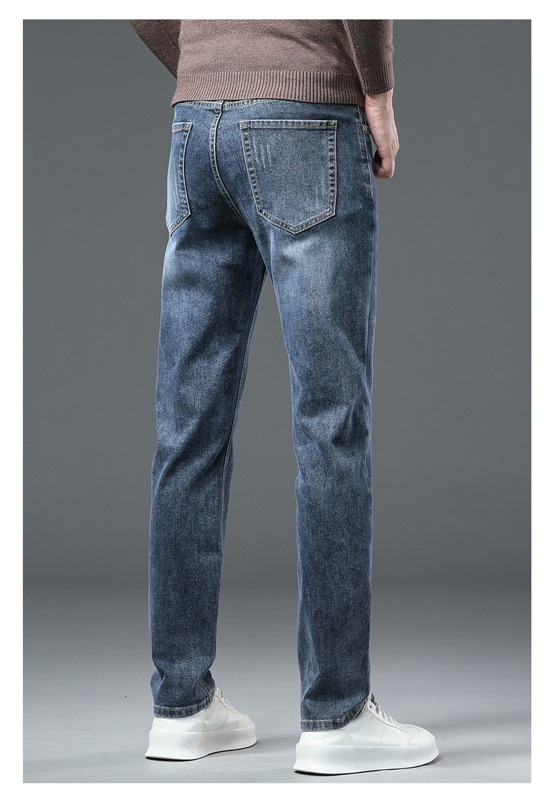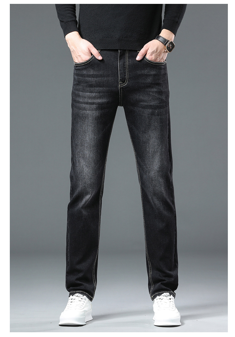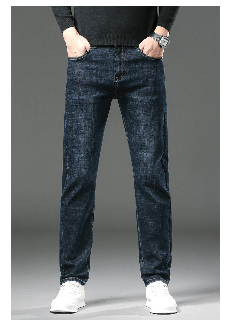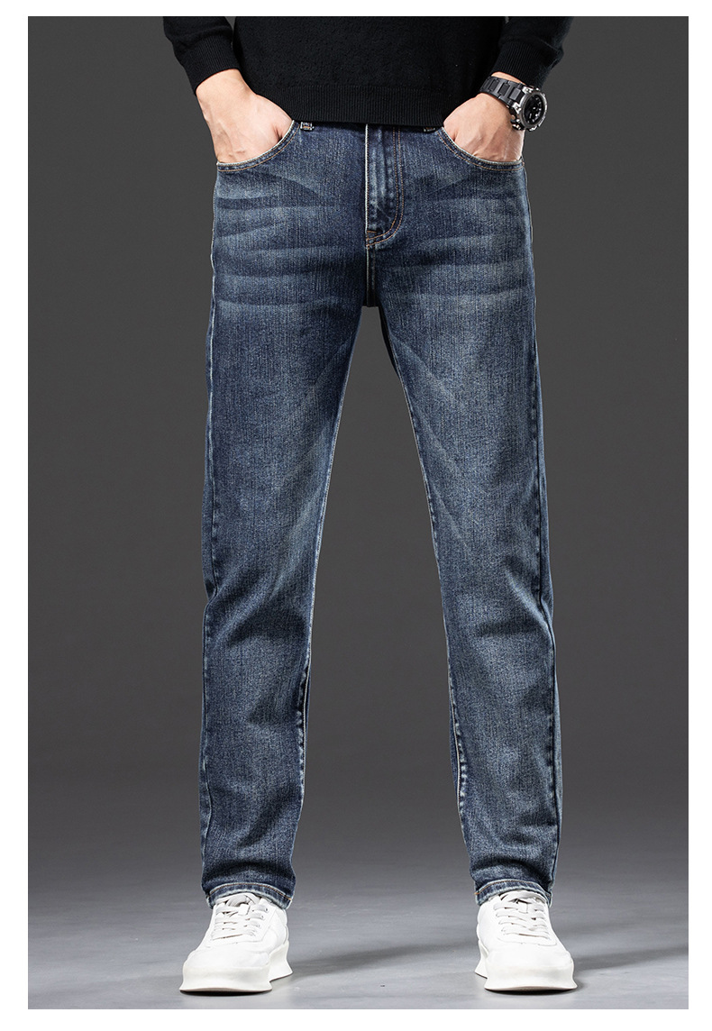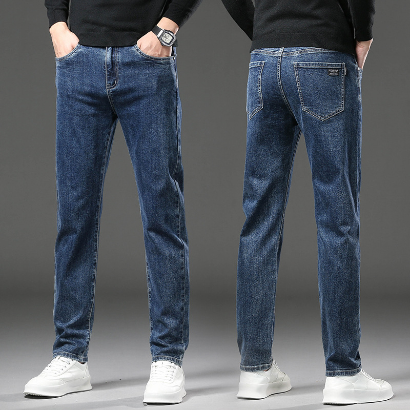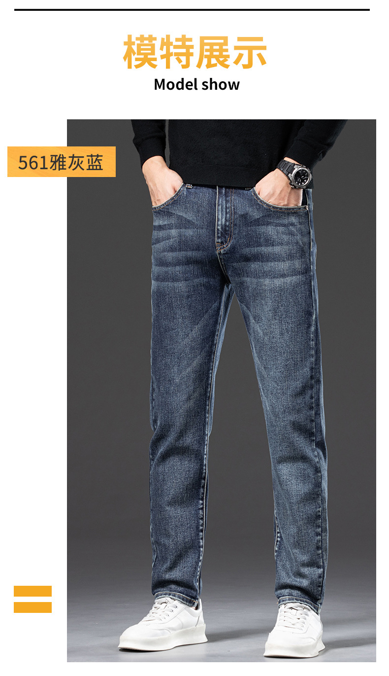 청바지 남자 가을과 겨울 한국 스타일 캐주얼 바지 젊은 남자 슬림 핏 기모 두꺼운 스트레치 올 매치 롱 바지스토어 가기