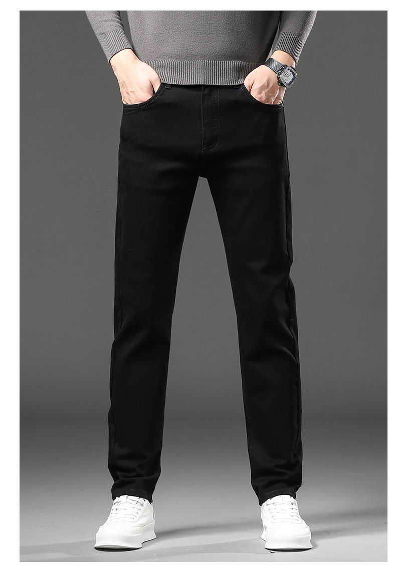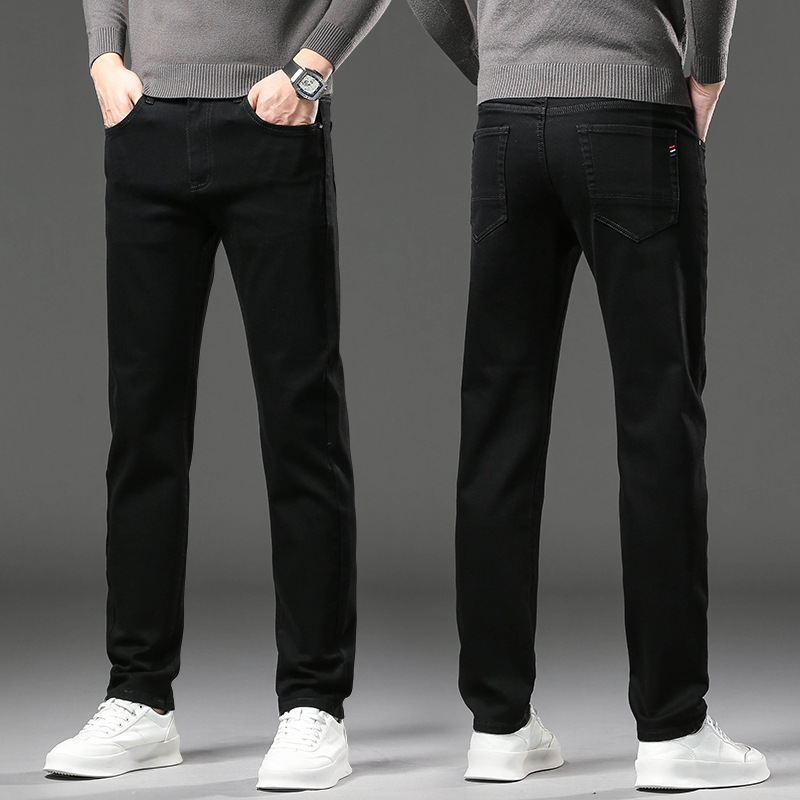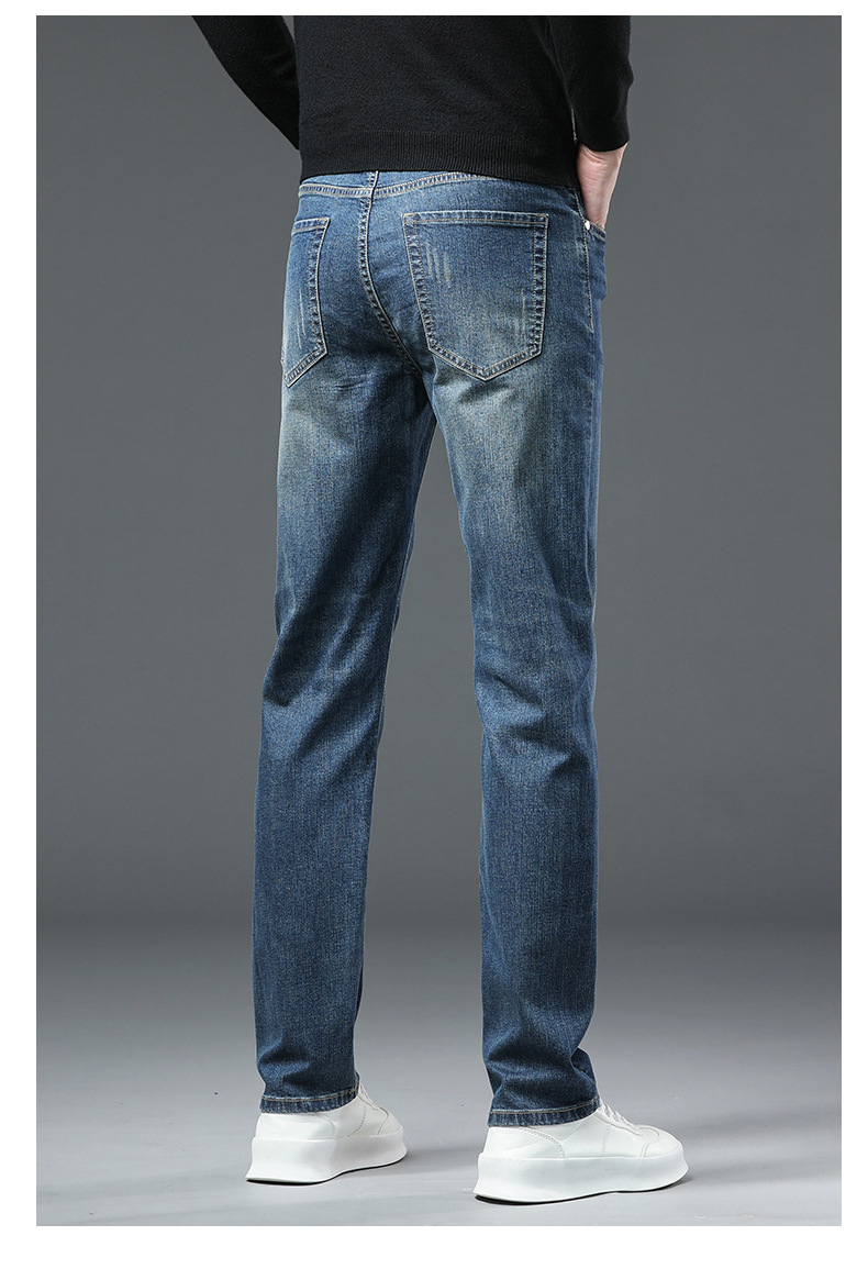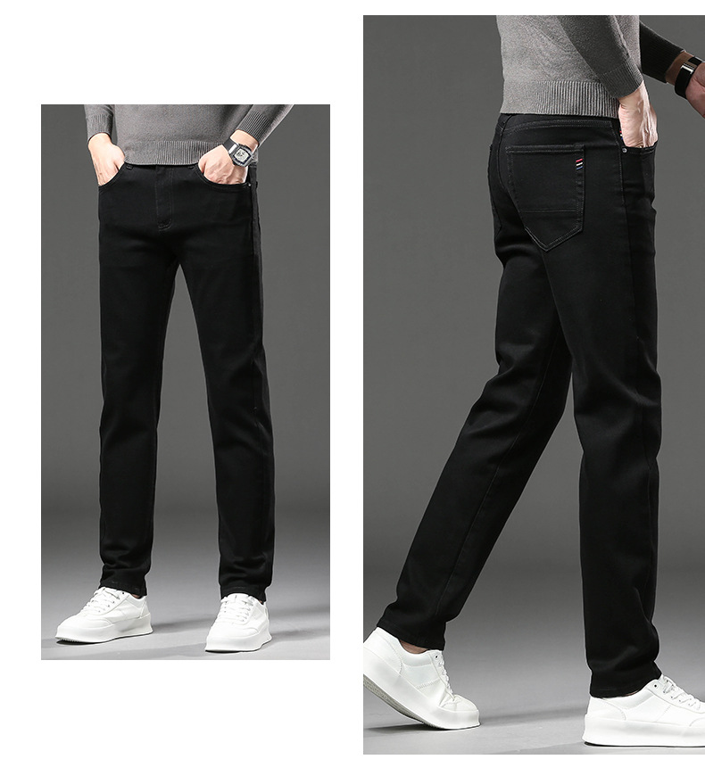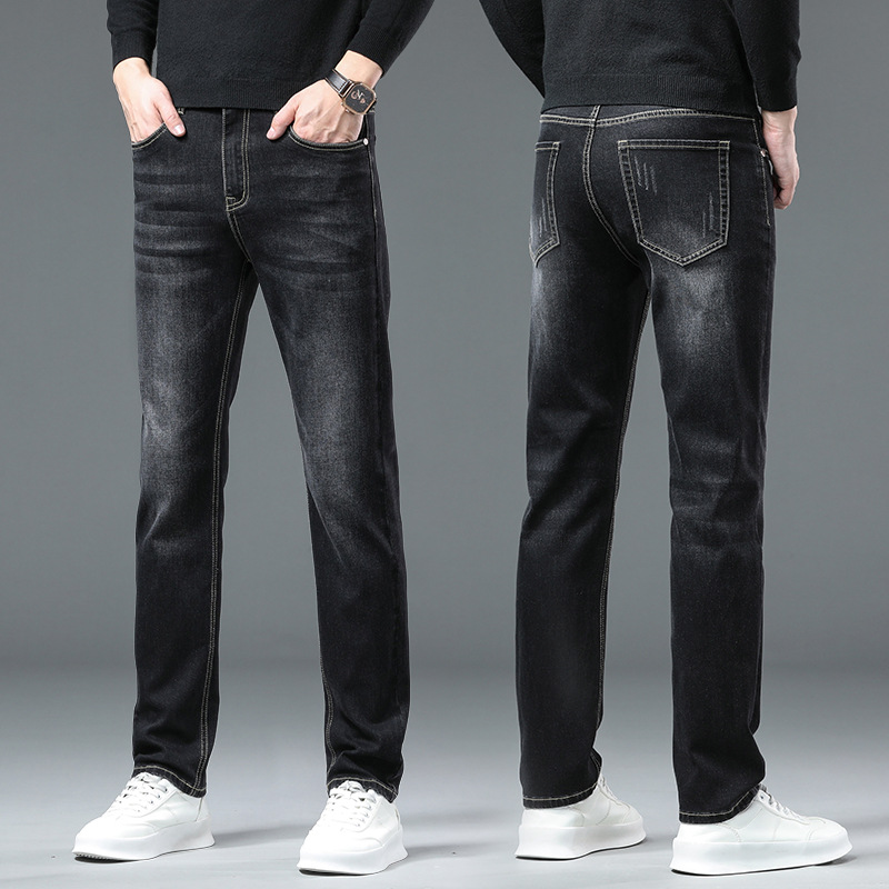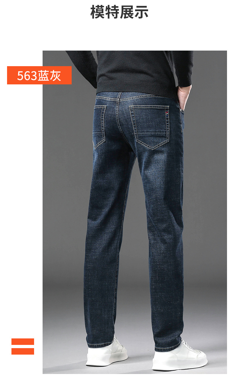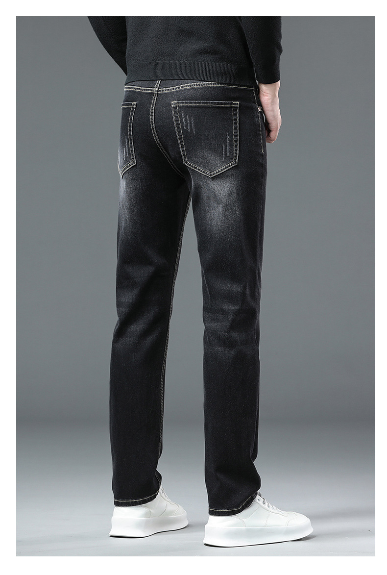 청바지 남자 가을과 겨울 한국 스타일 캐주얼 바지 젊은 남자 슬림 핏 기모 두꺼운 스트레치 올 매치 롱 바지스토어 가기