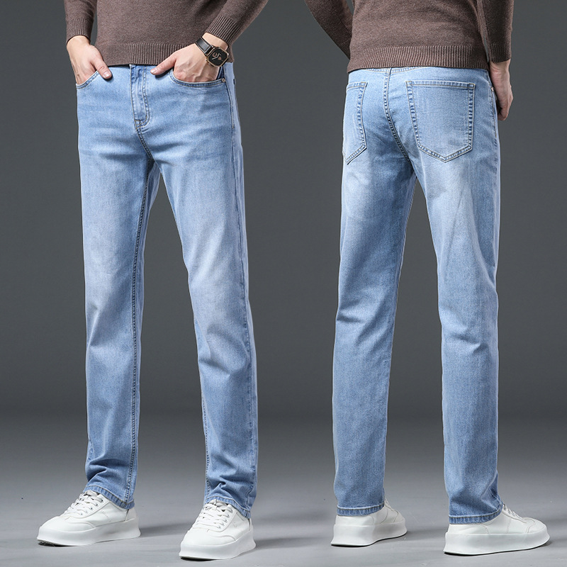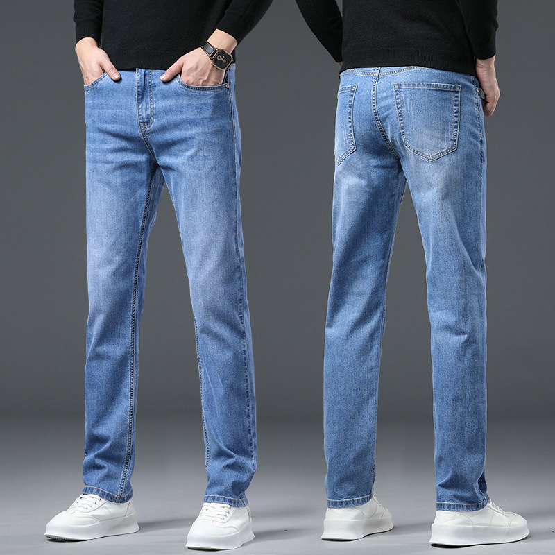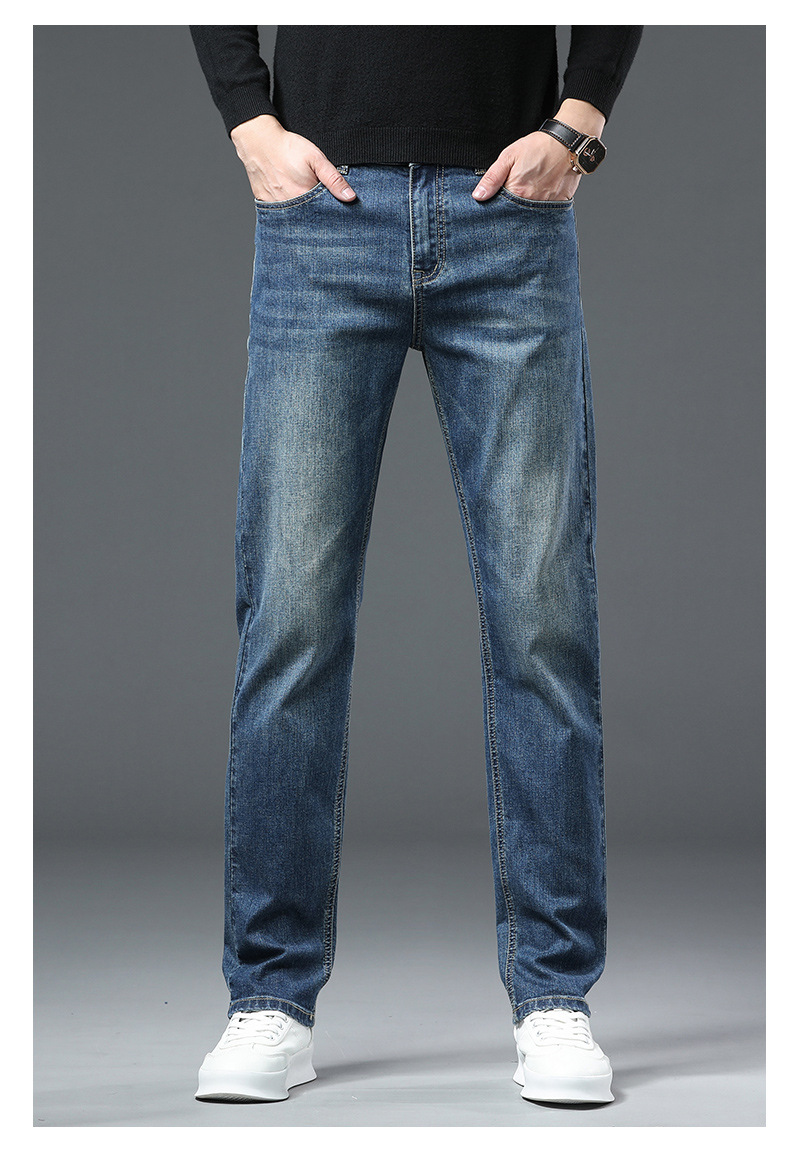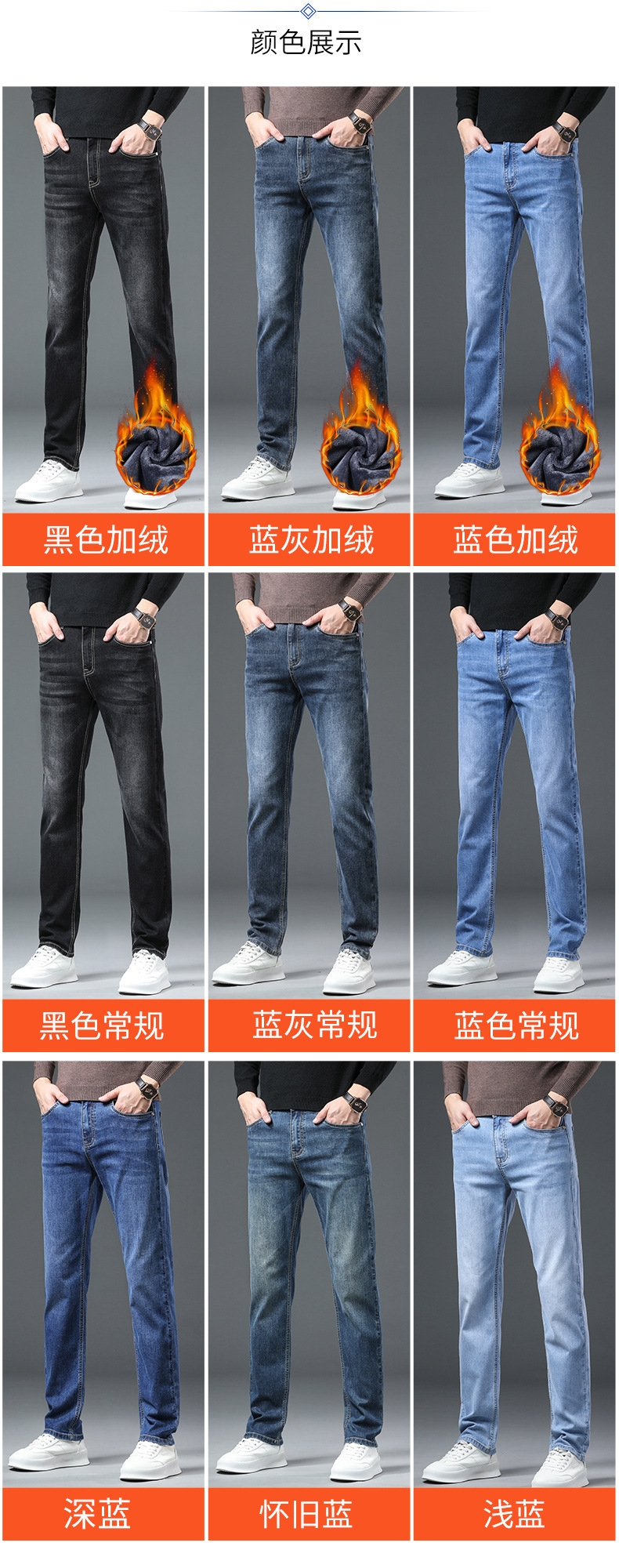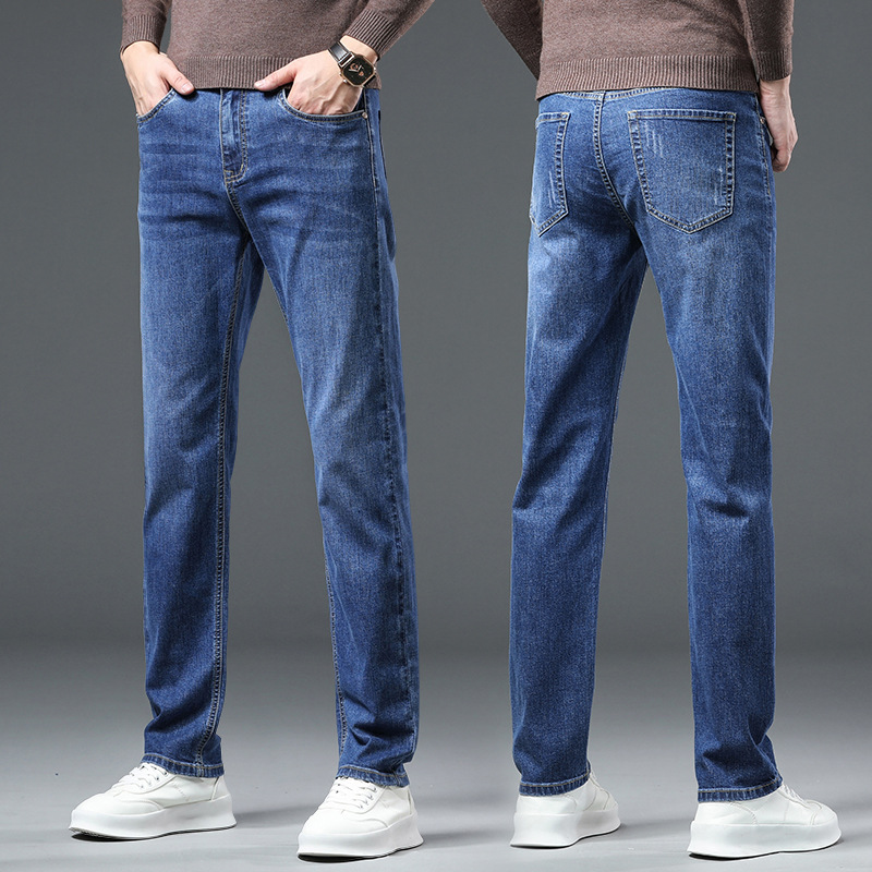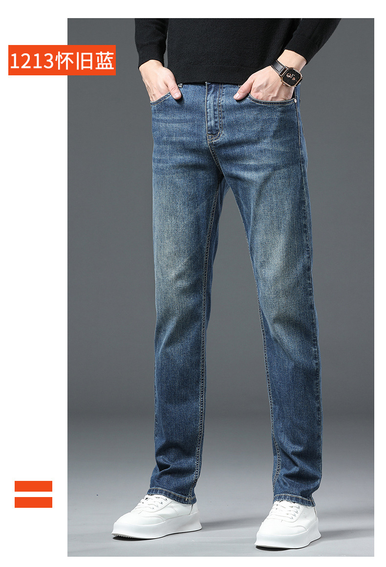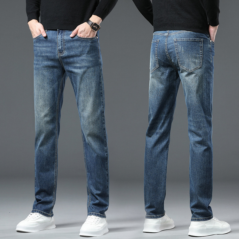청바지 남자 가을과 겨울 한국 스타일 캐주얼 바지 젊은 남자 슬림 핏 기모 두꺼운 스트레치 올 매치 롱 바지스토어 가기