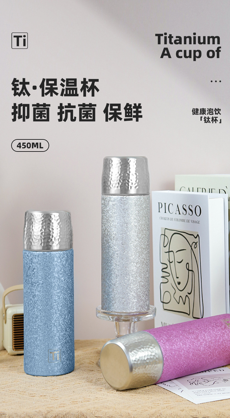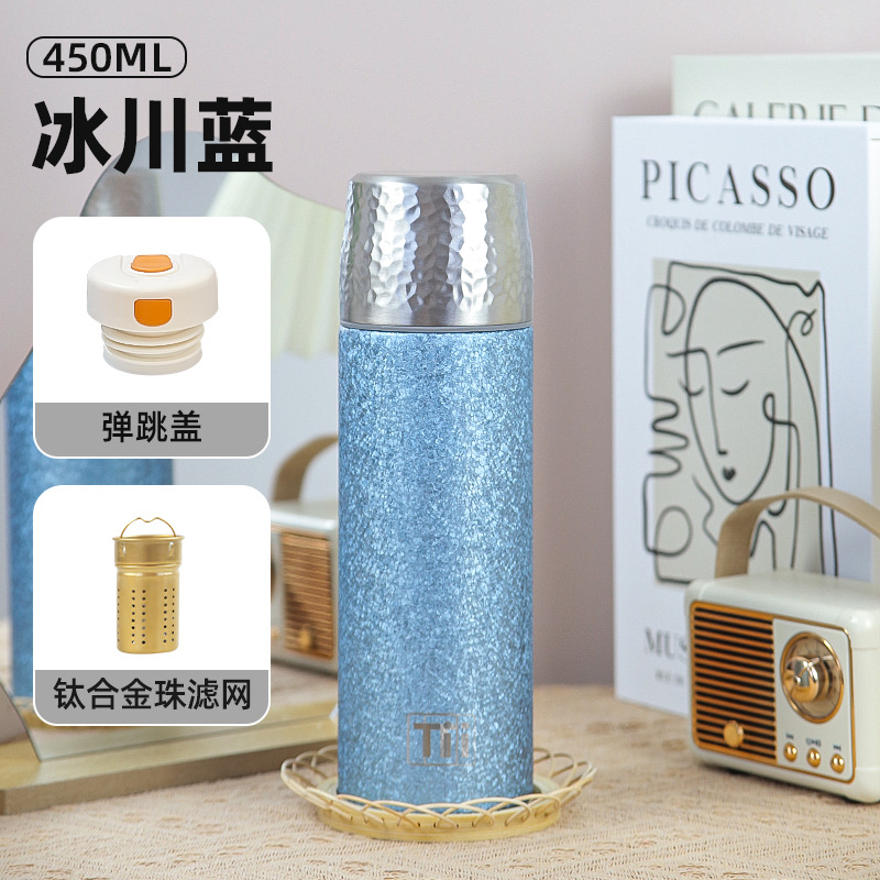 티타늄 컵 하이 엔드 비즈니스 선물 보온병 컵 풀 커버 티타늄 크래프트 티 컵 새로운 휴대용 건강 관리 항균 약한 알칼리 워터 컵