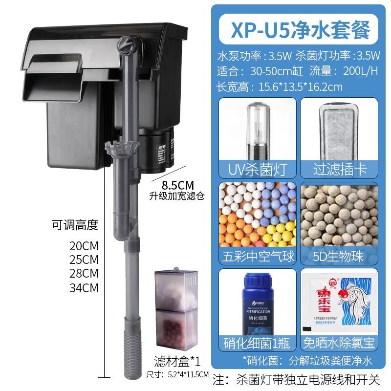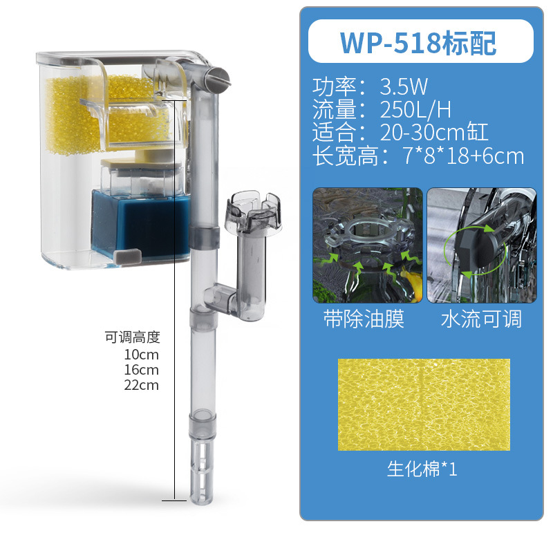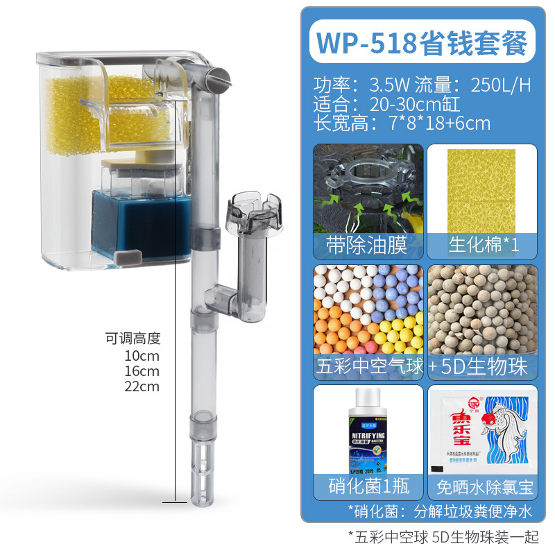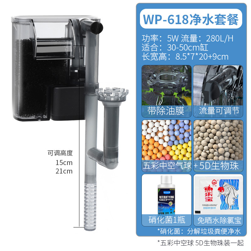 어항 필터 3 대 1 정수 사이클 작은 폭포 벽에 장착 된 미니 워터 펌프 내장 산소 순환 펌프