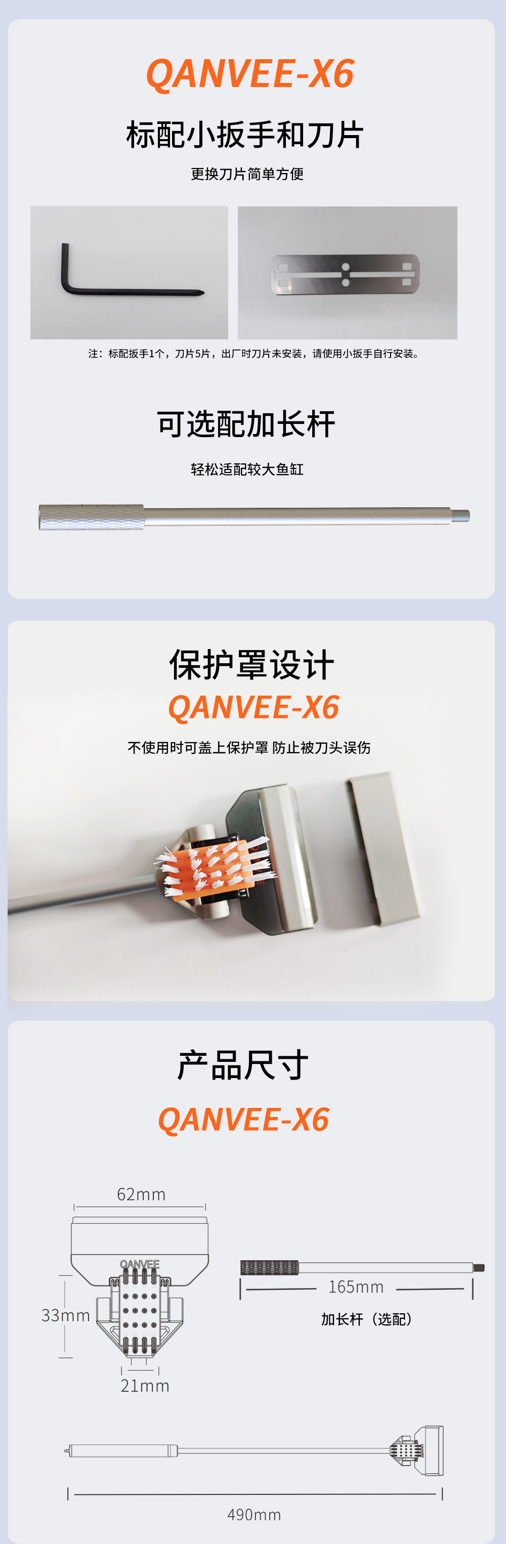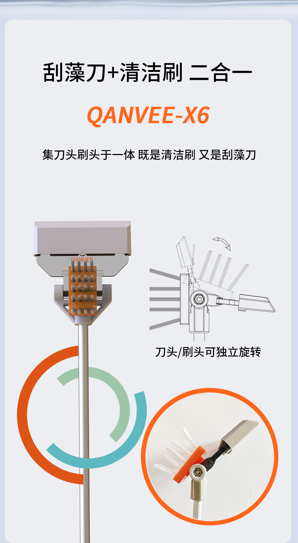 새로운 QANVEE Qianrui X6 어항 청소 그룹 조류 긁기 칼 청소 브러시 2 대 1 회전 가능한 조류 긁기 유물