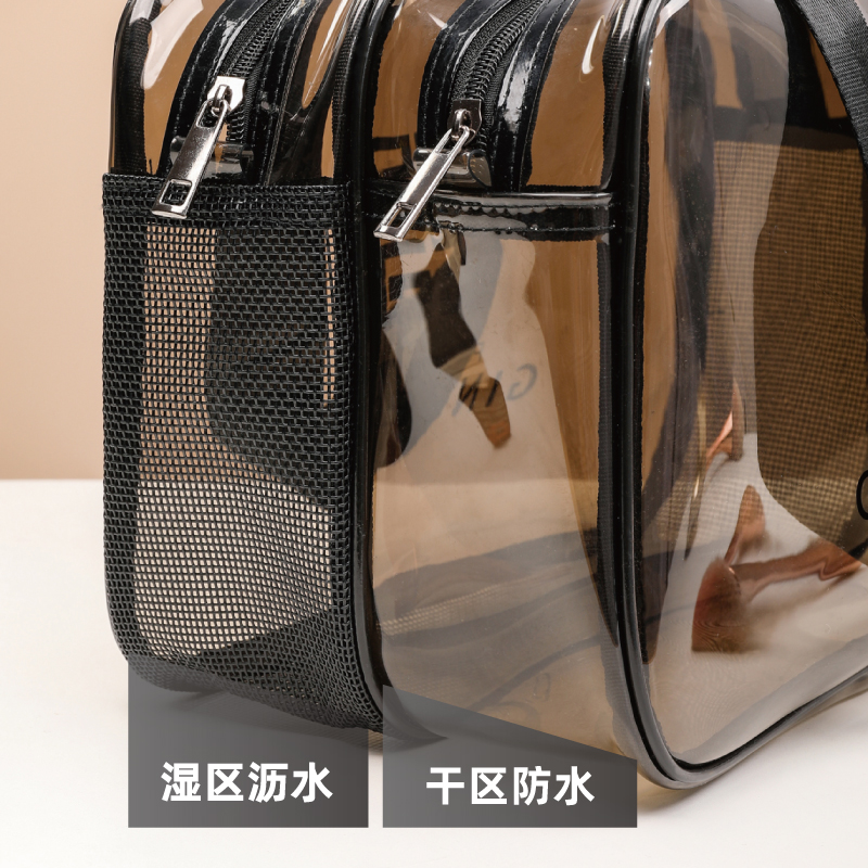 새로운 습식 및 건식 분리 세면 용품 가방 더블 레이어 화장품 가방 방수 접이식 두꺼운 투명 휴대용 화장품 보관 가방