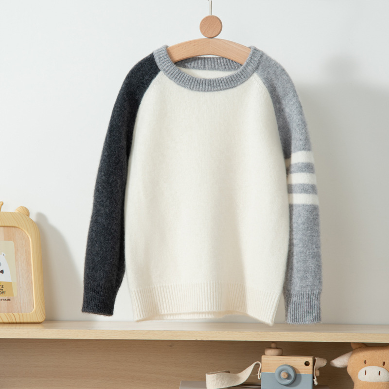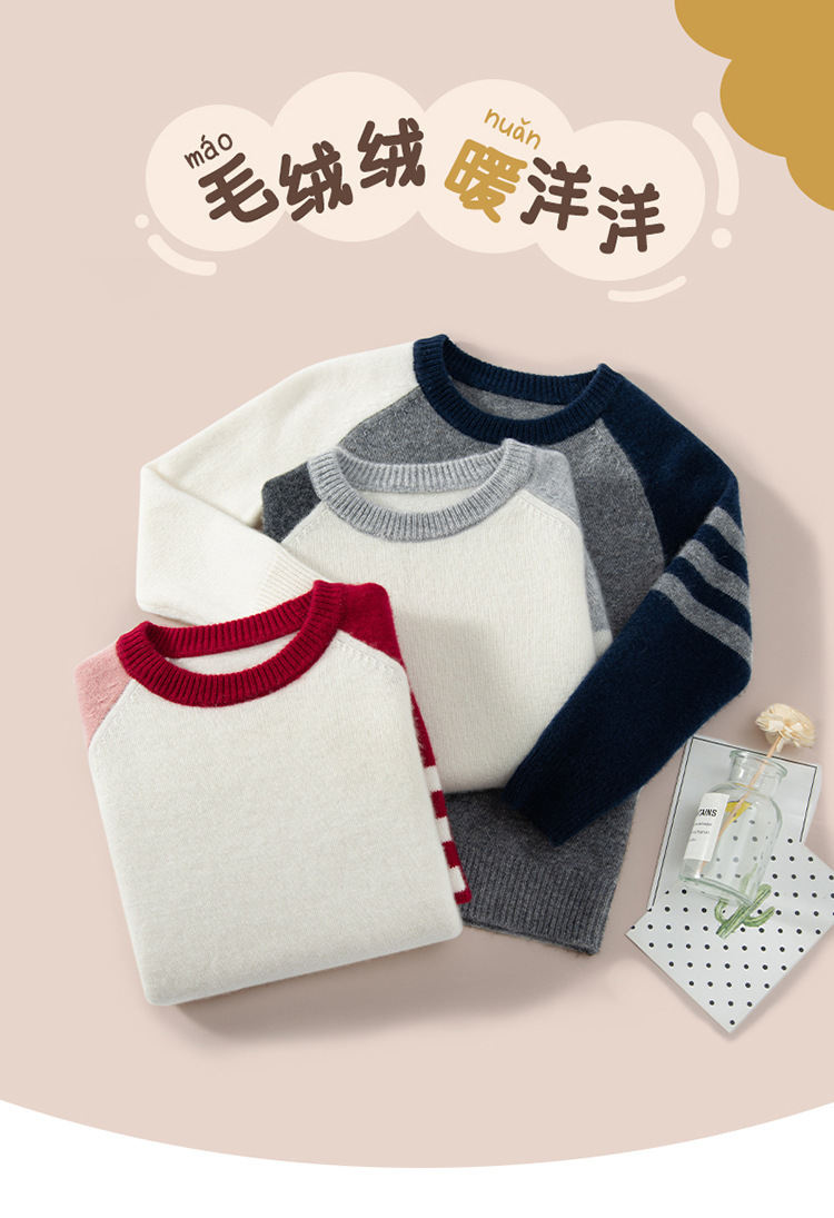 소녀 소년의 스웨터 풀오버 아기의 단색 양모 탑을위한 어린이 컬러 블록 두꺼운 캐시미어 스웨터 크루 넥 병목 셔츠