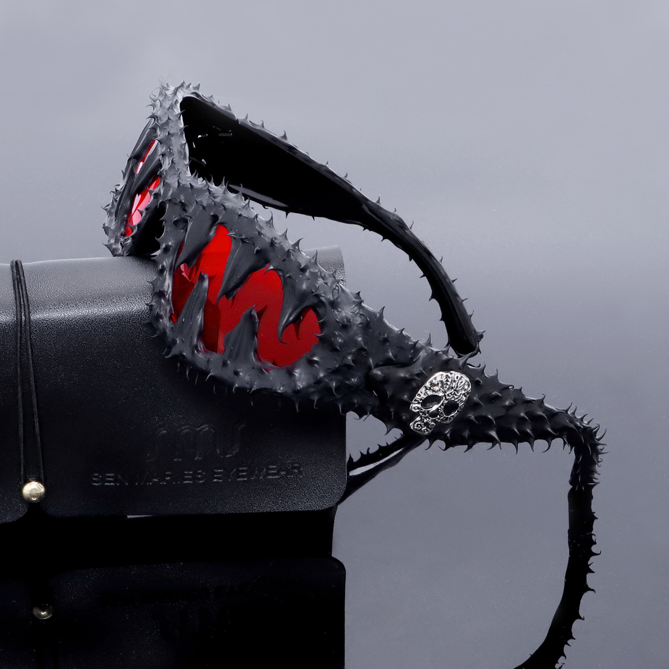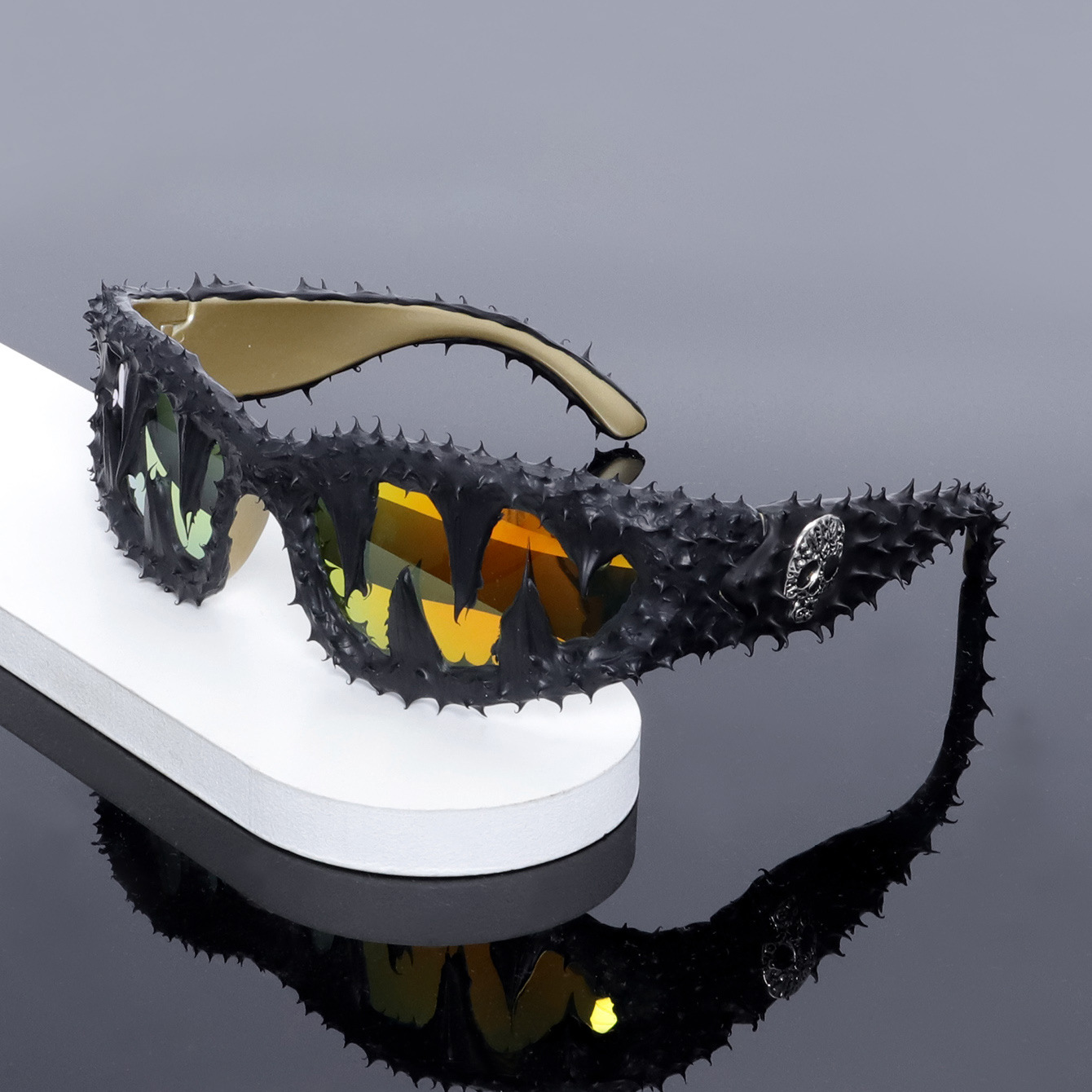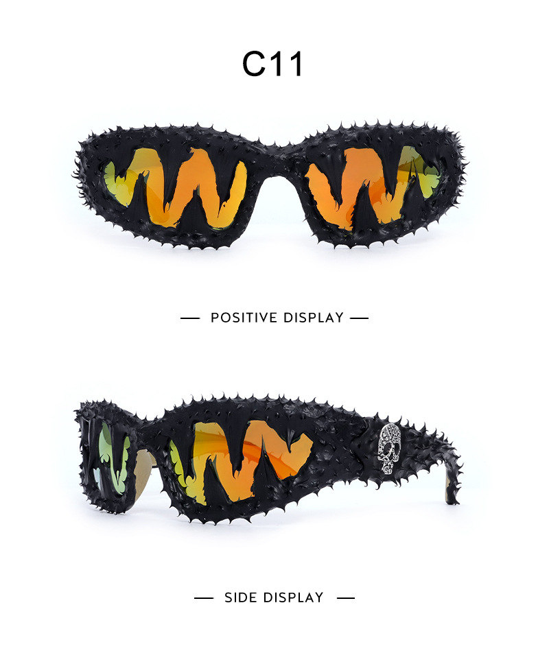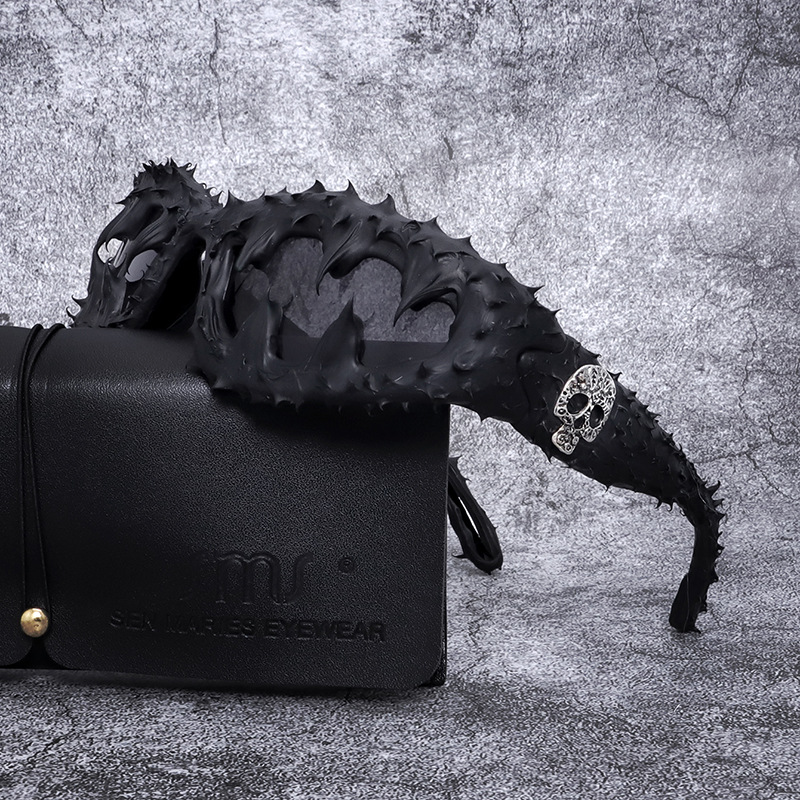 유럽과 미국의 스팀 펑크 패션 트렌드 맞춤형 작은 프레임 선글라스 남성과 여성의 순수 수제 비닐 치아 두개골 접착제 드롭 선글라스