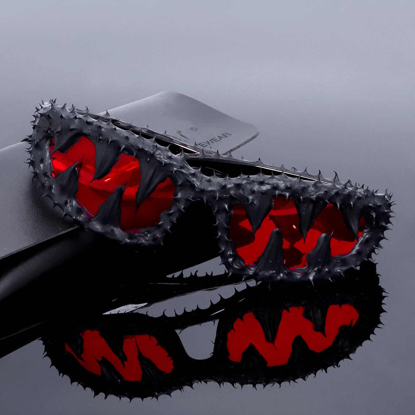 • 밝은 검정색과 빨간색 필름이 있는 검은색 고무 이빨 해골