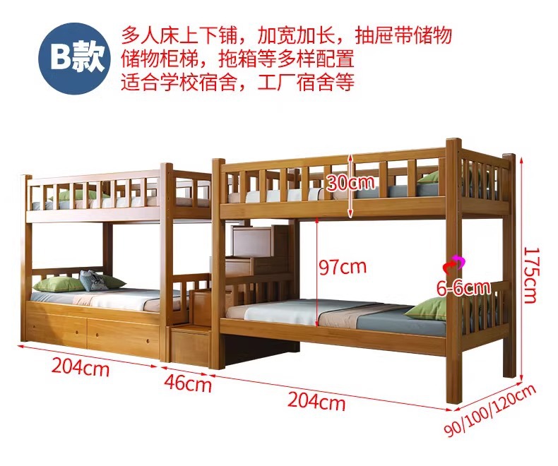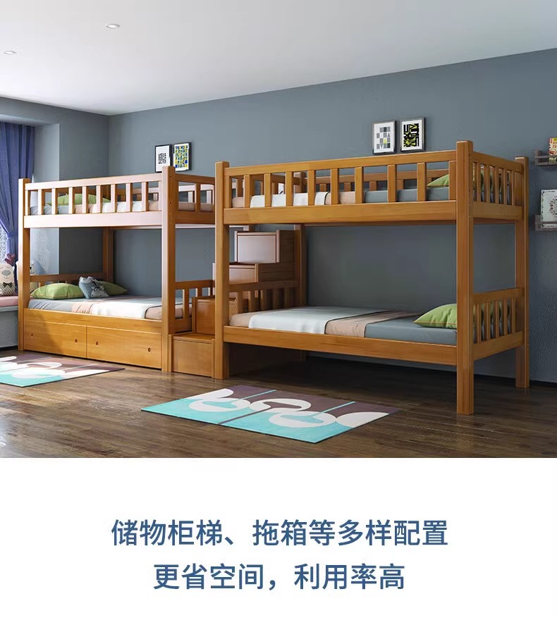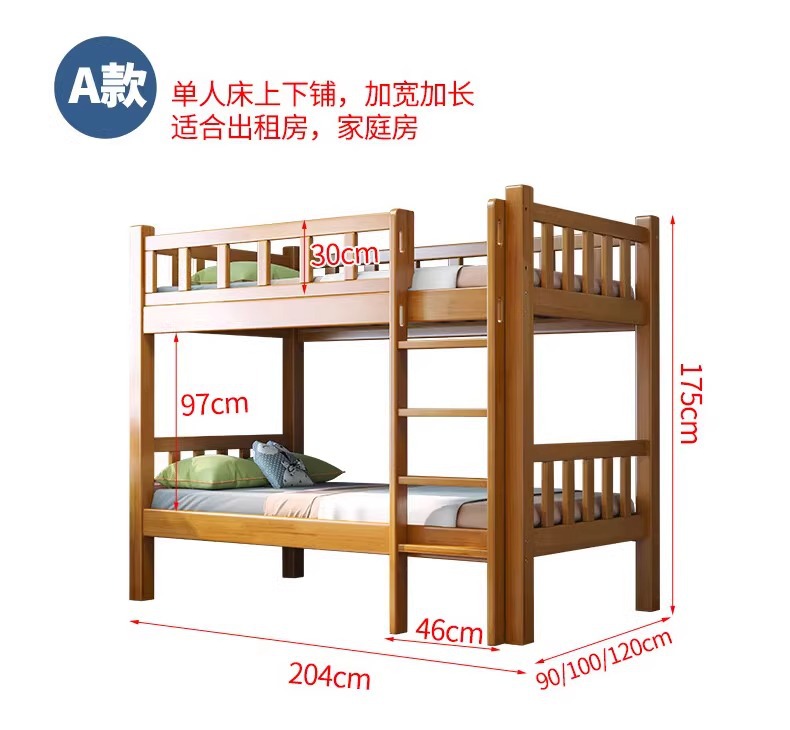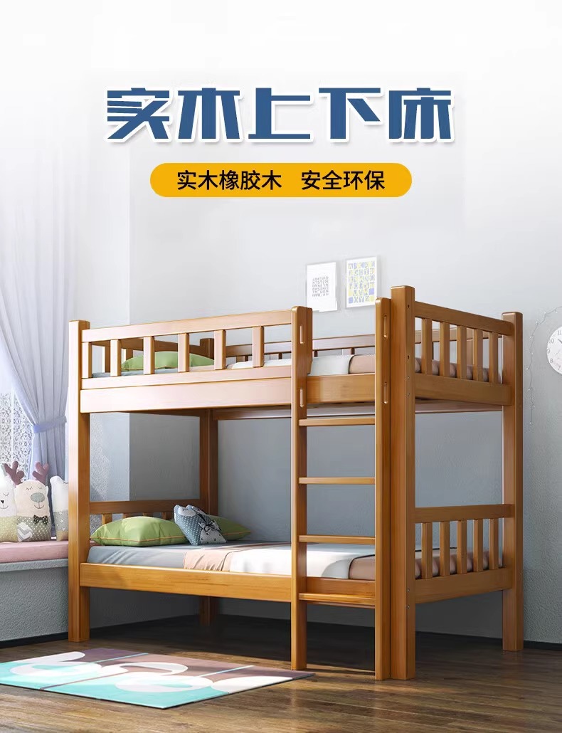 노르딕 고무 나무 학생 기숙사 가드 레일 단단한 나무 이층 침대 홈스테이 아파트 침대 직원 기숙사 침대 도매