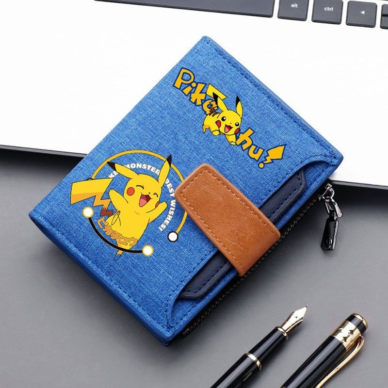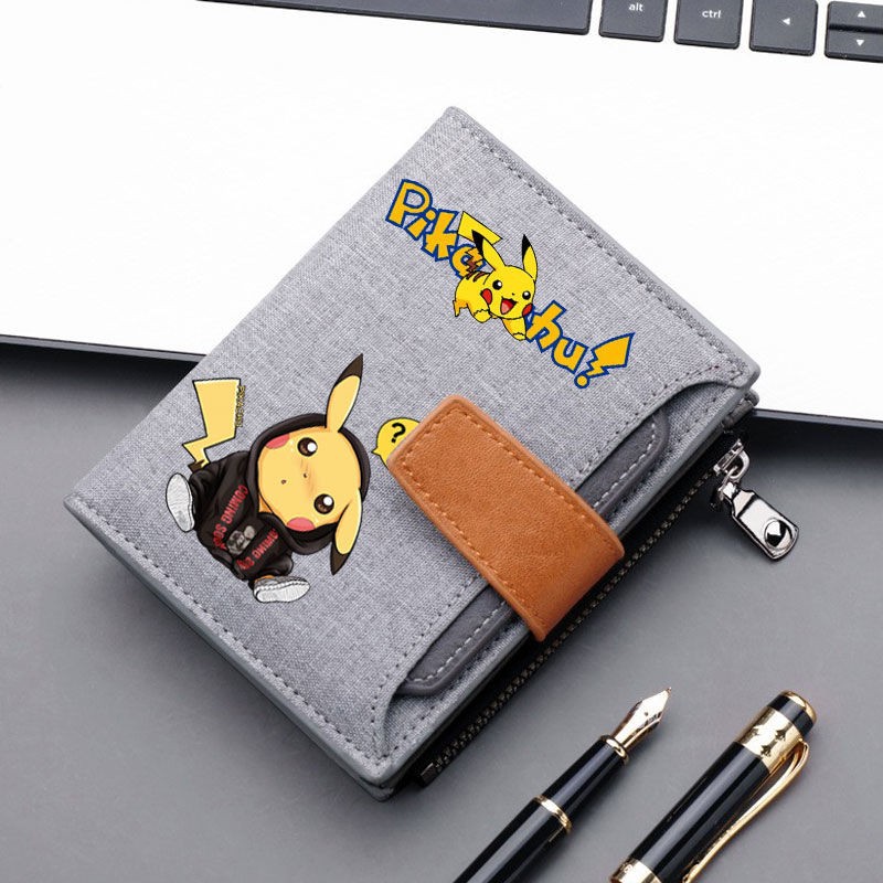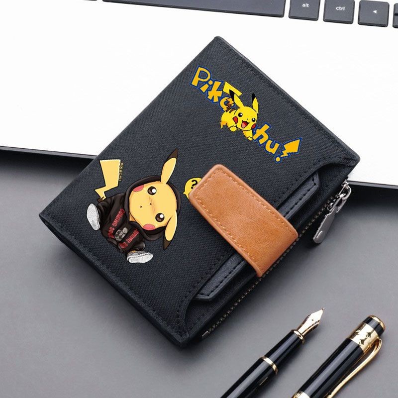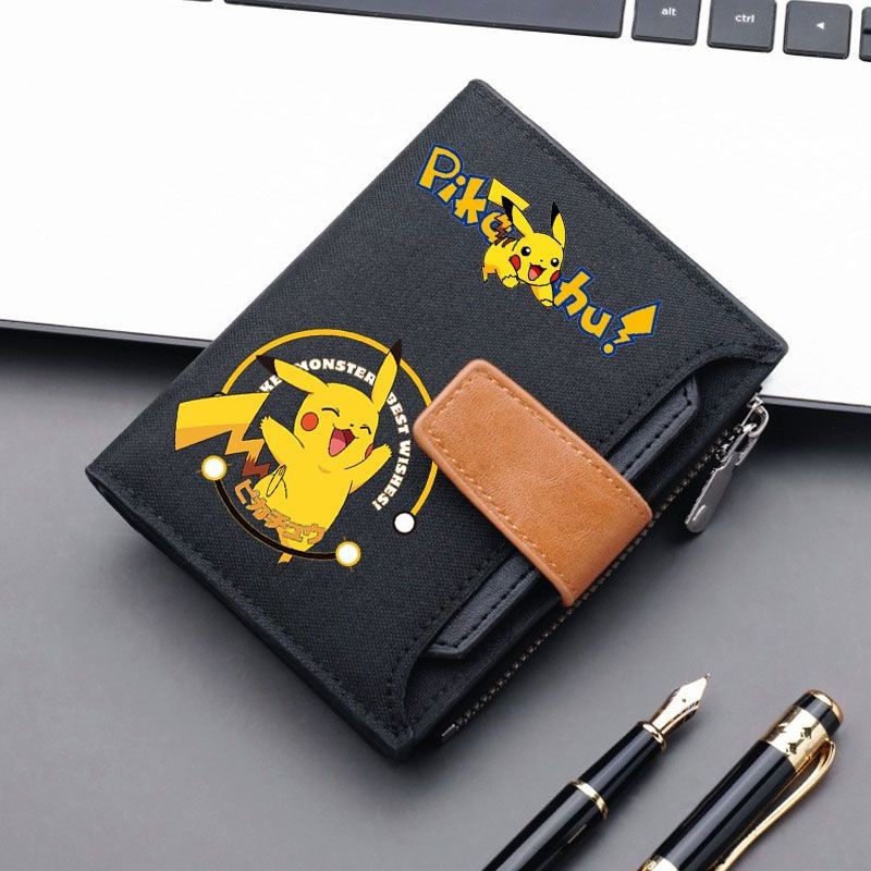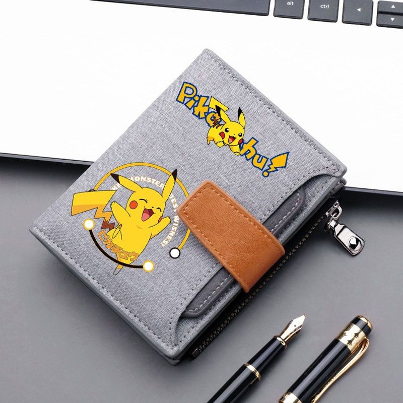 소년 소녀를위한 Pikachu 캔버스 지갑 짧은 버튼 가방 지퍼로 운전 면허증을위한 머니 클립 멀티 카드 슬롯