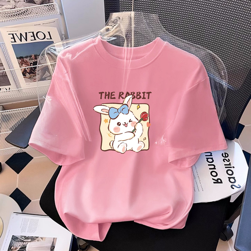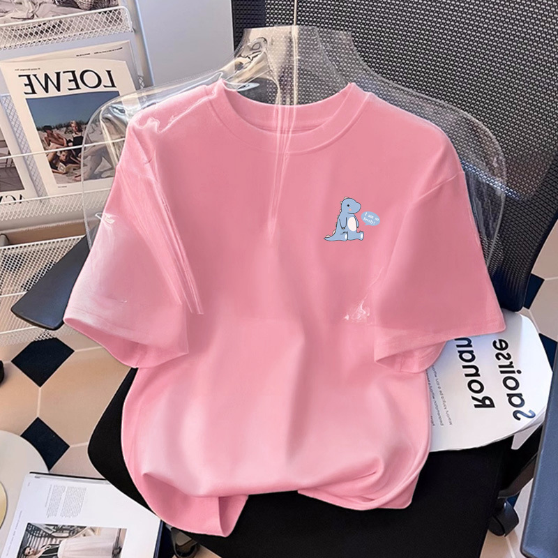 여성 아동복 핑크 코튼 반팔 티셔츠 여름 느슨한 큰 어린이 서양식 학생 아기의 반소매 최고 트렌디스토어 가기
