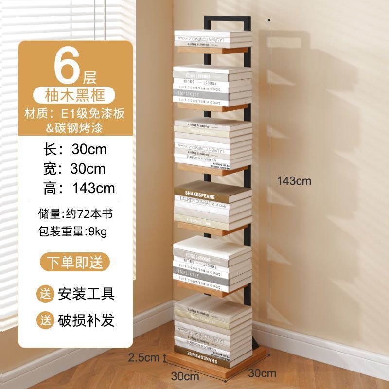 • 6단 보이지 않는 책장 블랙 프레임 우드 아트 스티치