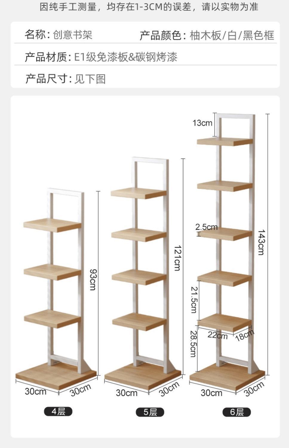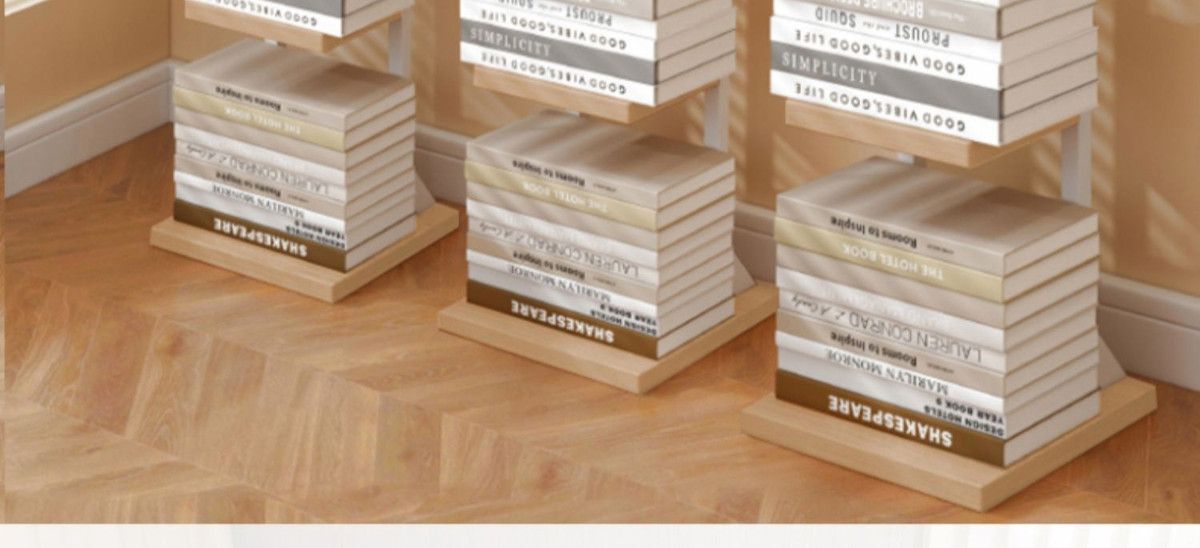 • 6단 보이지 않는 책장 화이트 프레임 우드 아트 스티치