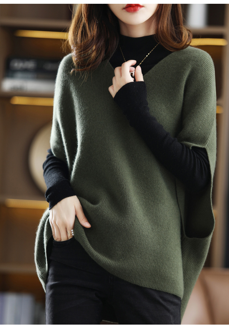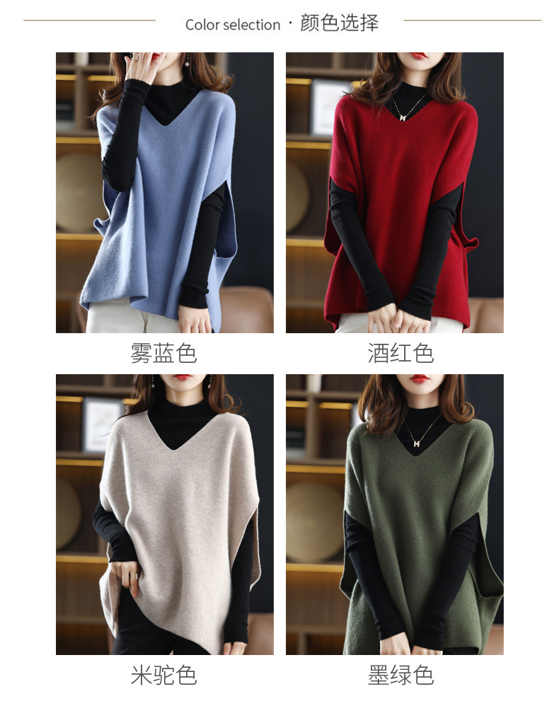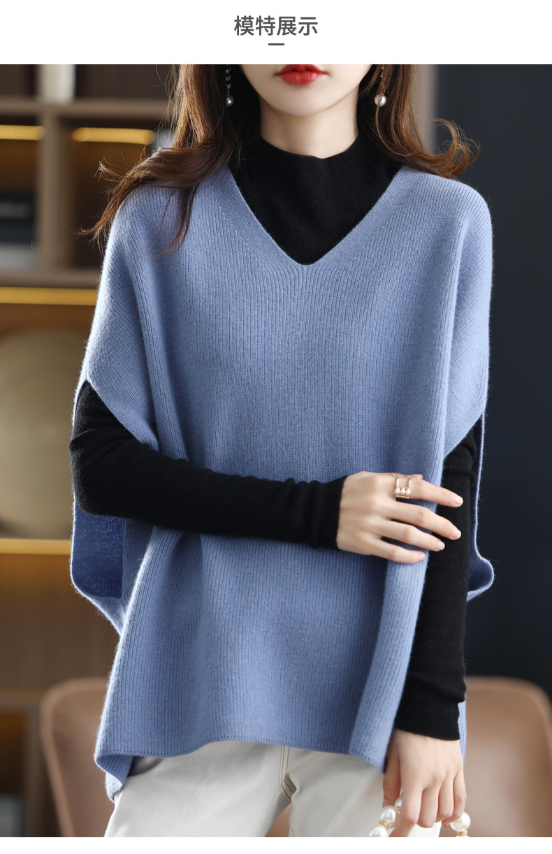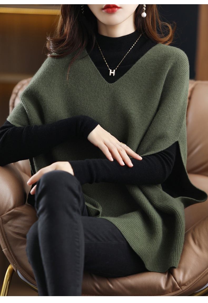 가을과 겨울의 새로운 스웨터 조끼 여성용 박쥐 슬리브 V 넥 웨이스트 코트 느슨한 외부 착용 게으른 스타일 풀오버 스웨터스토어 가기