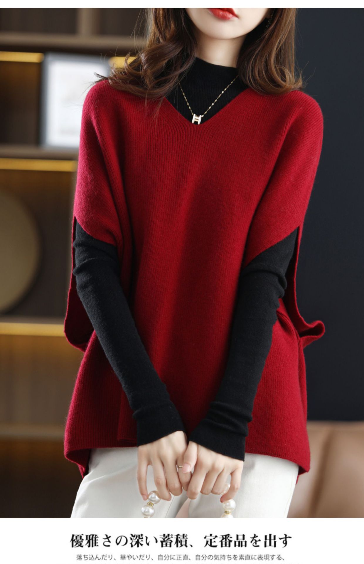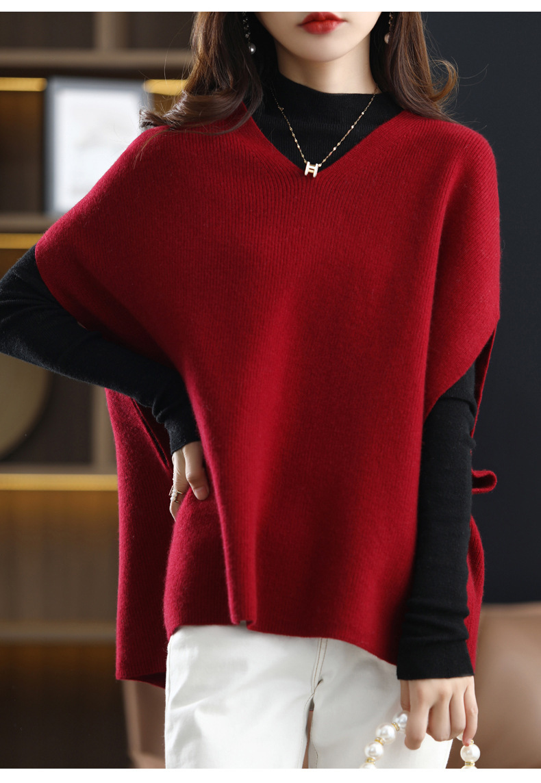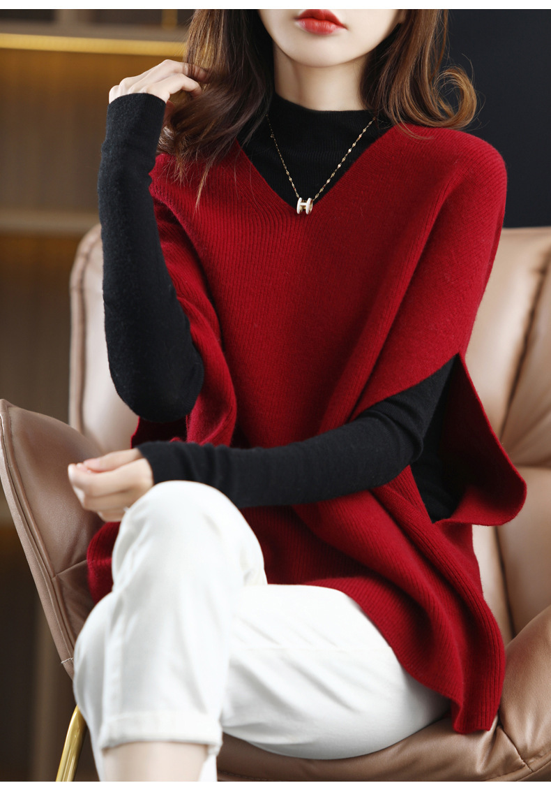 가을과 겨울의 새로운 스웨터 조끼 여성용 박쥐 슬리브 V 넥 웨이스트 코트 느슨한 외부 착용 게으른 스타일 풀오버 스웨터스토어 가기