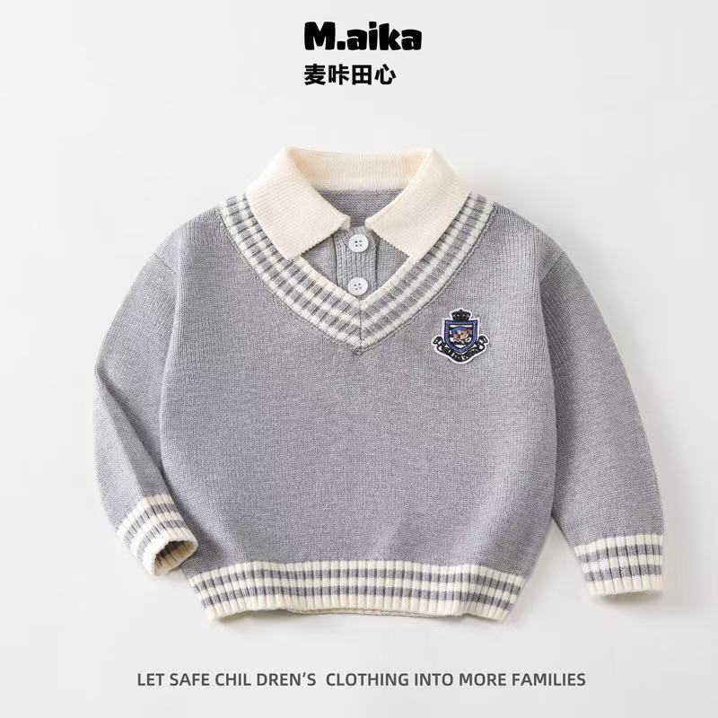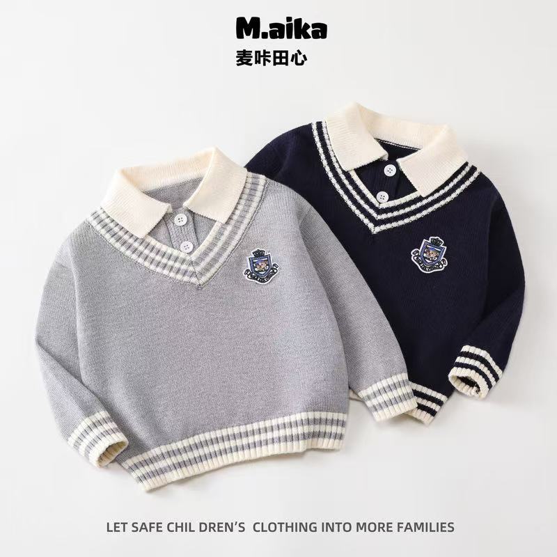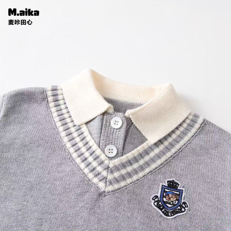 403 소년 두꺼운 가을과 겨울 가짜 투피스 새로운 스타일 셔츠 칼라 잘 생긴 소년 올매치 트렌디 스웨터스토어 가기
