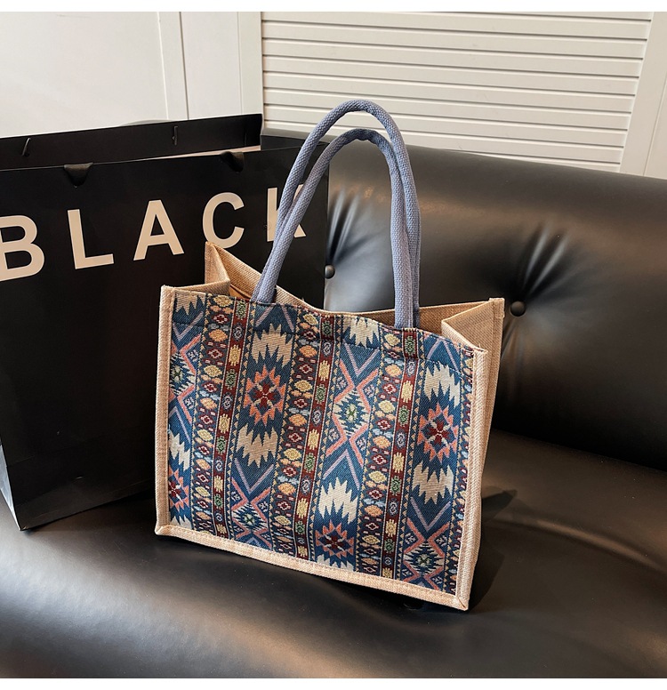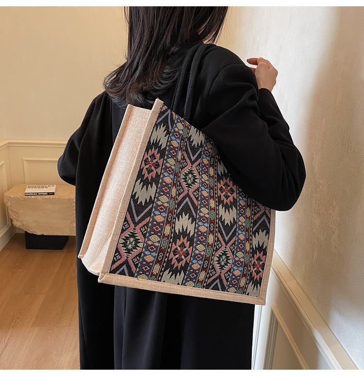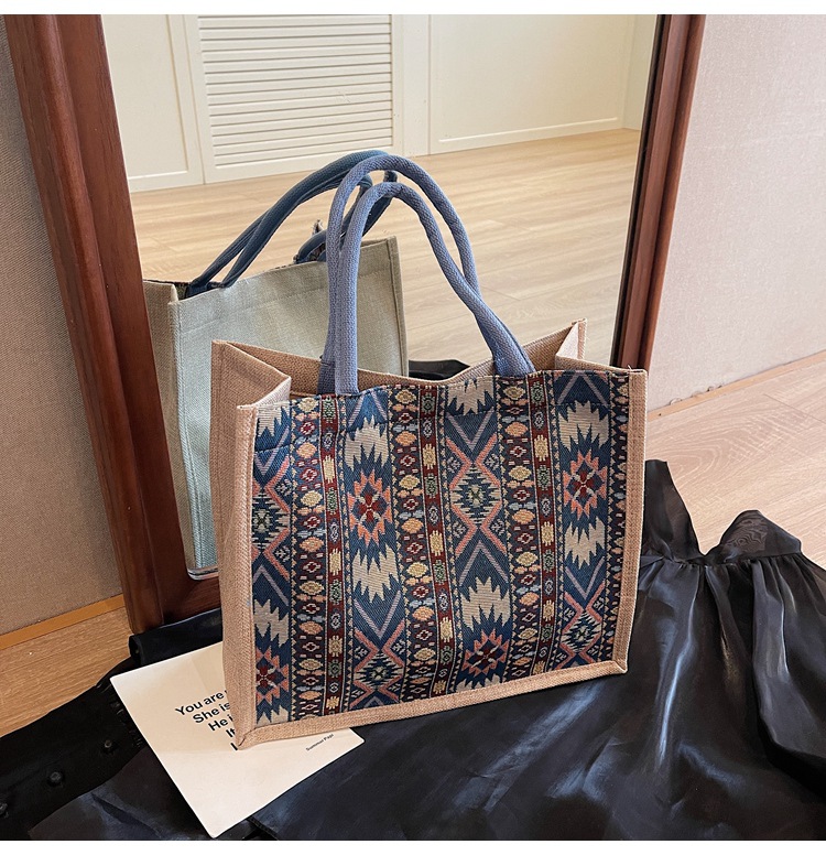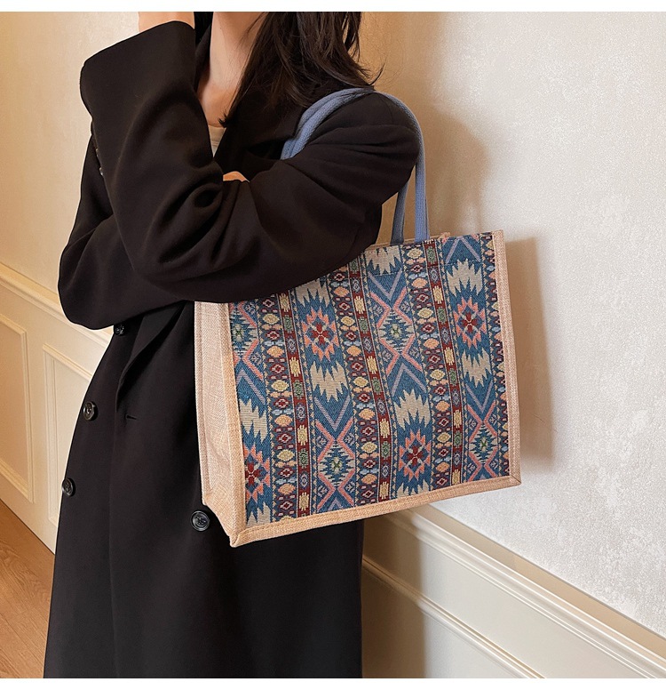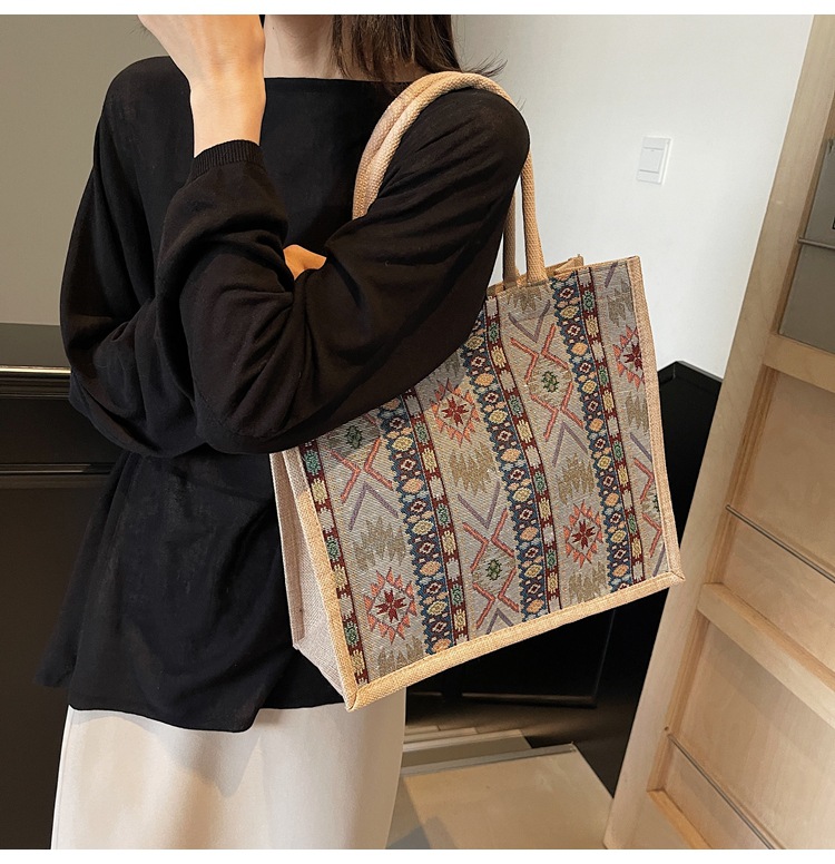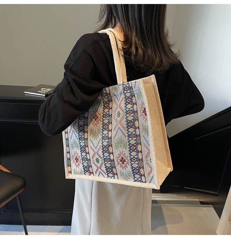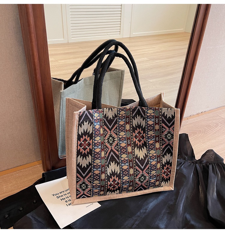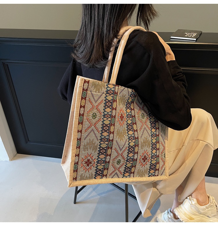 대용량 리넨 토트 백 2025 새로운 손으로 짠 미라 가방 여성 패션 통근 어깨 핸드백