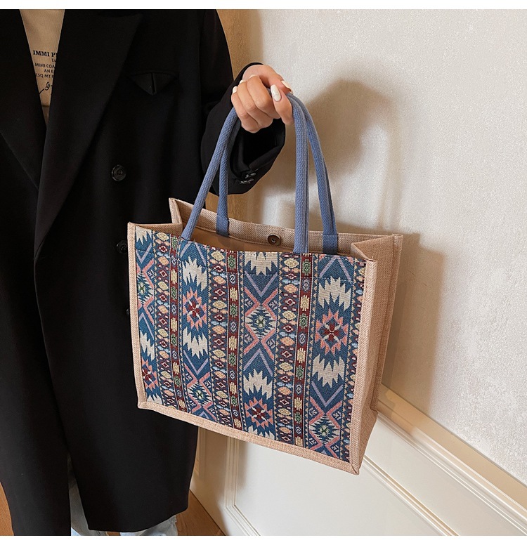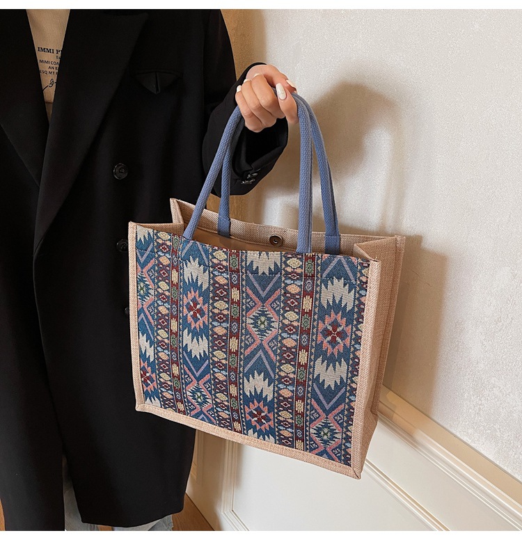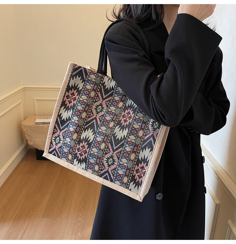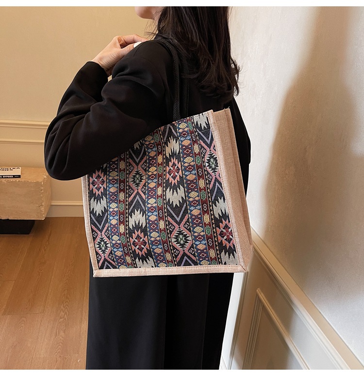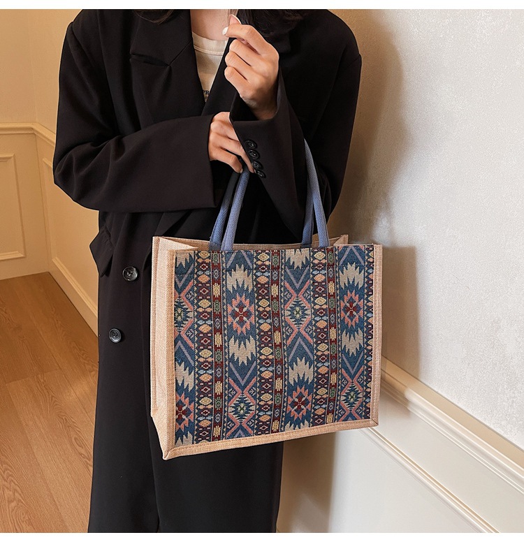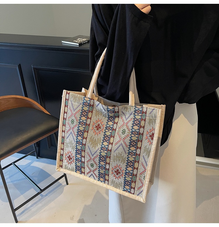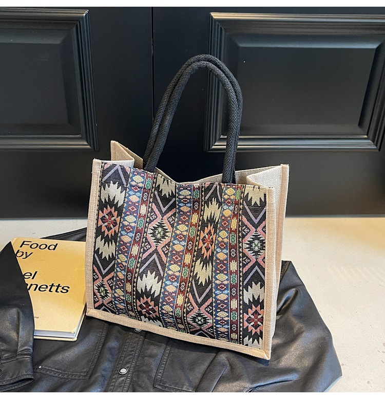 대용량 리넨 토트 백 2025 새로운 손으로 짠 미라 가방 여성 패션 통근 어깨 핸드백