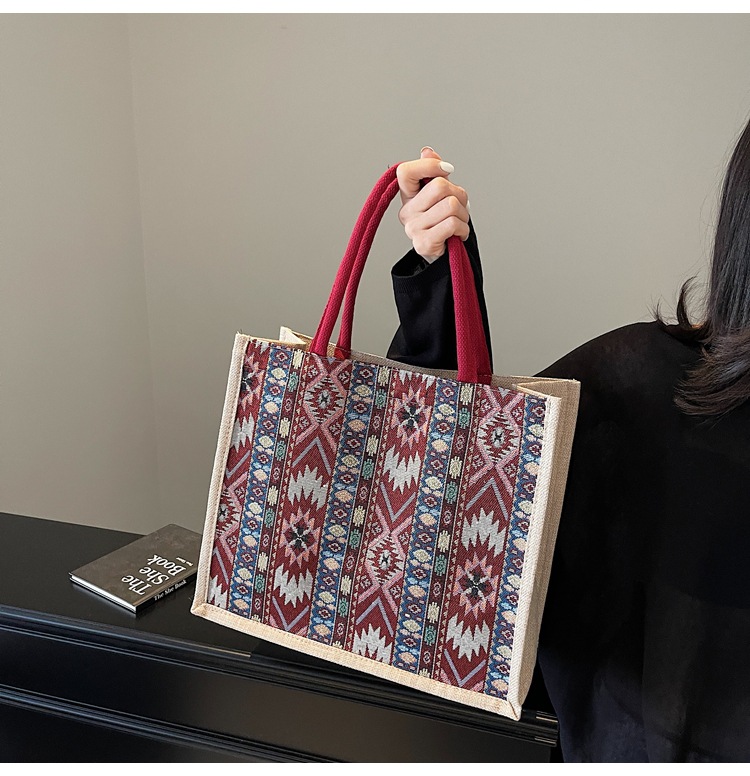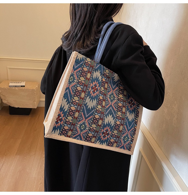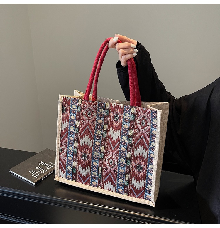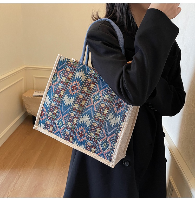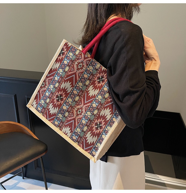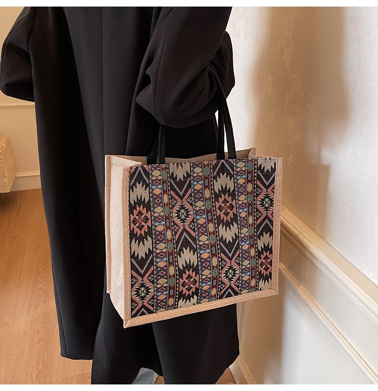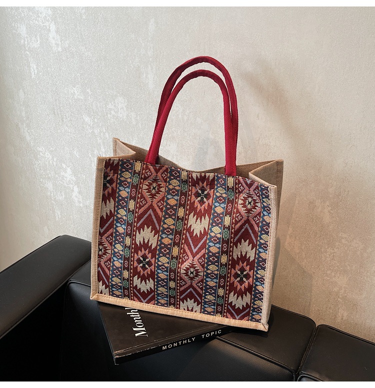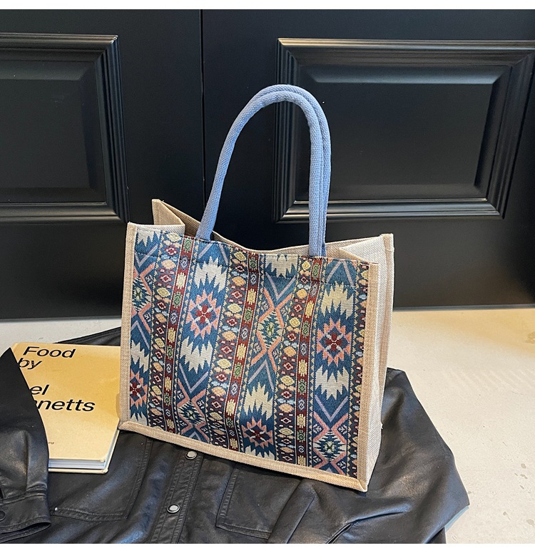 대용량 리넨 토트 백 2025 새로운 손으로 짠 미라 가방 여성 패션 통근 어깨 핸드백