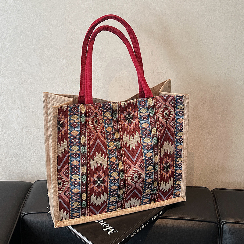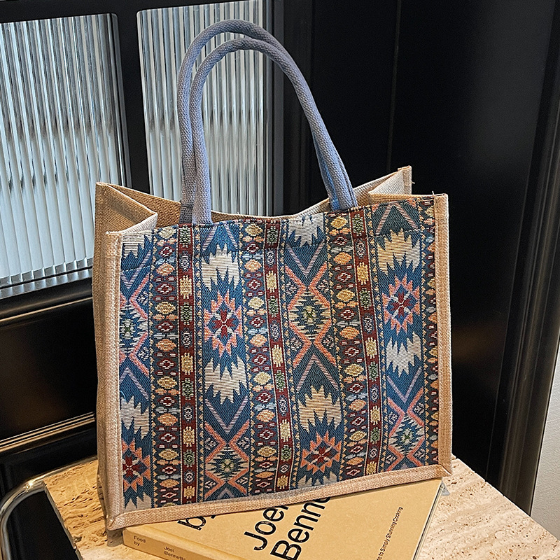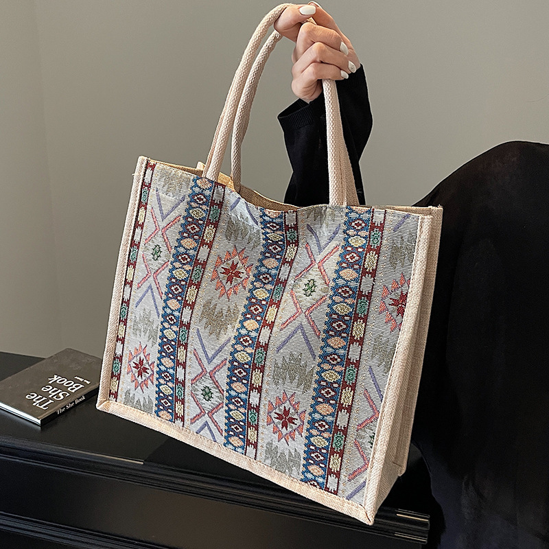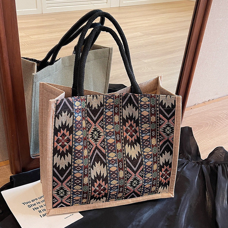 대용량 리넨 토트 백 2025 새로운 손으로 짠 미라 가방 여성 패션 통근 어깨 핸드백스토어 가기