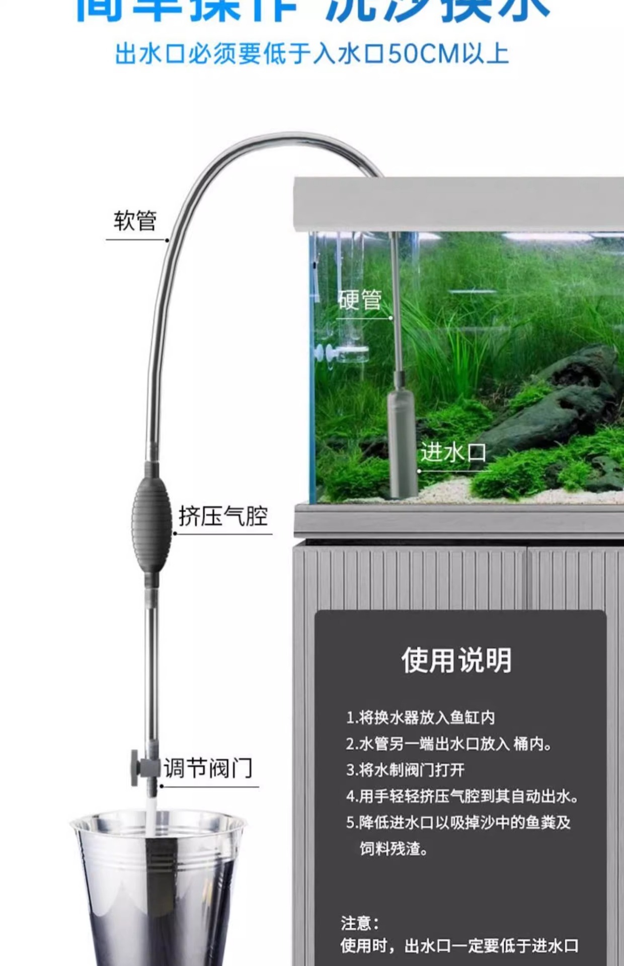 어항 물 변경 유물 하수 모래 세탁기 수동 사이펀 펌프 흡입 화장실 흡입 파이프 게으른 사람 청소 도구스토어 가기