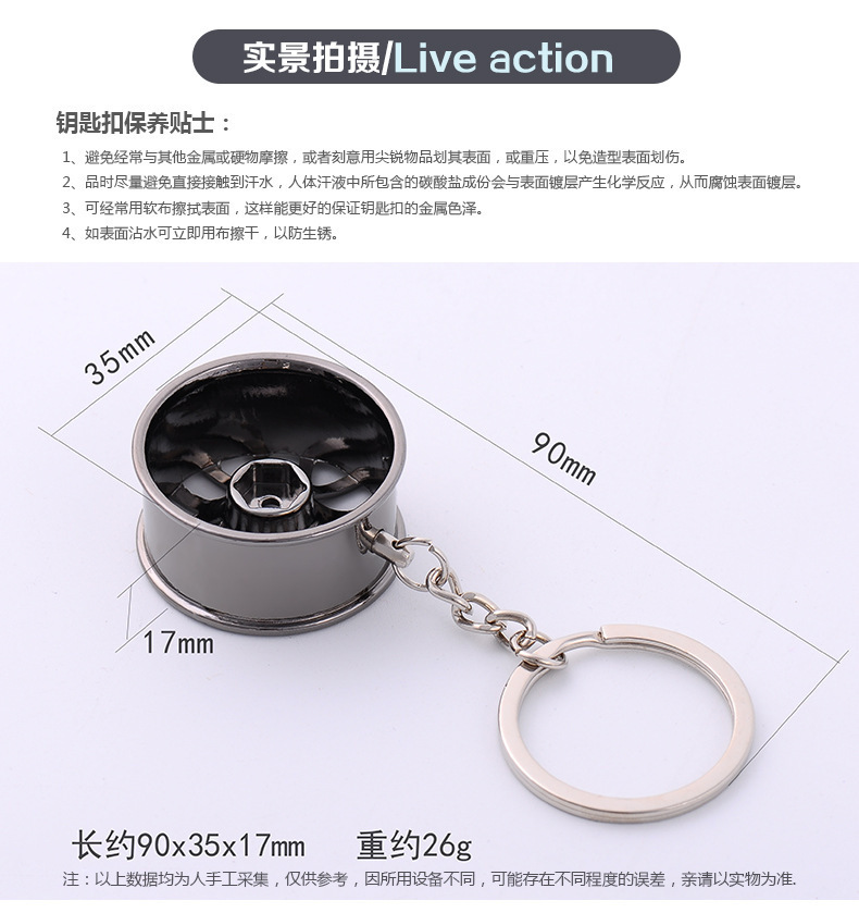 크리에이티브 선물 자동차 수정 휠 금속 키 체인 터보 차저 광고 허리 걸이 키 링 체인 링크 펜던트