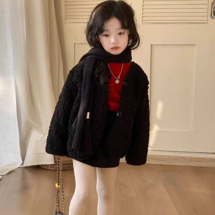소녀 2024 겨울 새로운 한국 스타일 코트 마오 마오 두꺼운 달콤한 탑 솔리드 컬러 원피스 부드러운 외국 스타일 탑스토어 가기