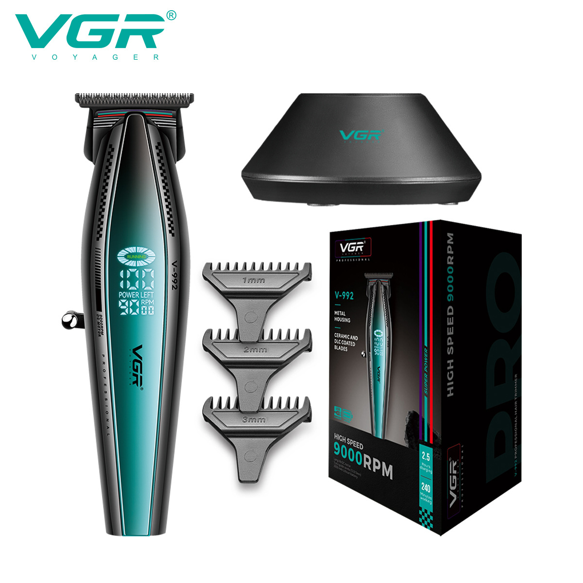 VGR992 기본 충전 전기 조각 디지털 디스플레이 전기 클리퍼가있는 국경 간 새로운 남성 헤어 클리퍼 미용실