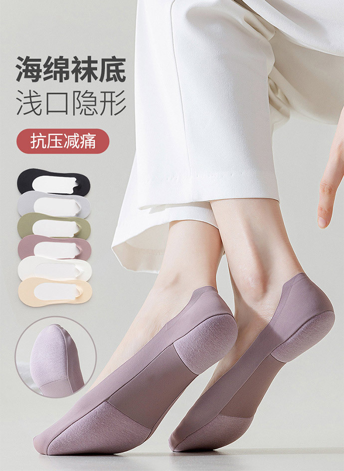 스펀지 바닥 두꺼운 에어 쿠션 여성 보트 양말 아이스 실크 얕은 양말 여름 작은 가죽 신발 보이지 않는 양말 얇은 미끄럼 방지 힐