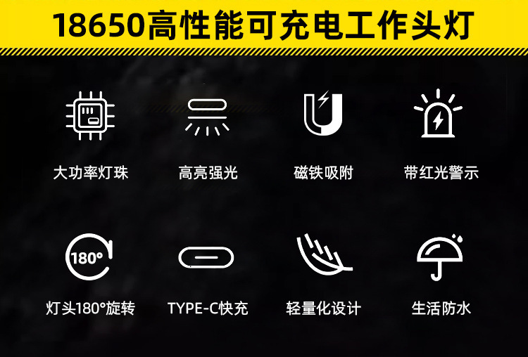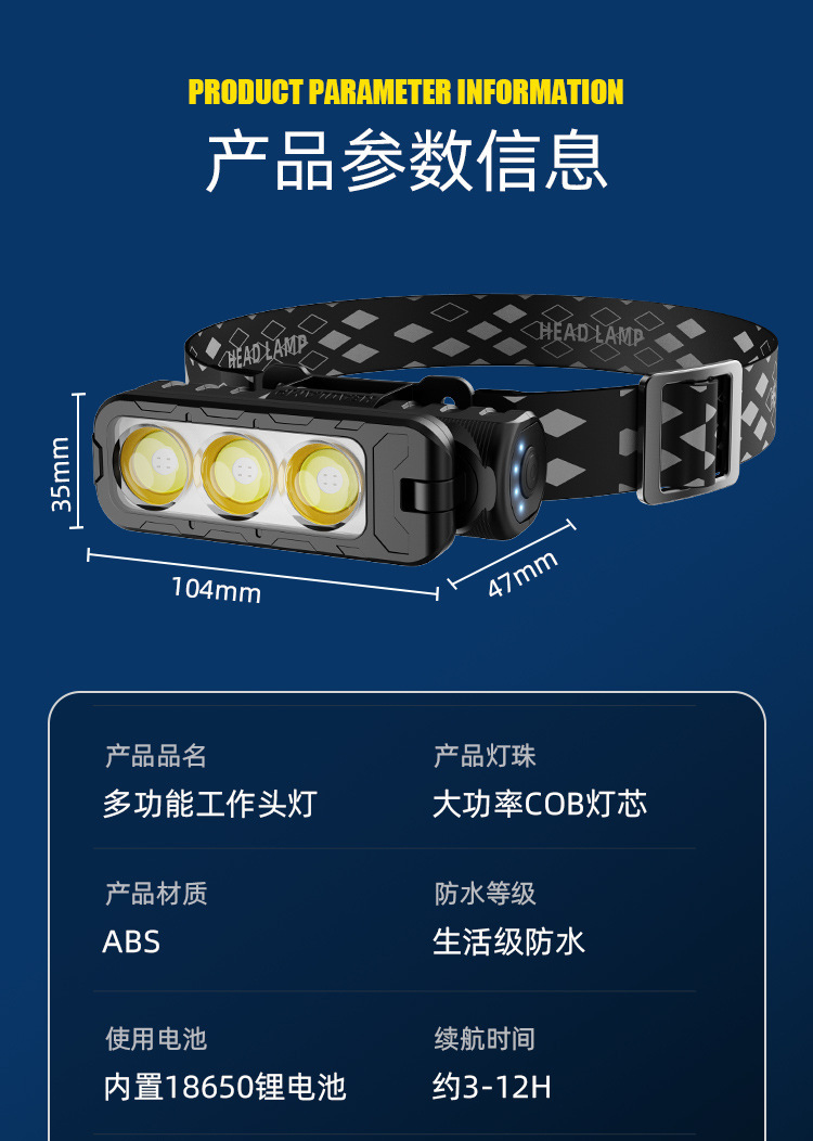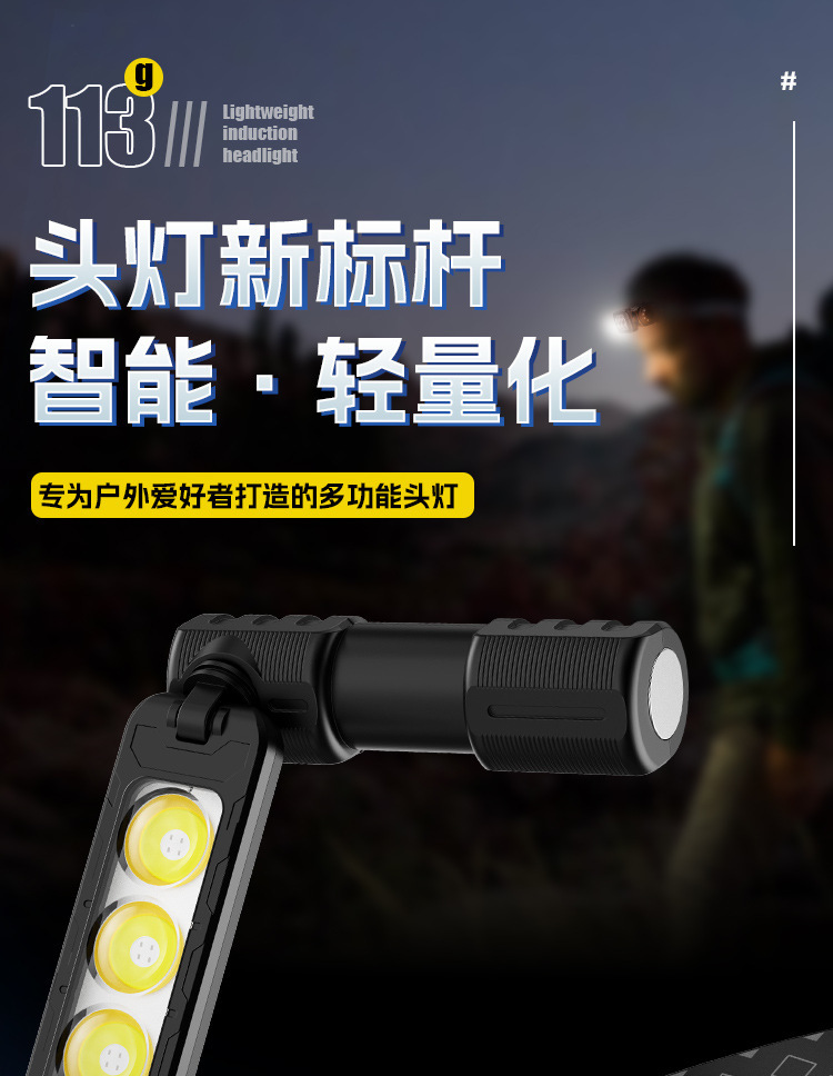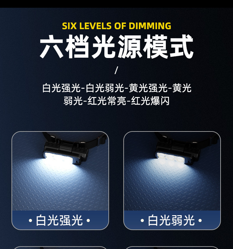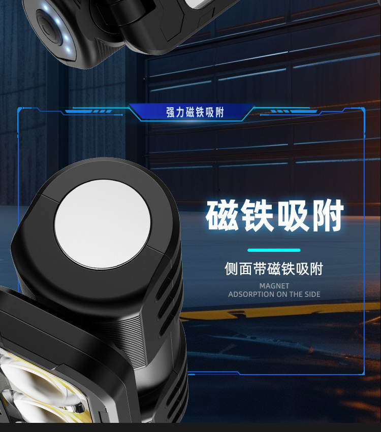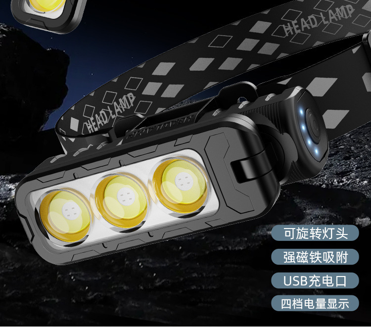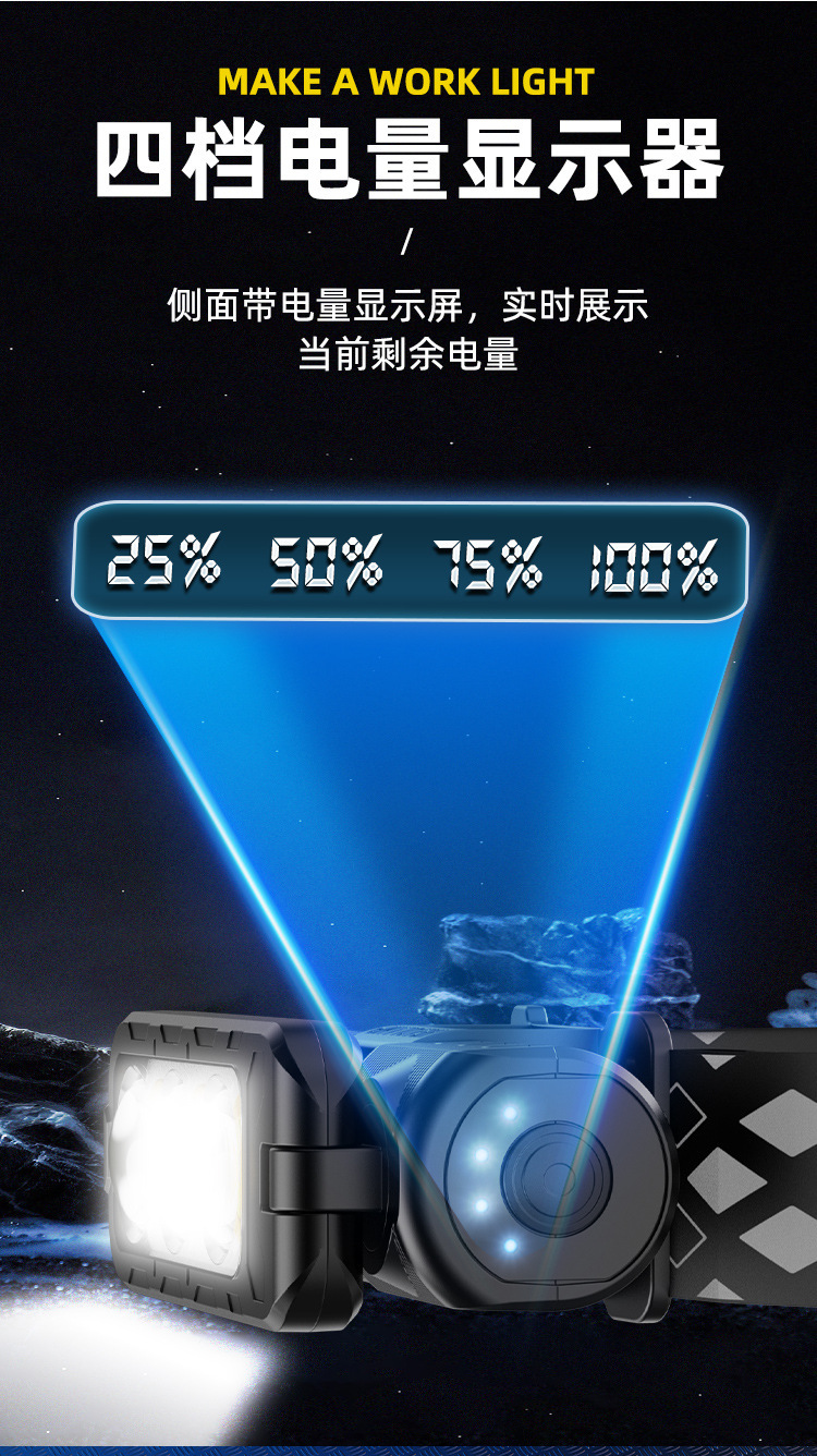 국경 강한 빛 LED 헤드 라이트 자기 흡수 전기 디스플레이 회전 조정 야외 작업 빛 모험 경고 다기능 헤드 라이트