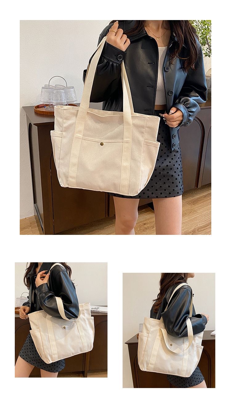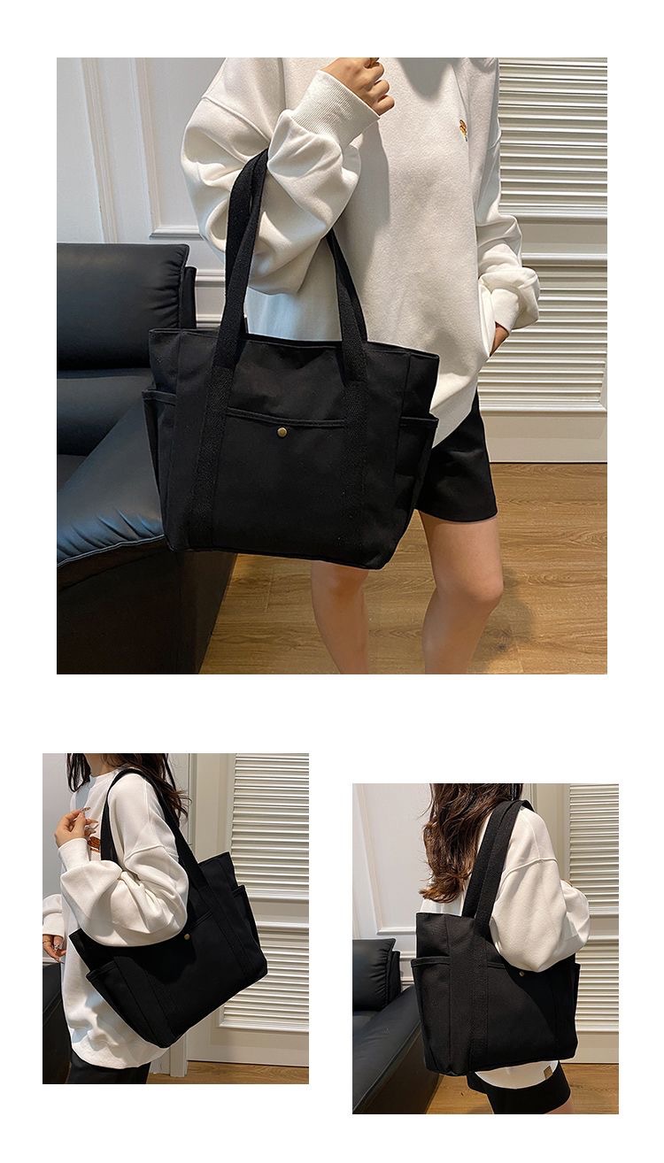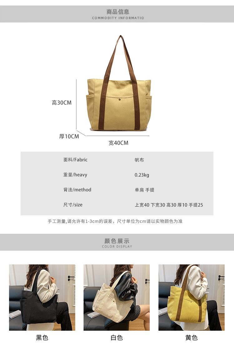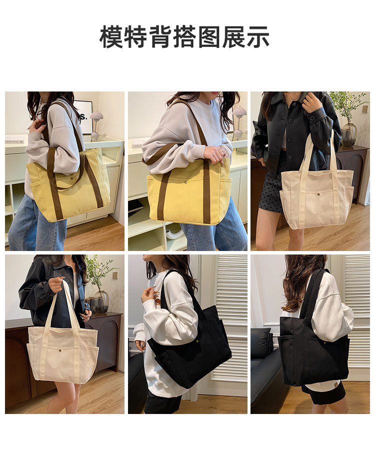작업 및 외출 용 대용량 토트 캔버스 가방 고 가치 통근 올 매치 아트 학생 도서 원 숄더 천 가방