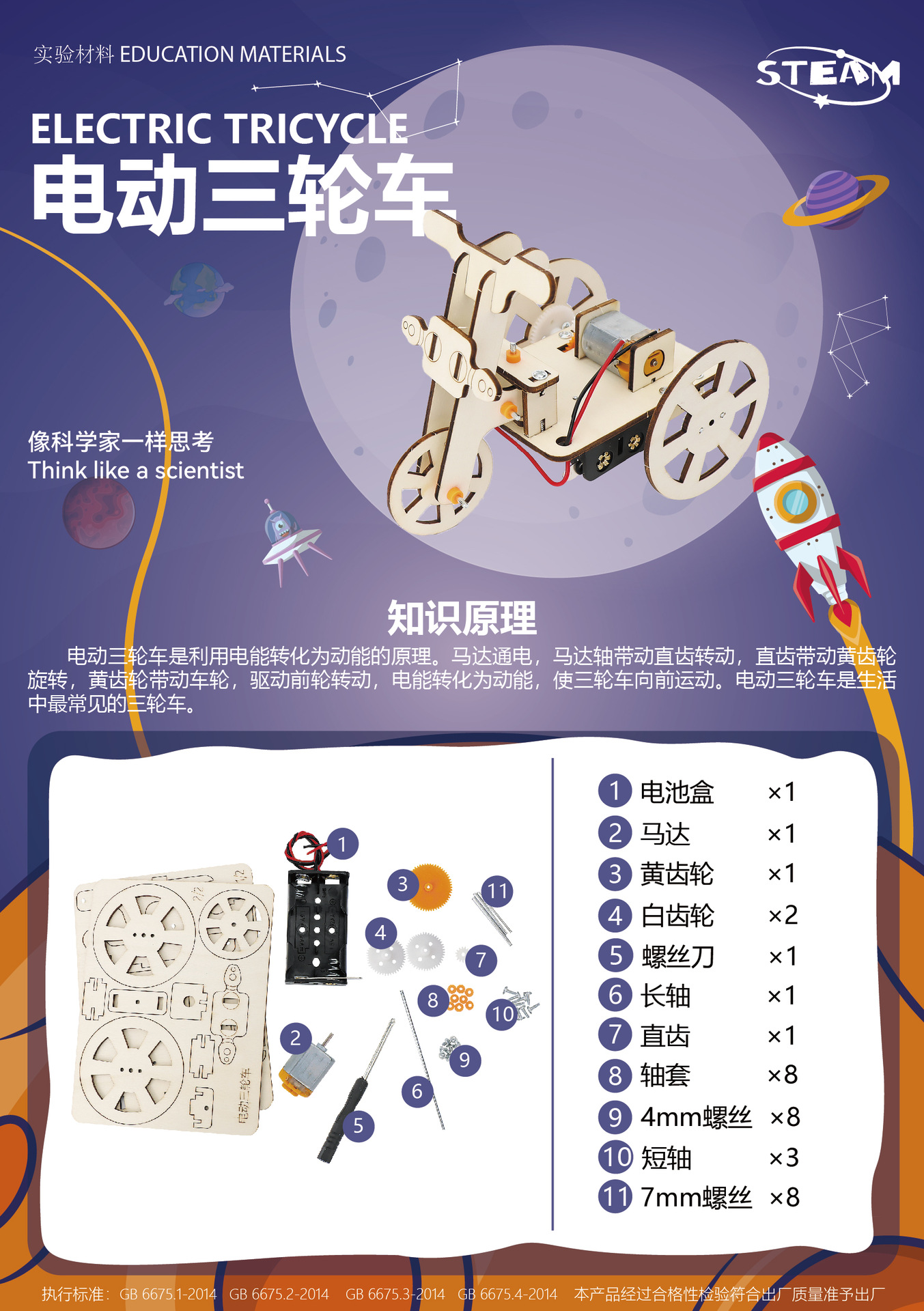 전기 삼륜차 기술 발명 DIY 생산 어린이 학생 과학 증기 물리학 실험 유익한 지능 장난감스토어 가기