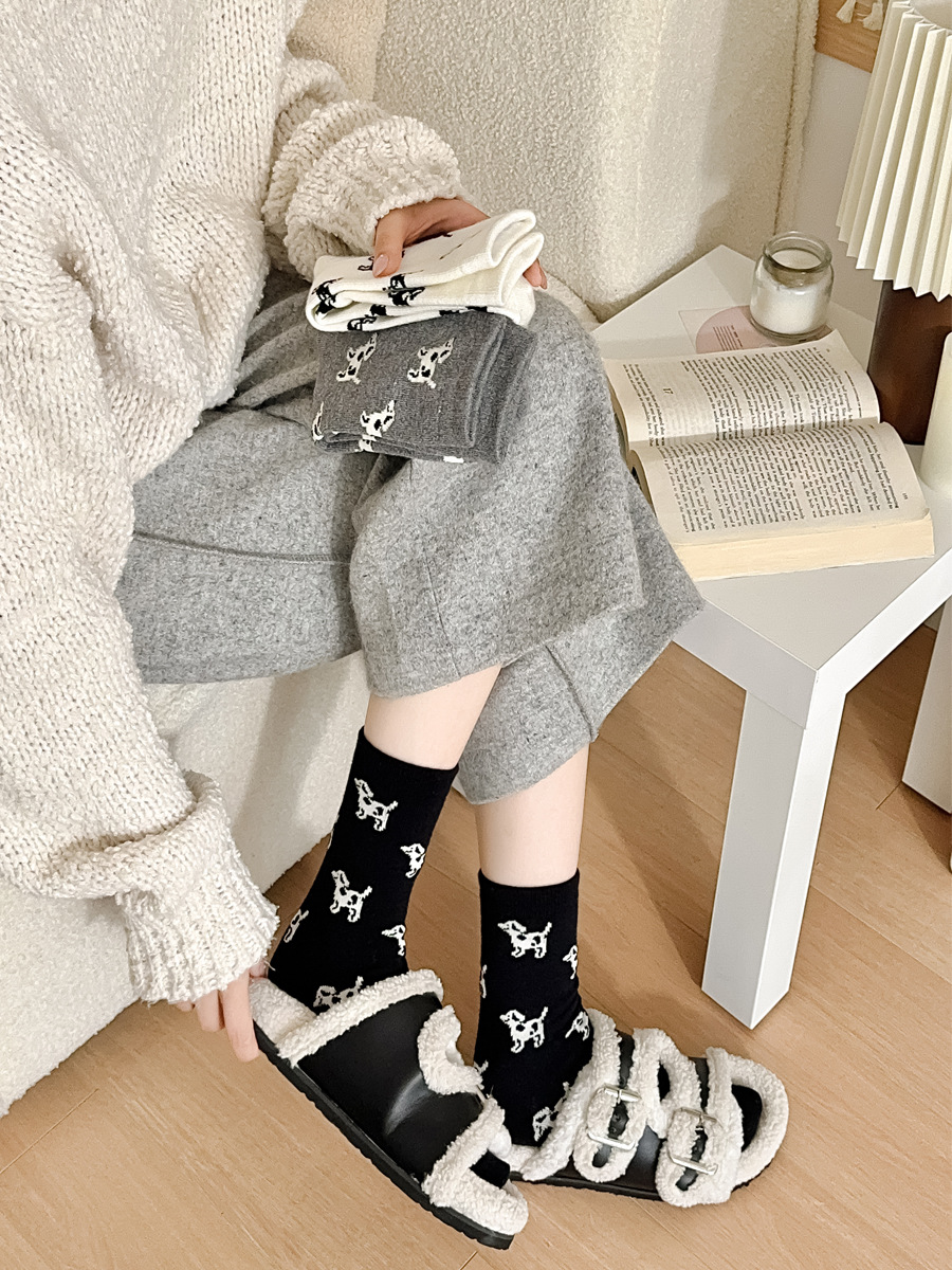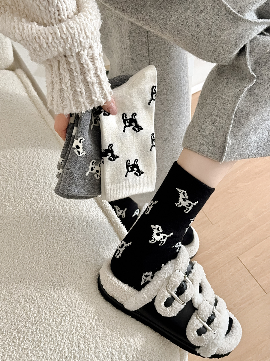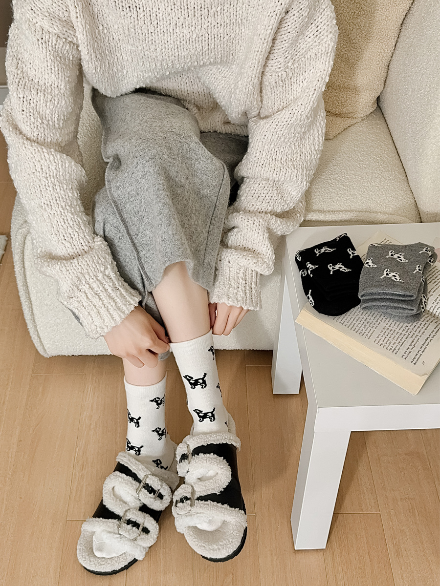 한국 스타일 가을과 겨울 간단한 단색 스타일 만능 강아지 TB 스타일 영국 학술 스타일 Ins 두꺼운 미드 양말 스택 양말스토어 가기