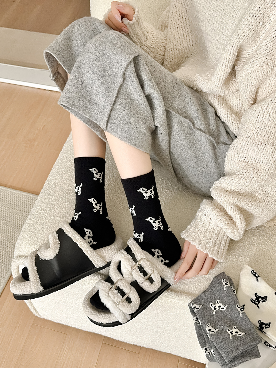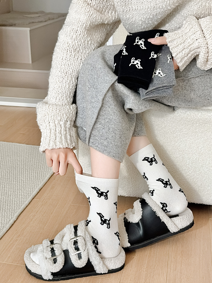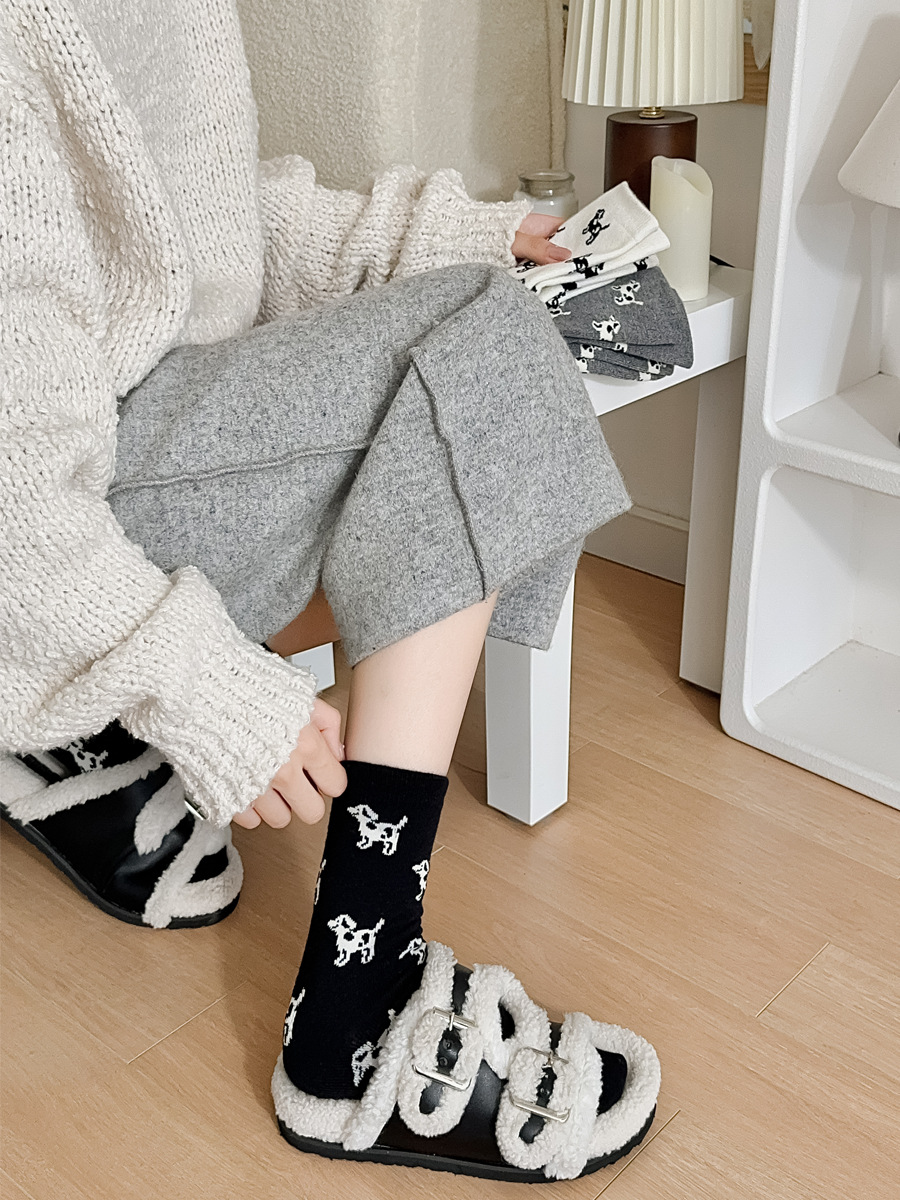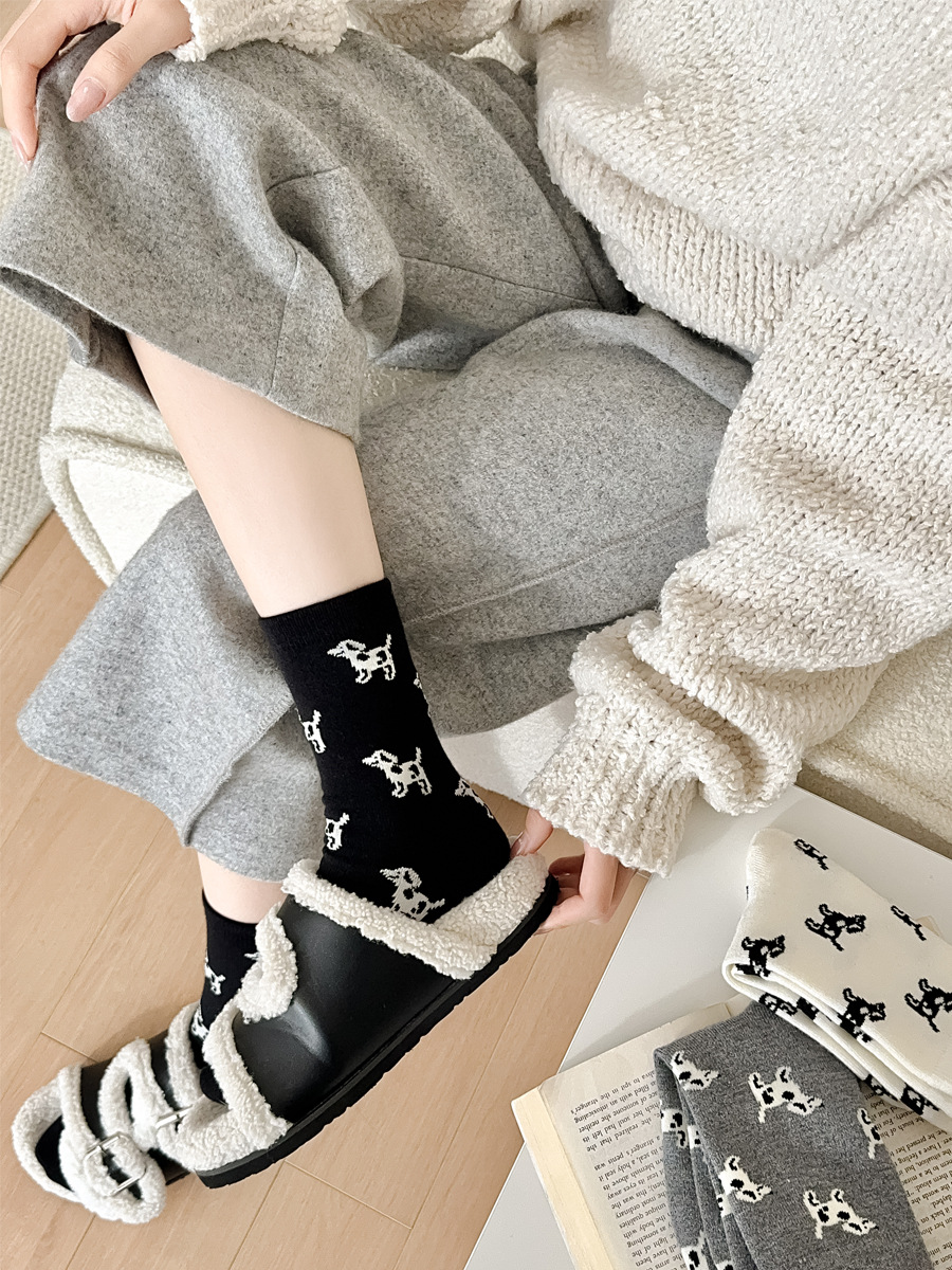 한국 스타일 가을과 겨울 간단한 단색 스타일 만능 강아지 TB 스타일 영국 학술 스타일 Ins 두꺼운 미드 양말 스택 양말스토어 가기