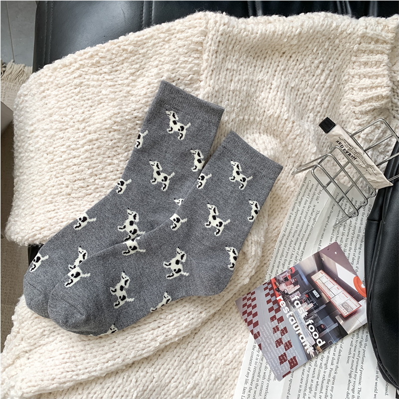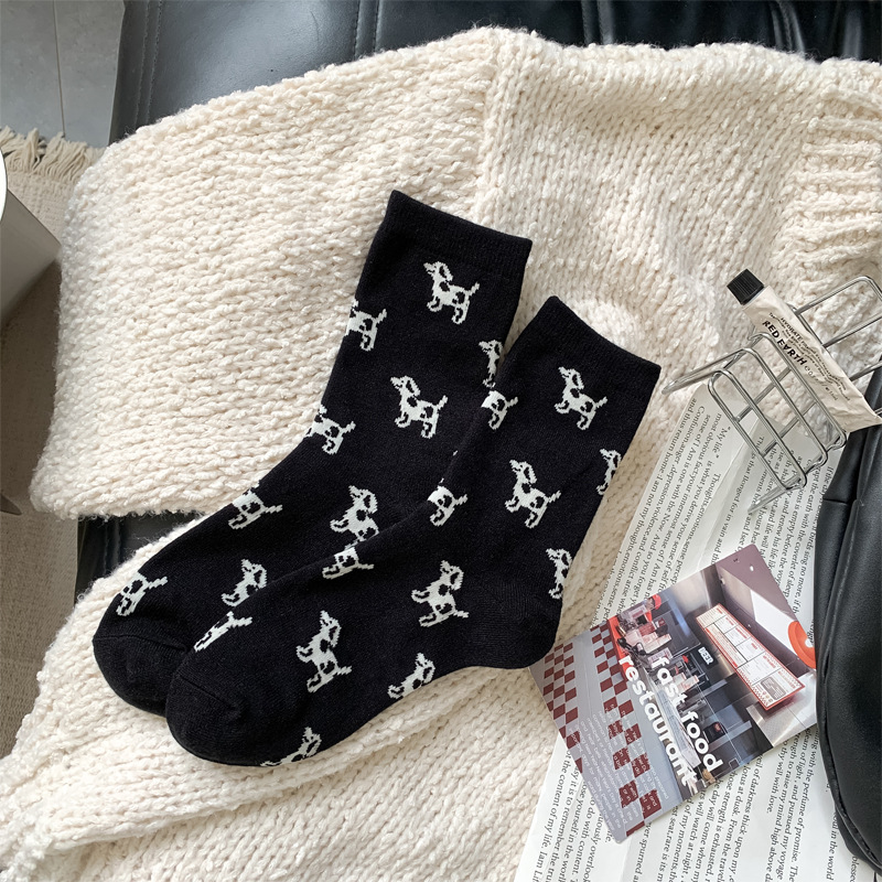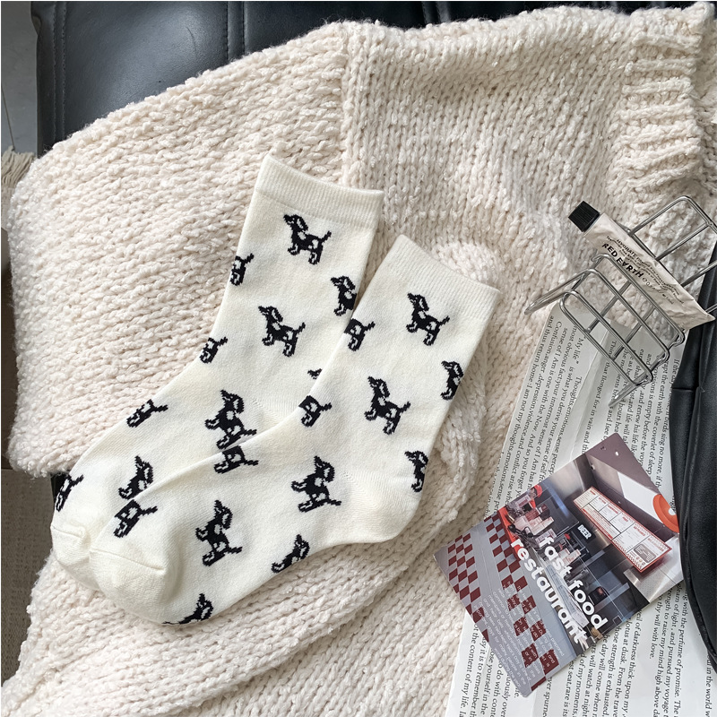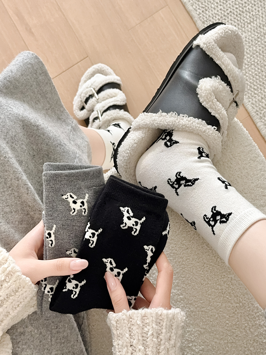 한국 스타일 가을과 겨울 간단한 단색 스타일 만능 강아지 TB 스타일 영국 학술 스타일 Ins 두꺼운 미드 양말 스택 양말