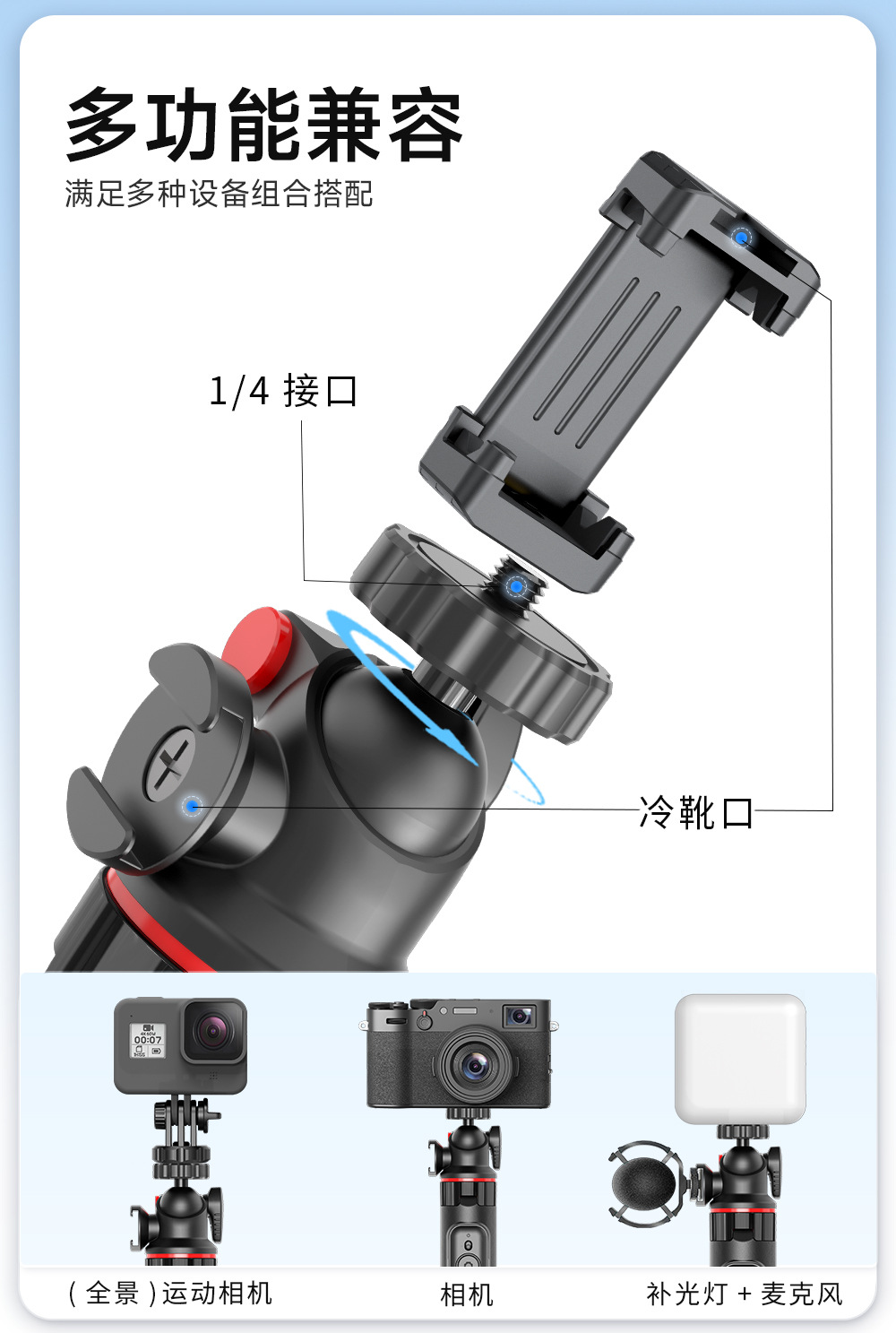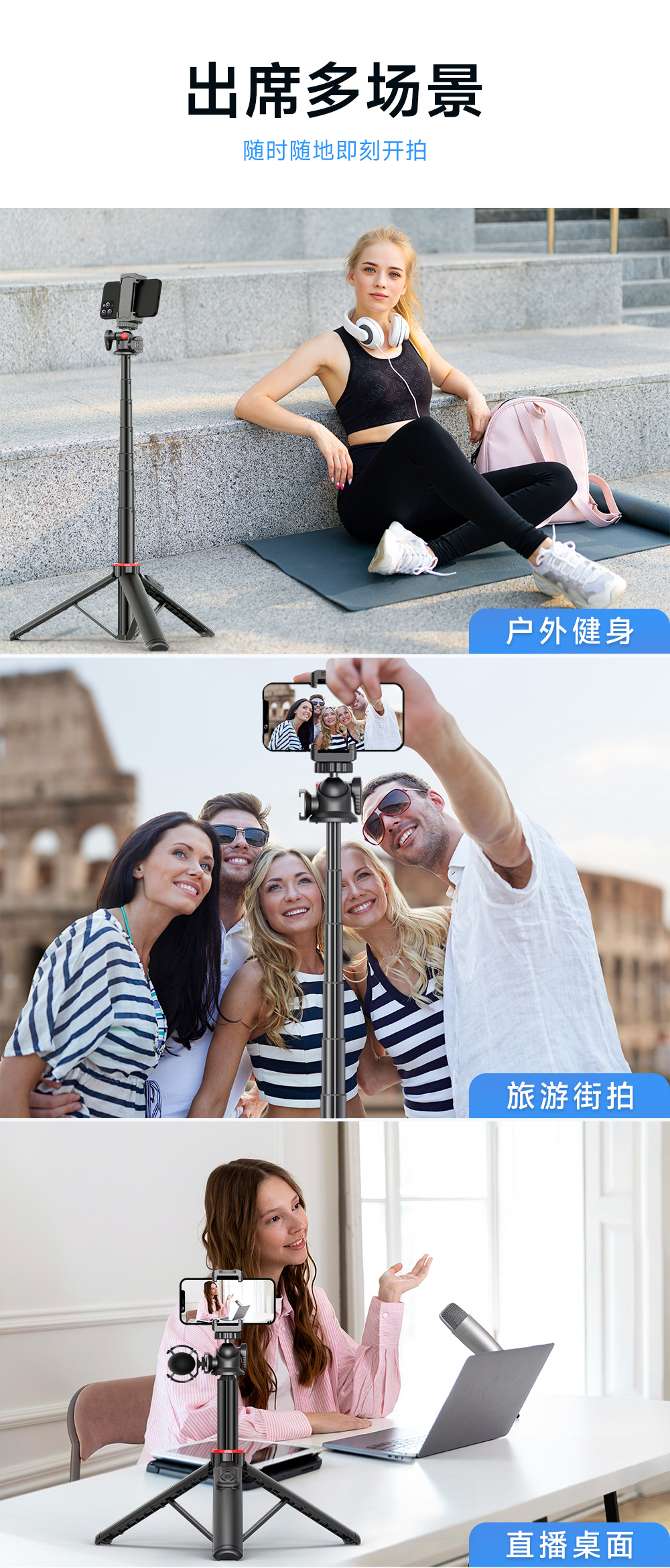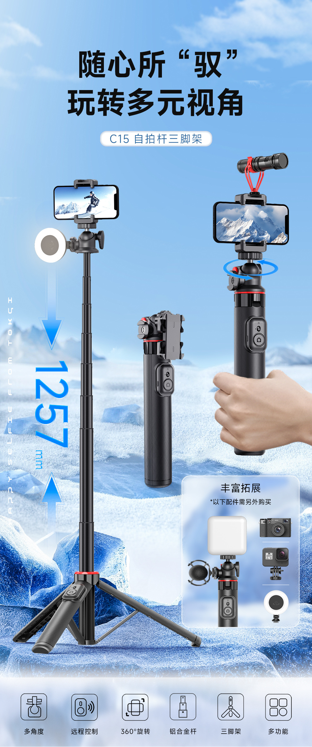 원래 맞춤형 셀카봉 C15 다기능 확장 포트 접이식 휴대폰 플로어 스탠드 삼각대 라이브 방송 스탠드