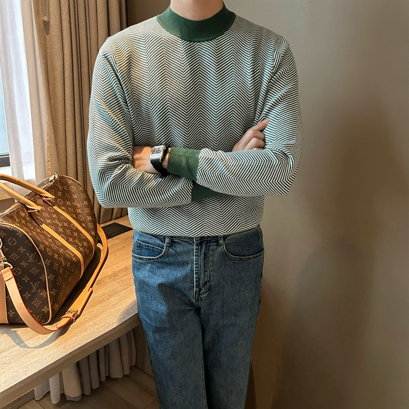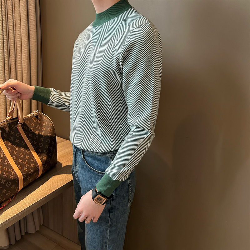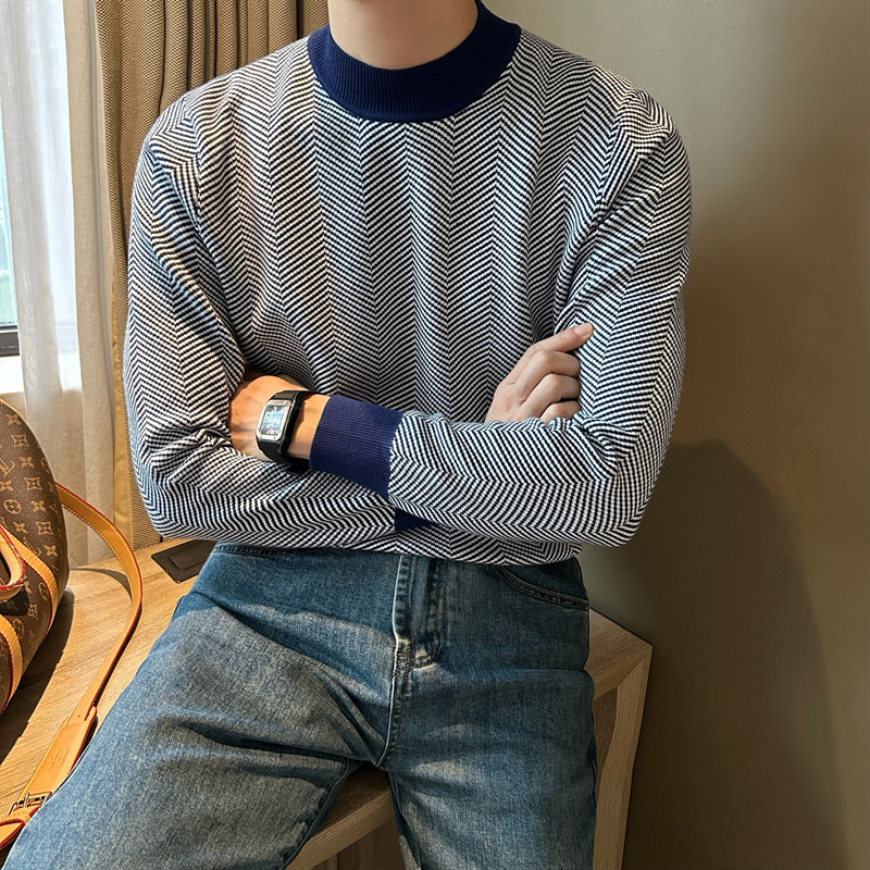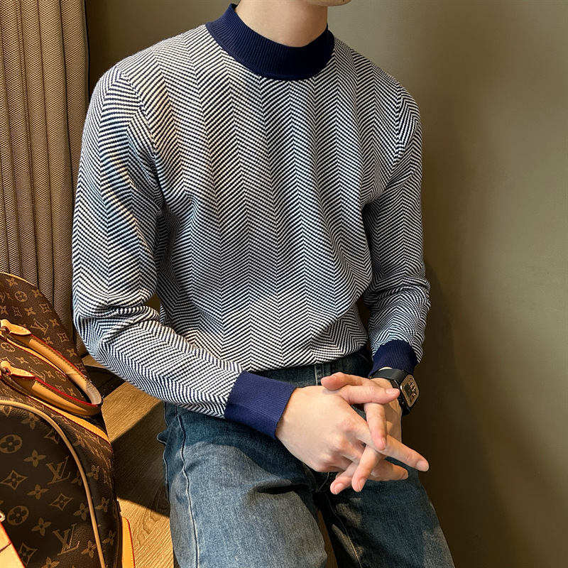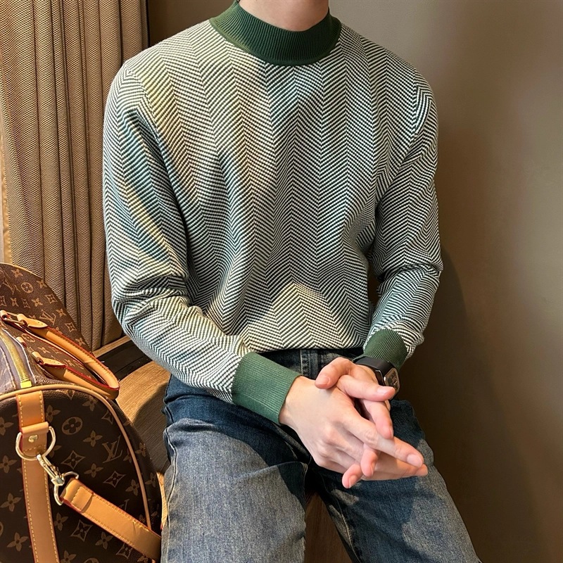 Piushuai 꽃 스웨터 남성용 미드 칼라 다용도 스웨터 2023 가을, 겨울 신작 남성용 하이 엔드 이너 레이어링 셔츠스토어 가기