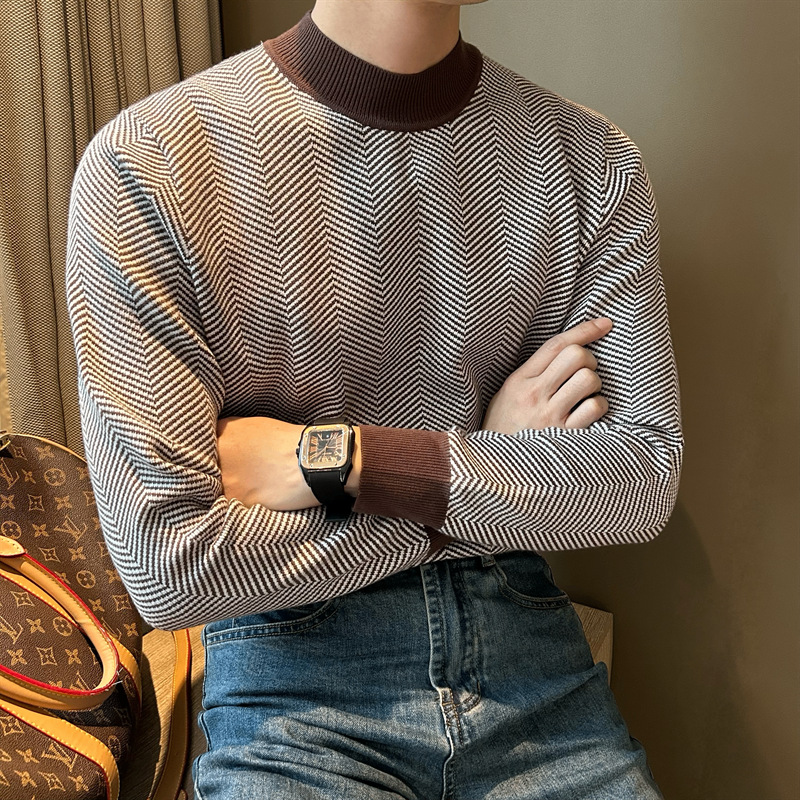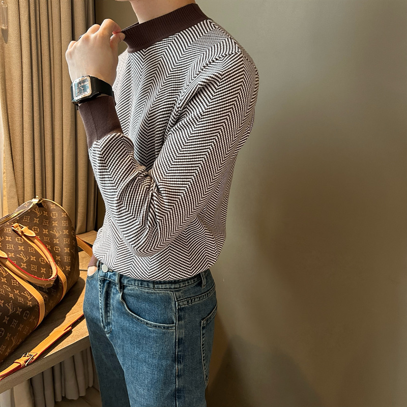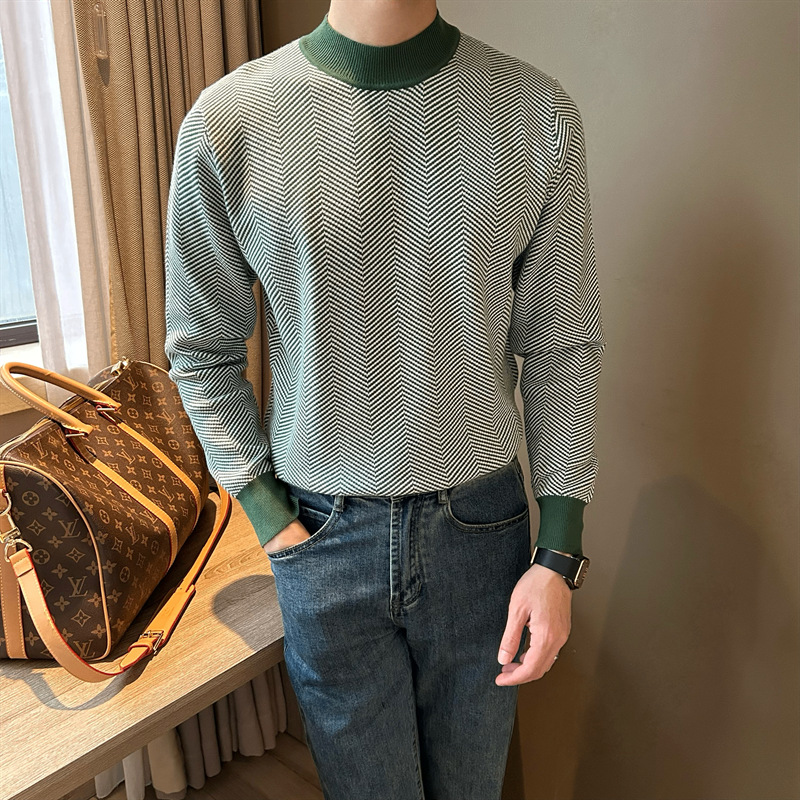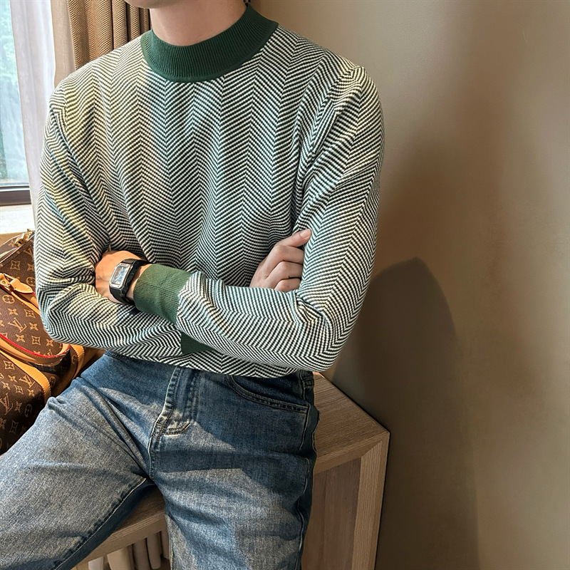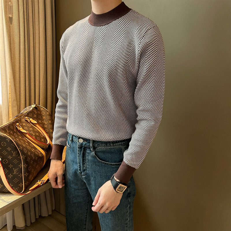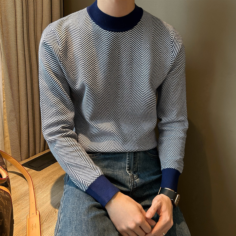 Piushuai 꽃 스웨터 남성용 미드 칼라 다용도 스웨터 2023 가을, 겨울 신작 남성용 하이 엔드 이너 레이어링 셔츠스토어 가기