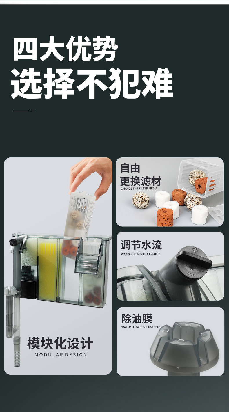 어항 필터 벽걸이형 필터통 외부 소형 3-in-1 외부형 정수 필터 순환 시스템