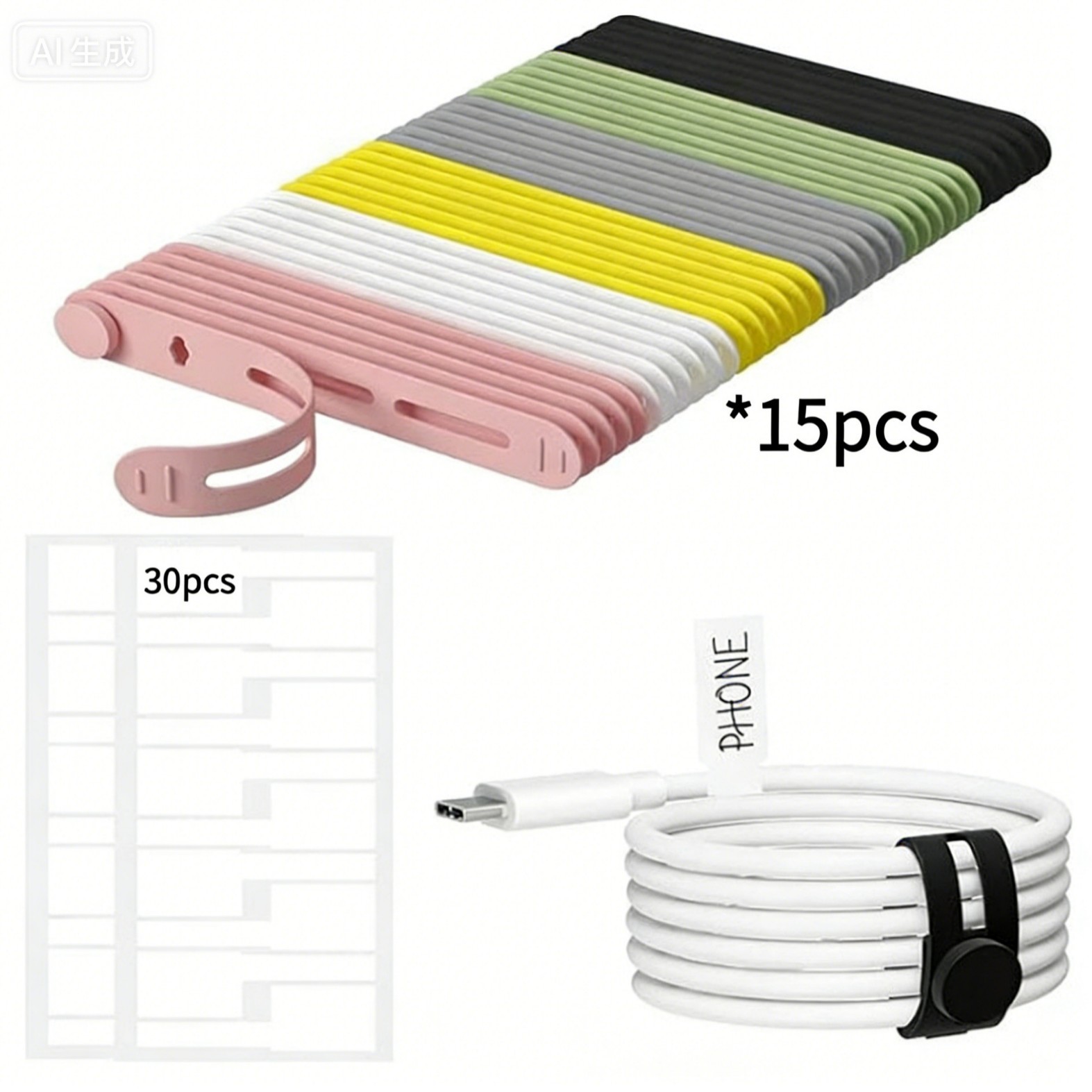 30件套硅胶理线器数据线耳机线充电线收纳多功能绑带60个空白标签贴