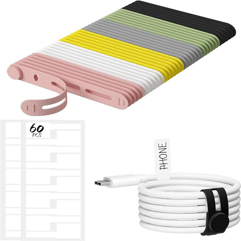 실리콘 와이어 주최자 데이터 케이블 이어폰 케이블 충전 케이블 스토리지 다기능 스트랩 60 빈 라벨 30 조각 세트스토어 가기