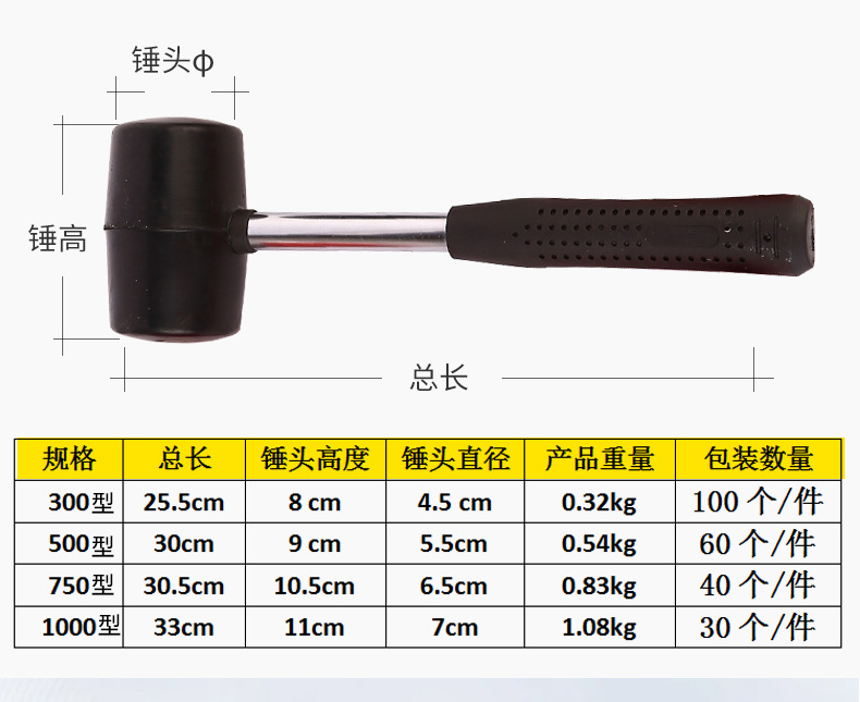 공장 도매 고무 망치 스틸 파이프 핸들 고무 망치 바닥 타일 특수 해머 바닥 장착 해머 고무 망치