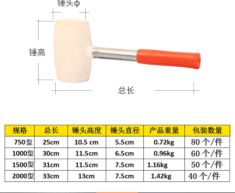• 빨간 손잡이와 흰 머리 철 손잡이 가죽 망치 1000
