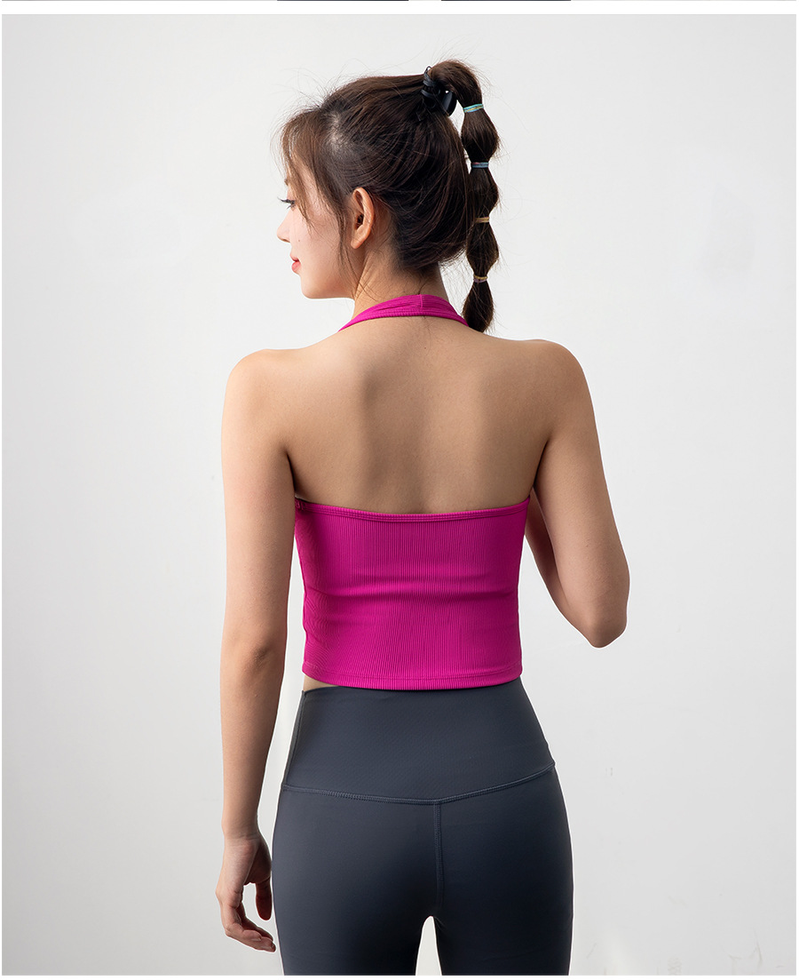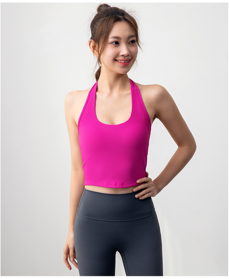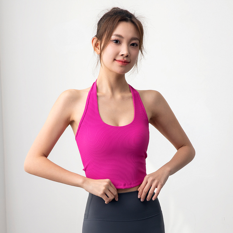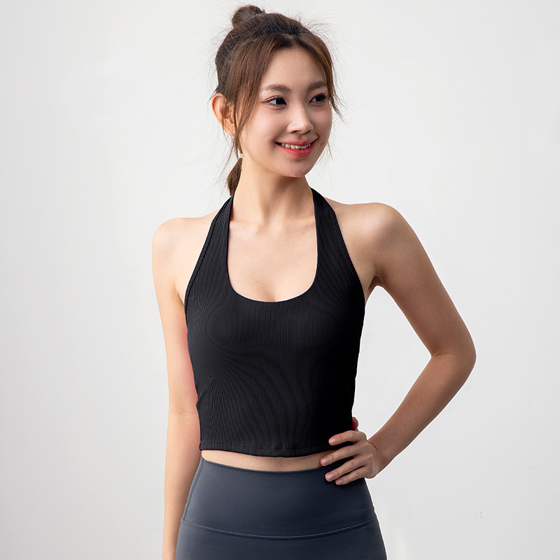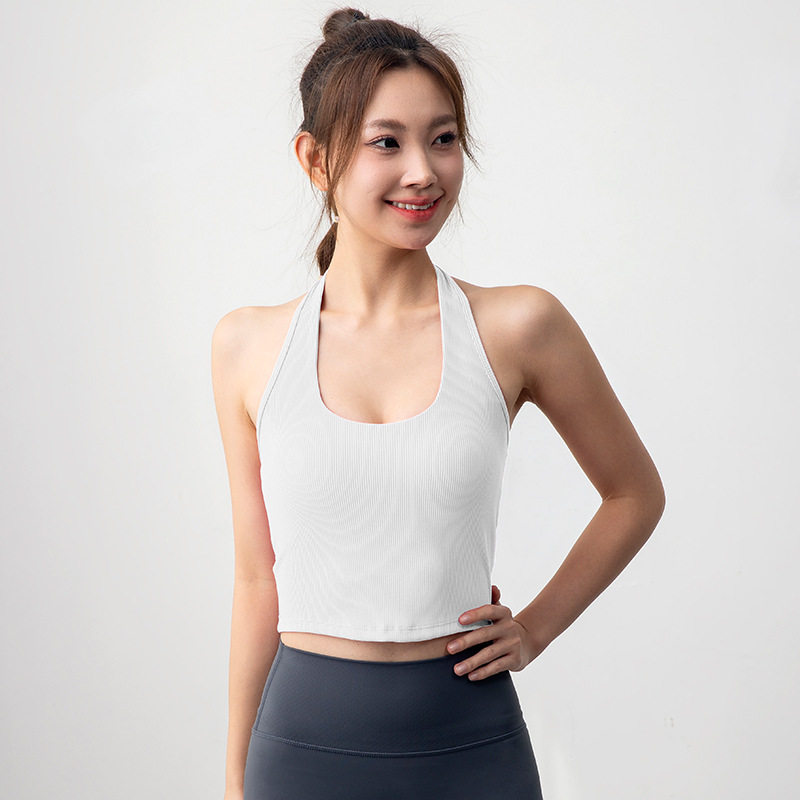 여자 스포츠 탑 트레이닝 조끼 필라테스 요가 속옷 피트니스 세트 원피스 컵 착용 목 브래지어스토어 가기