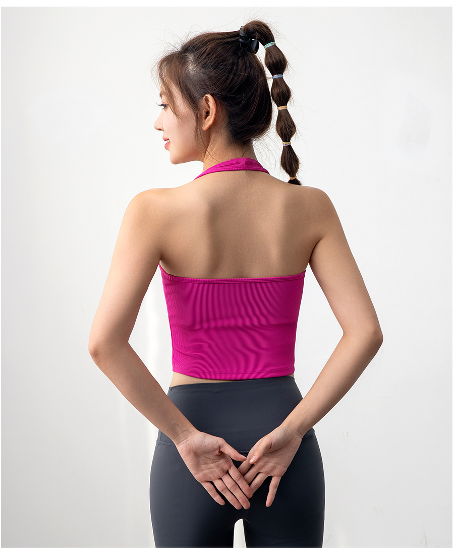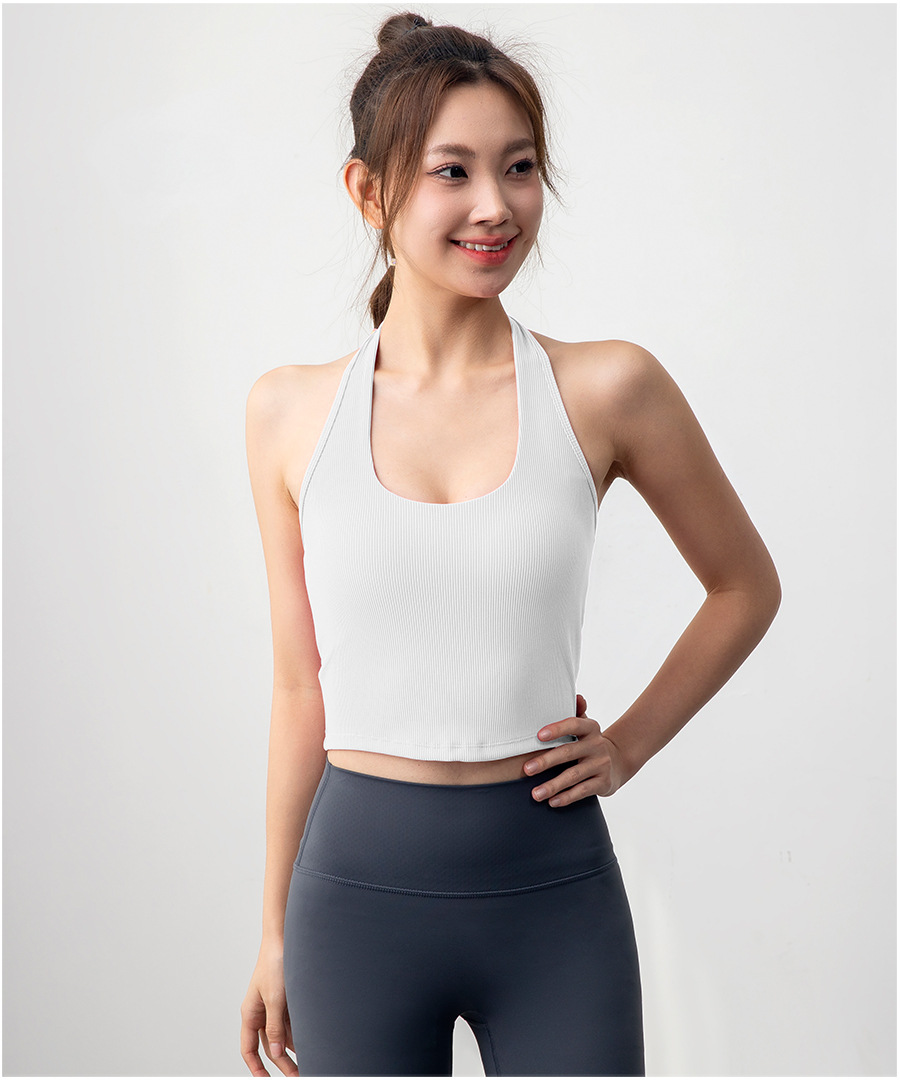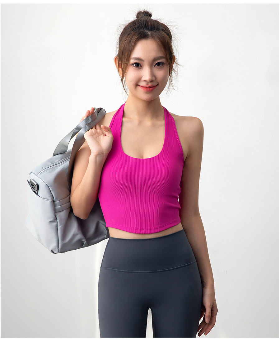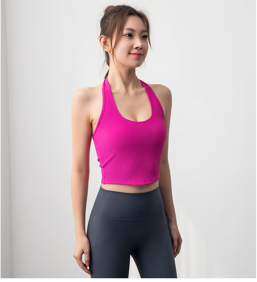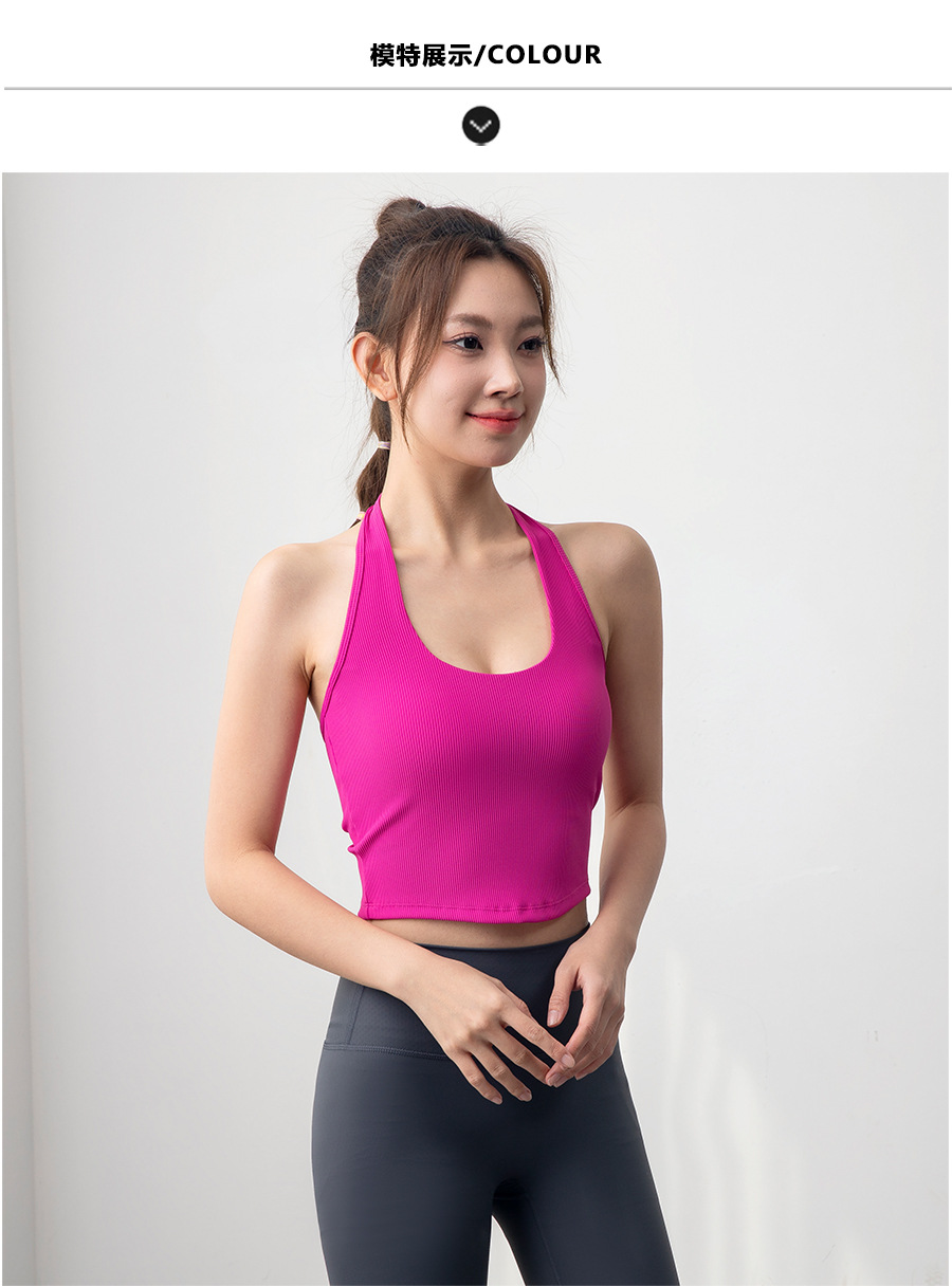 여자 스포츠 탑 트레이닝 조끼 필라테스 요가 속옷 피트니스 세트 원피스 컵 착용 목 브래지어스토어 가기